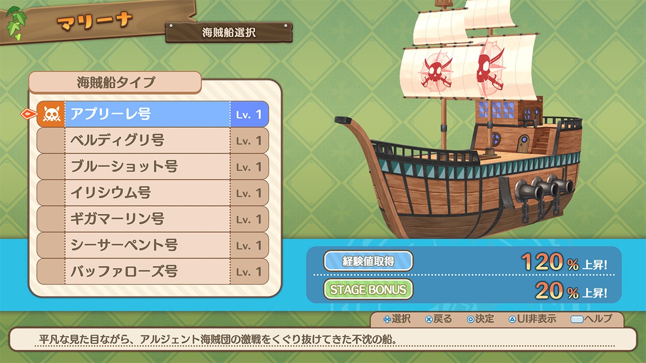 Les statistiques concernées dépendent du navire pirate que vous choisissez. Certains navires peuvent améliorer l’EXP gagnée pour vous permettre de monter plus rapidement de niveau, tandis que d’autres augmentent le déplacement et le saut, ce qui en fait des atouts sur les cartes avec d’importantes différences de hauteur. Essayez de choisir le navire le plus adapté à votre situation !