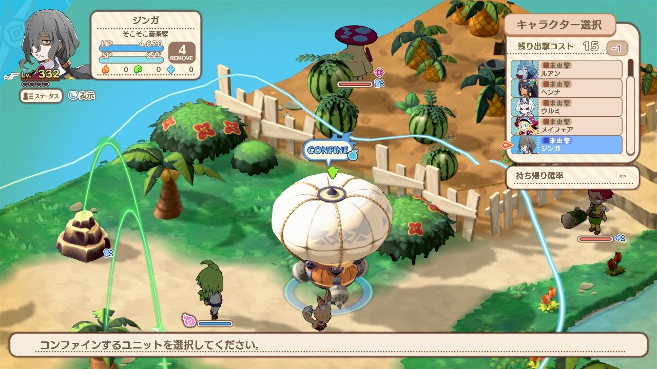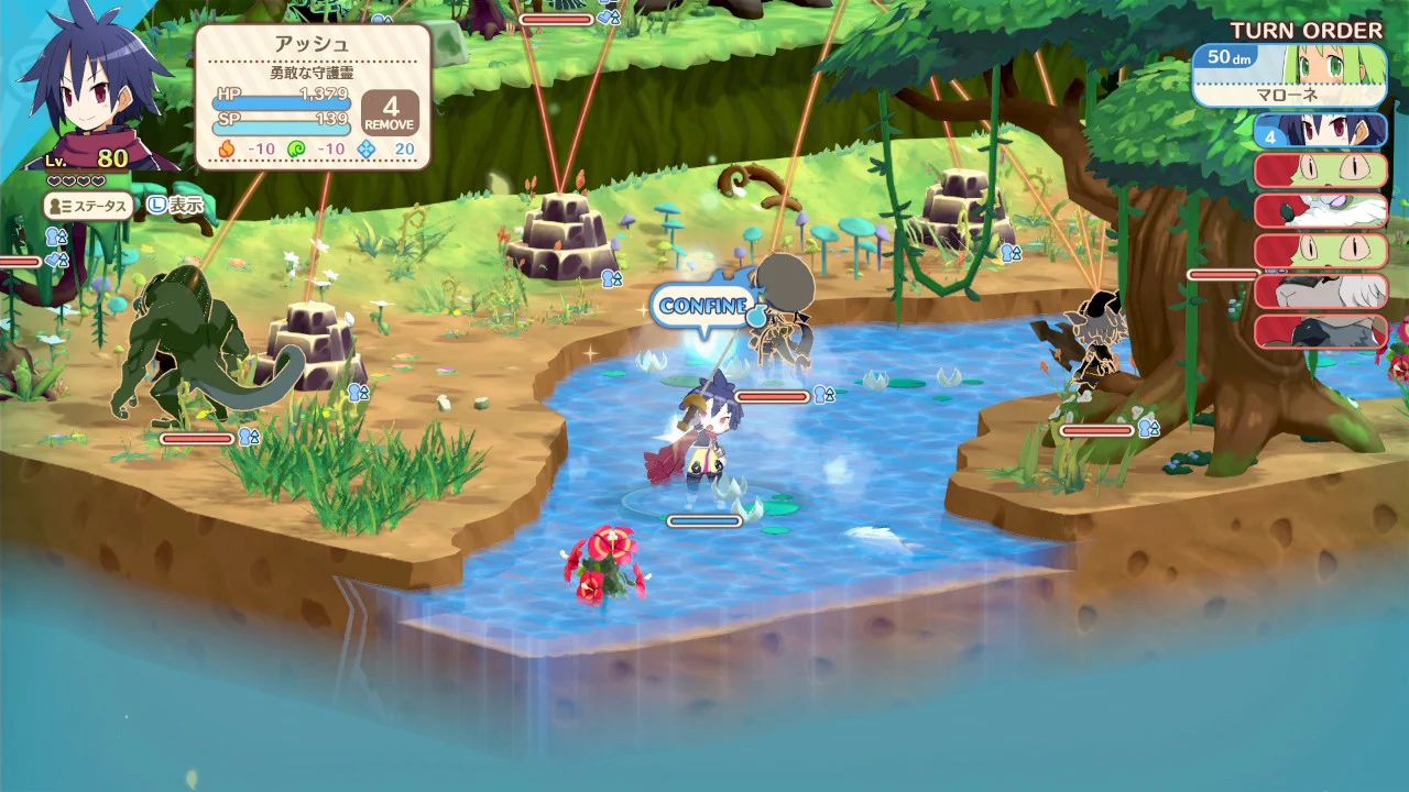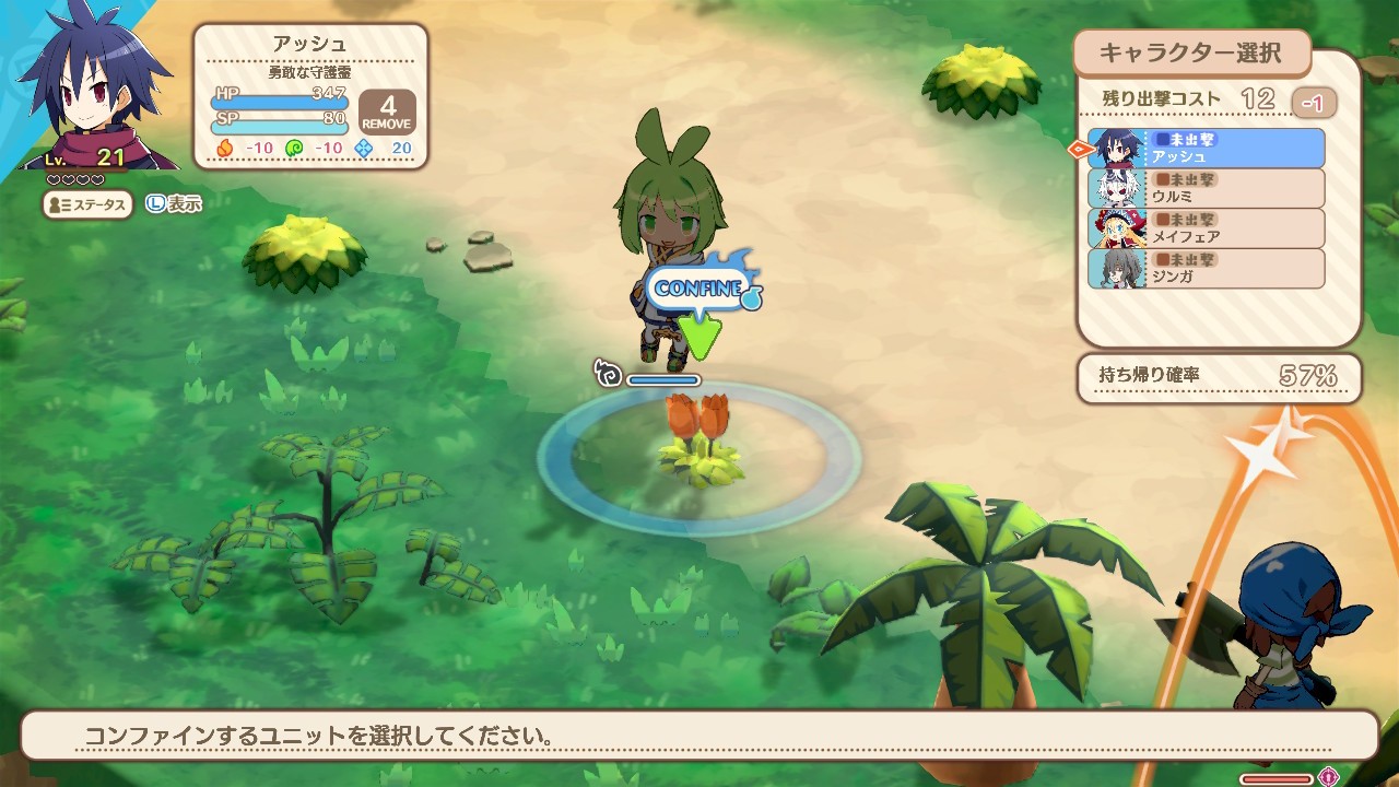 Dans Phantom Brave : The Lost Hero, vous pouvez également vous équiper de divers objets présents sur le terrain. Si vous n’êtes équipé d’aucun objet, essayez de vous équiper de choses insolites, comme de l’herbe, des arbres ou des roches ! Les arbres, les roches, etc. ont également des Capacités et des Compétences. En vous en équipant, vous aurez accès à diverses Compétences et à des effets qui améliorent votre état.