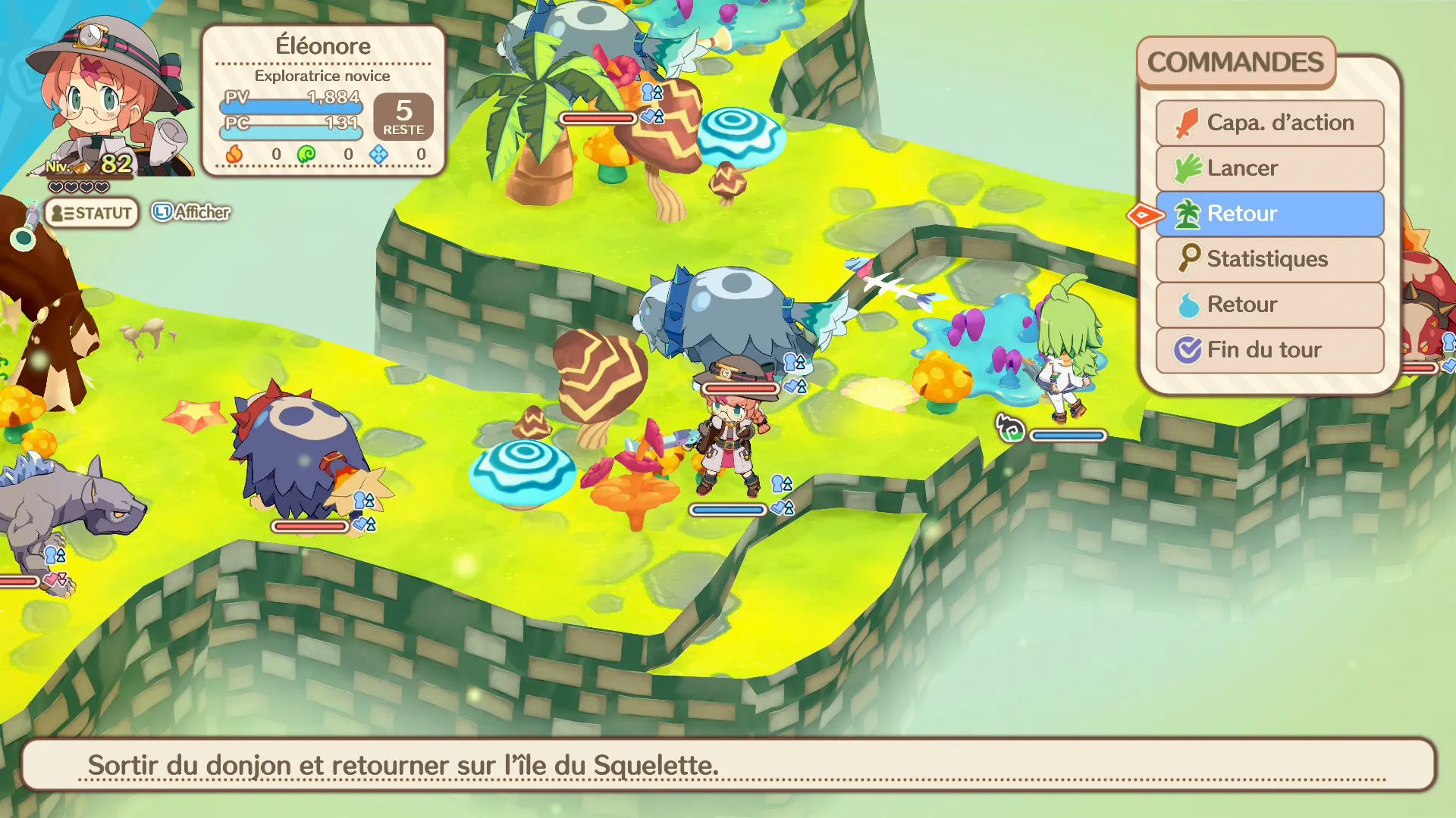 Par contre, si vous êtes vaincu dans un donjon, vous perdrez tous les objets et EXP obtenus. Plus vous progresserez, plus les ennemis deviendront puissants. Assurez-vous de quitter le donjon quand vous le pouvez, ou de faire attention où vous mettez les pieds !