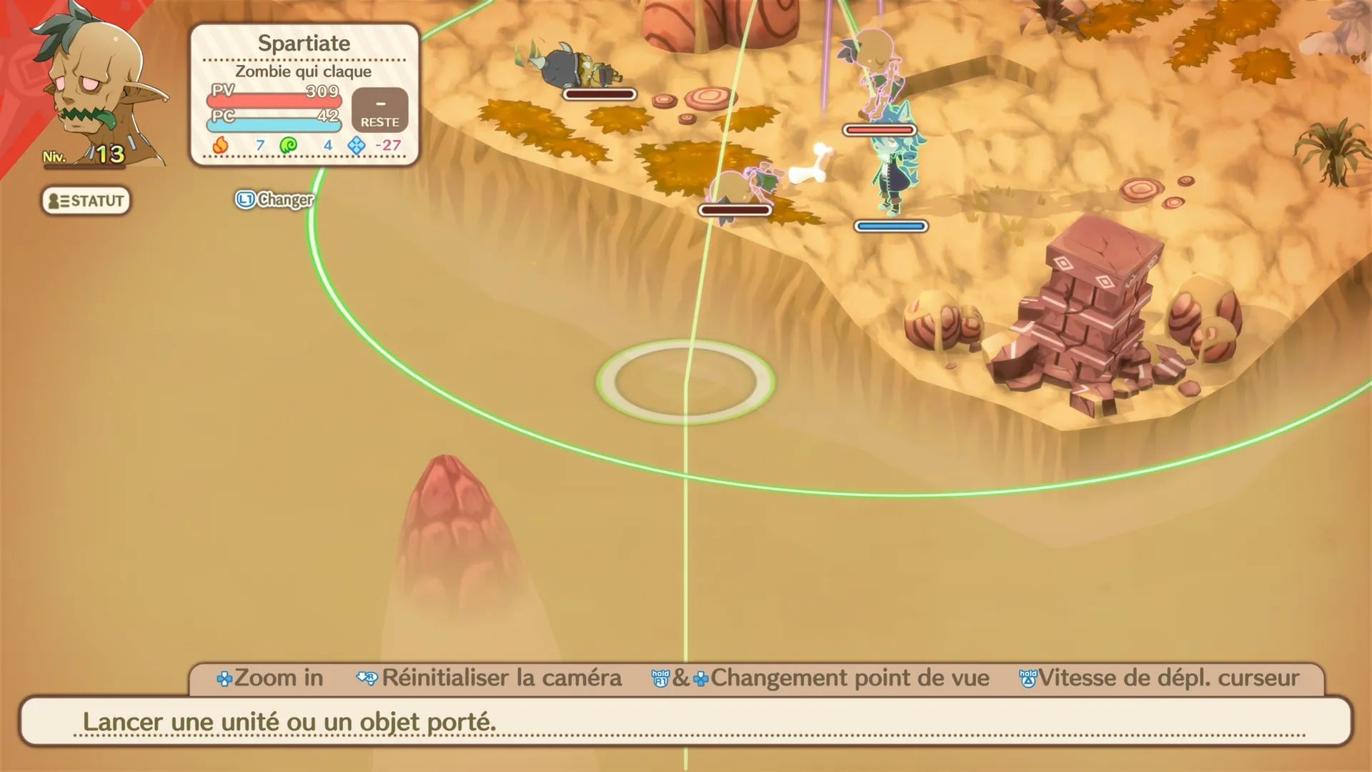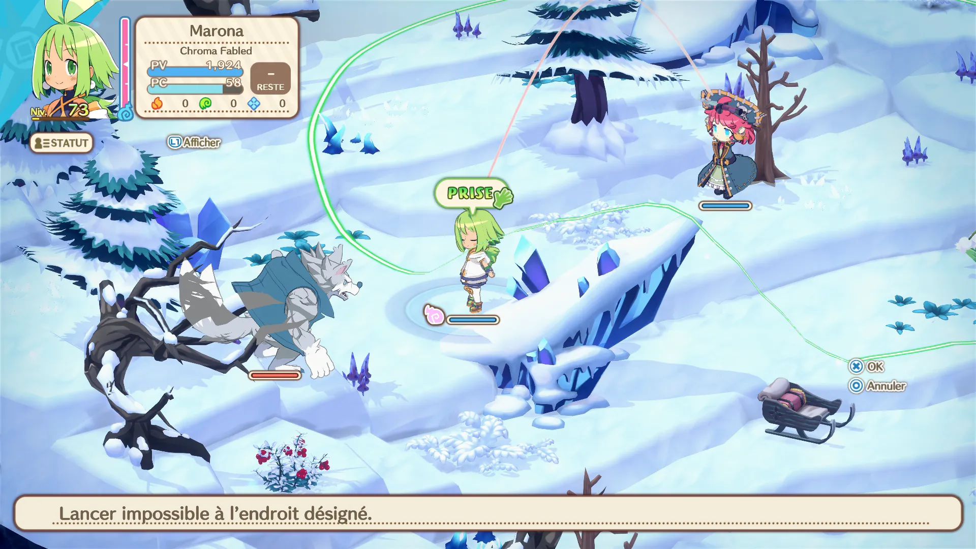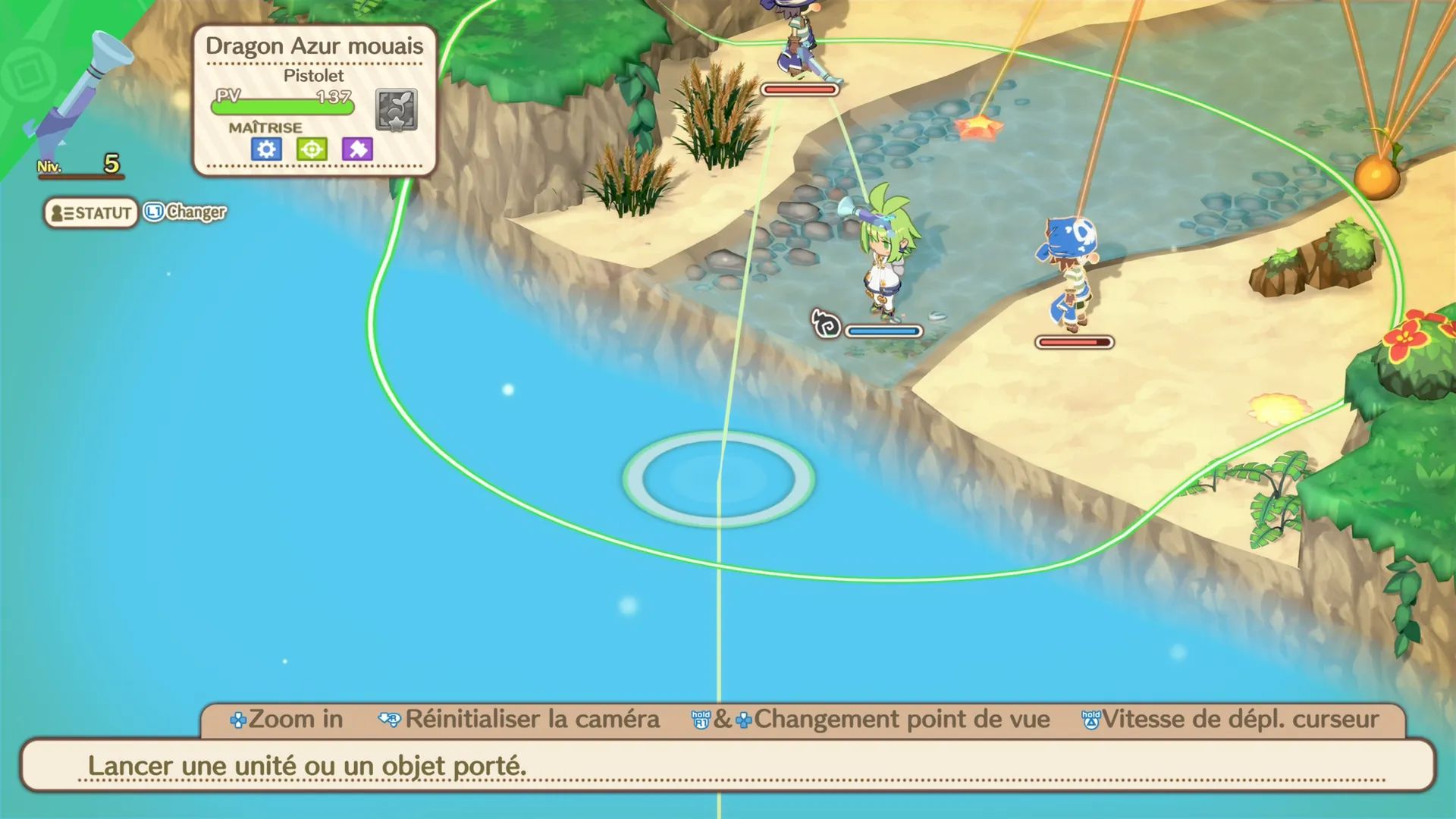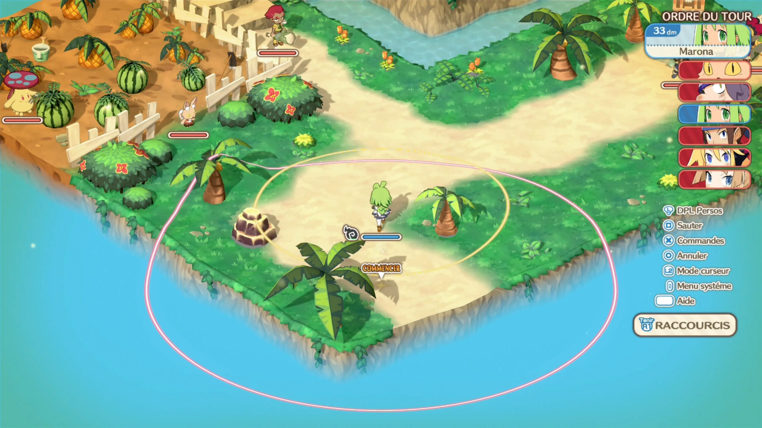 Vous pouvez désormais vous déplacer librement partout dans ce nouvel opus de Phantom Brave, tant que vous vous trouvez dans le cercle indiqué sur la carte.