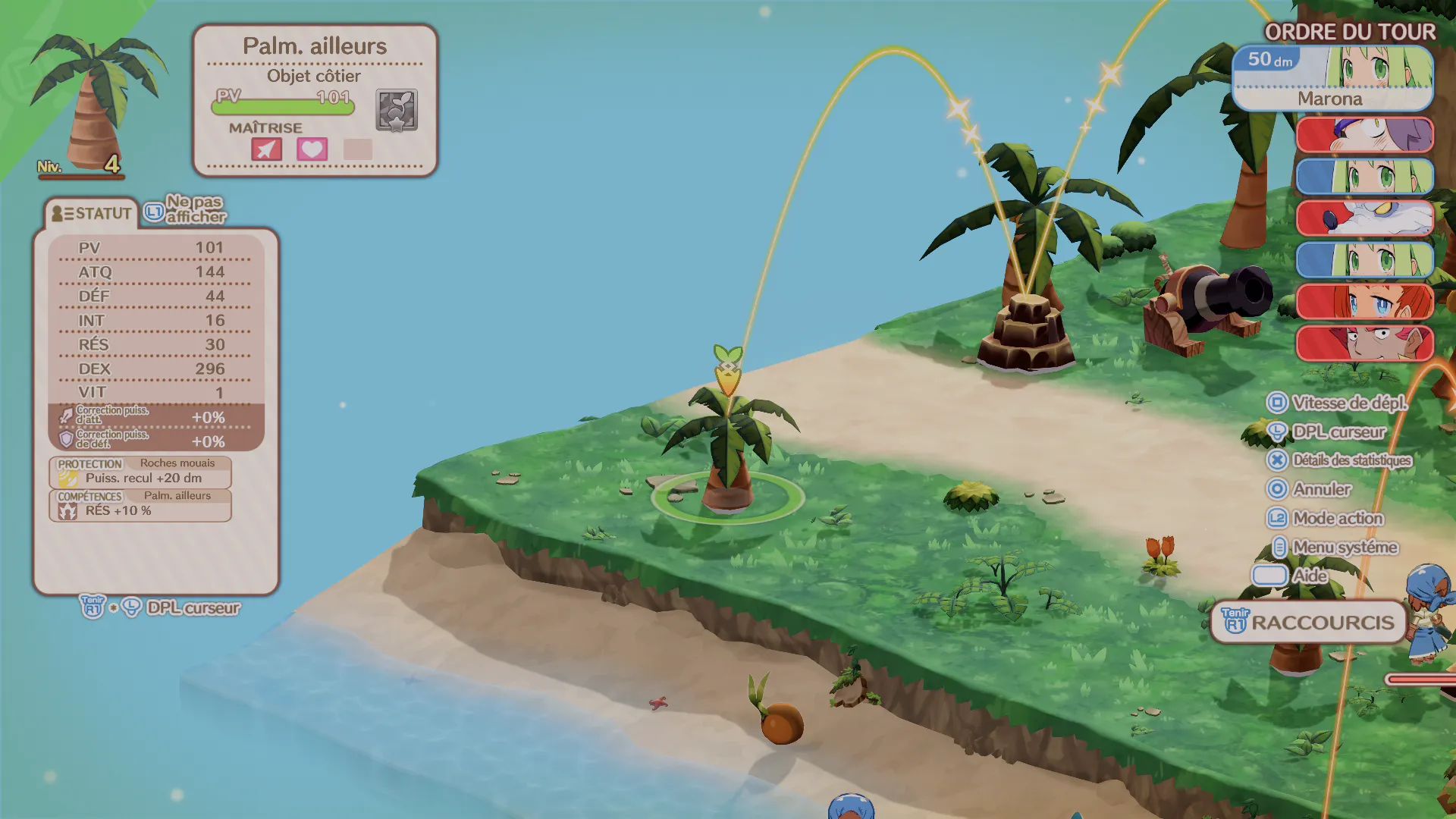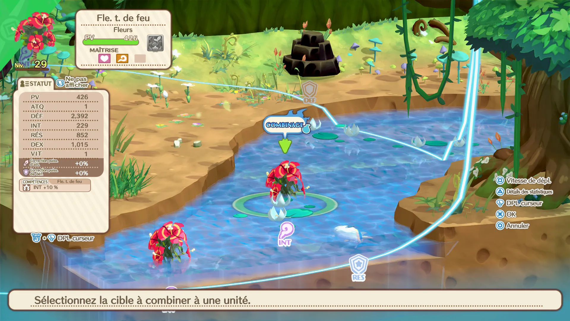 Une fois le combat engagé, sélectionnez la compétence Combinage de Marona pour combiner vos alliés à des arbres, des fleurs, des rochers, etc. présents sur la carte.