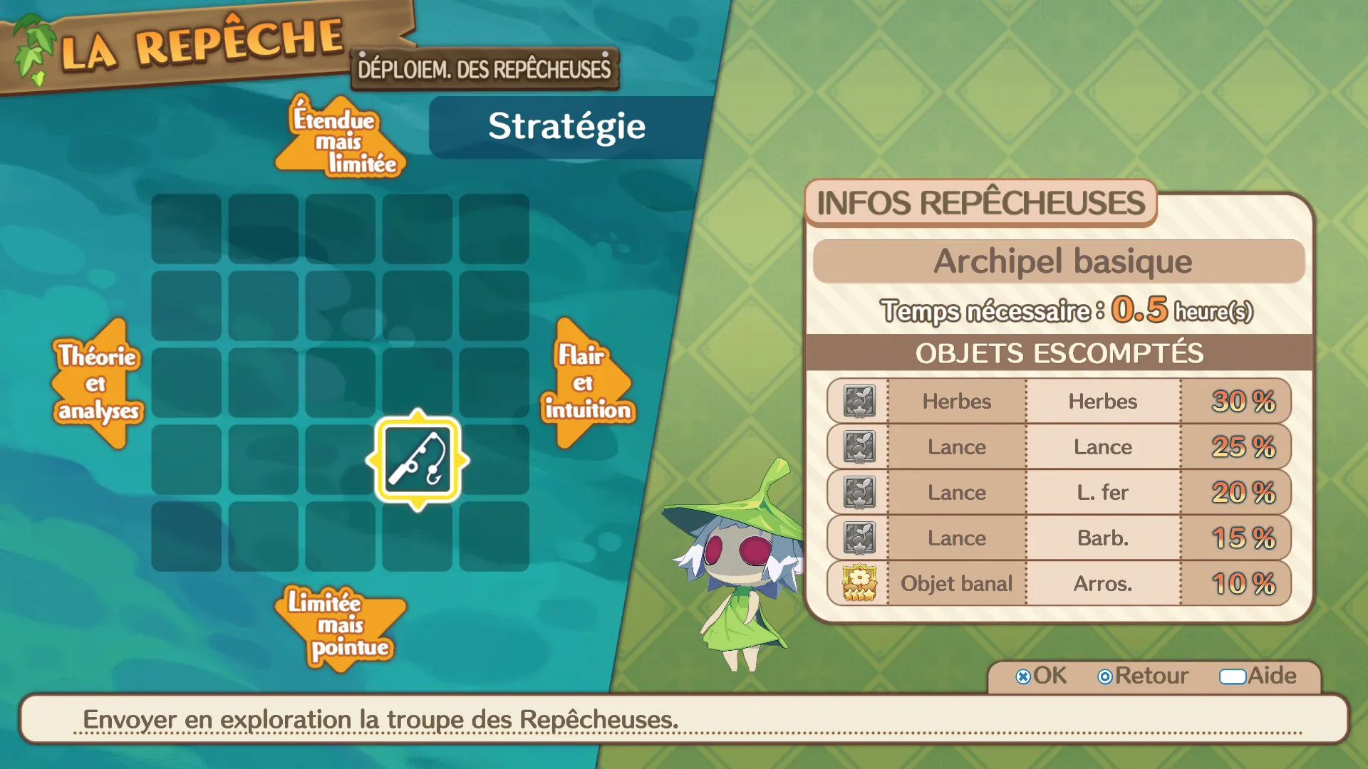 Obtenez automatiquement les trésors cachés dans une région nautique donnée en envoyant des groupes de Repêcheuses. Le temps nécessaire et les objets reçus dépendent de la région et de l’approche choisie par l’équipe de Repêcheuses envoyée.