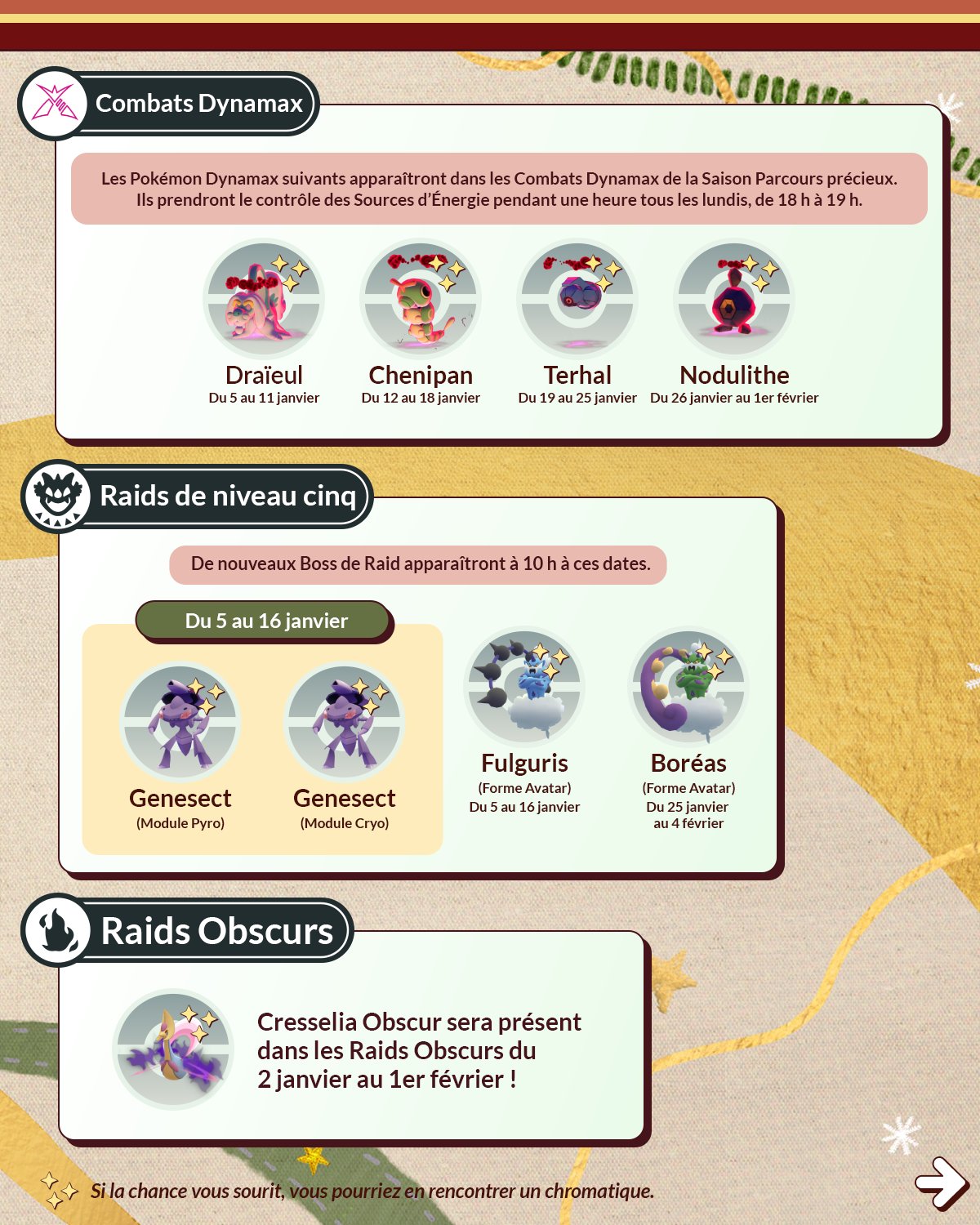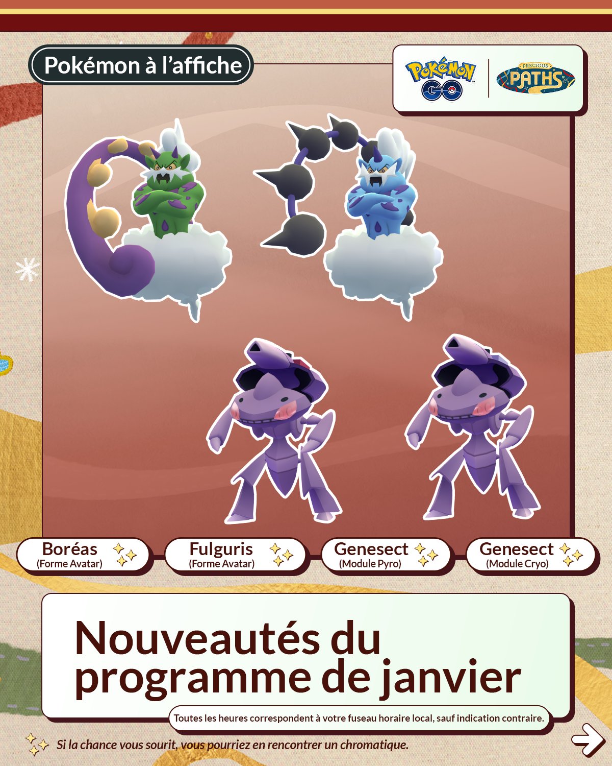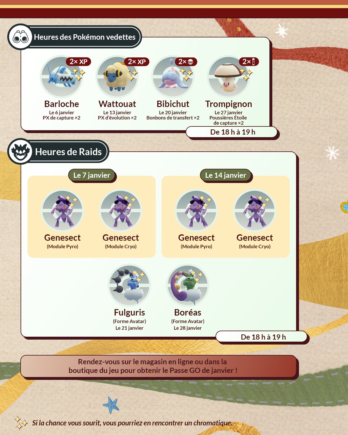 * Les Modules Leurre activés pendant l’événement dureront 1 heure et pourraient attirer le Pokémon vedette*.
