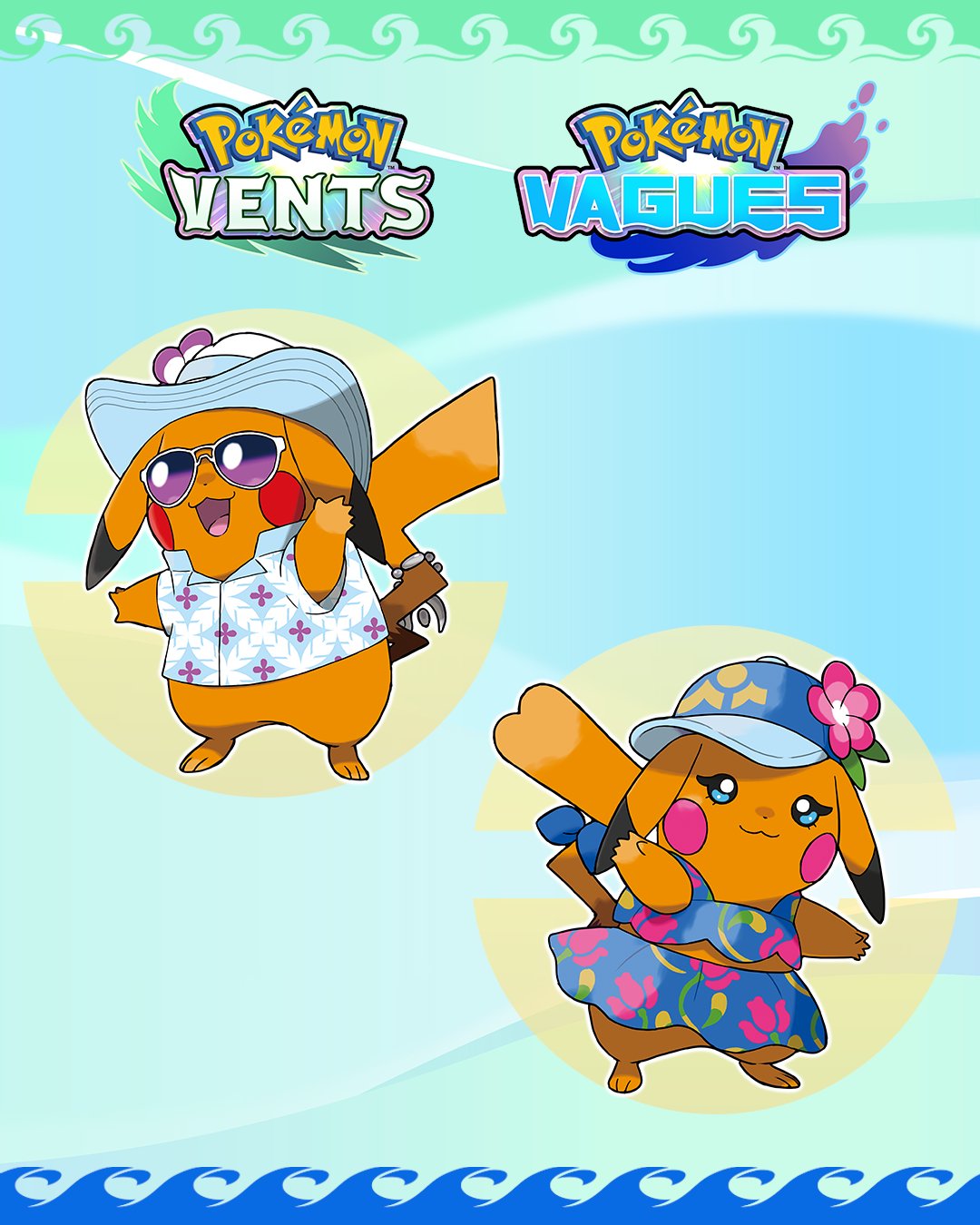 Pour le moment, Nintendo, The Pokémon Company et Game Freak ont préféré dévoiler peu de détails sur la région et l’histoire de ces nouveaux jeux, mais concernant les Pikachu spéciaux avec de nouvelles tenues, on sait qu’ils s’appellent Tornachu et Pikaflo en français (Mr. Windychu et Ms. Windychu en anglais). Ils font forcément penser aux Pikachu Cosplayeurs apparus dans Pokémon Rubis Oméga et Saphir Alpha sur Nintendo 3DS. À l’heure actuelle, on ne sait pas quel rôle ils auront dans l’histoire, mais ils semblent donc avoir leur importance. À noter que dès le lancement de Pokémon Vents et Vagues, les jeux seront jouables avec des textes en portugais du Brésil.