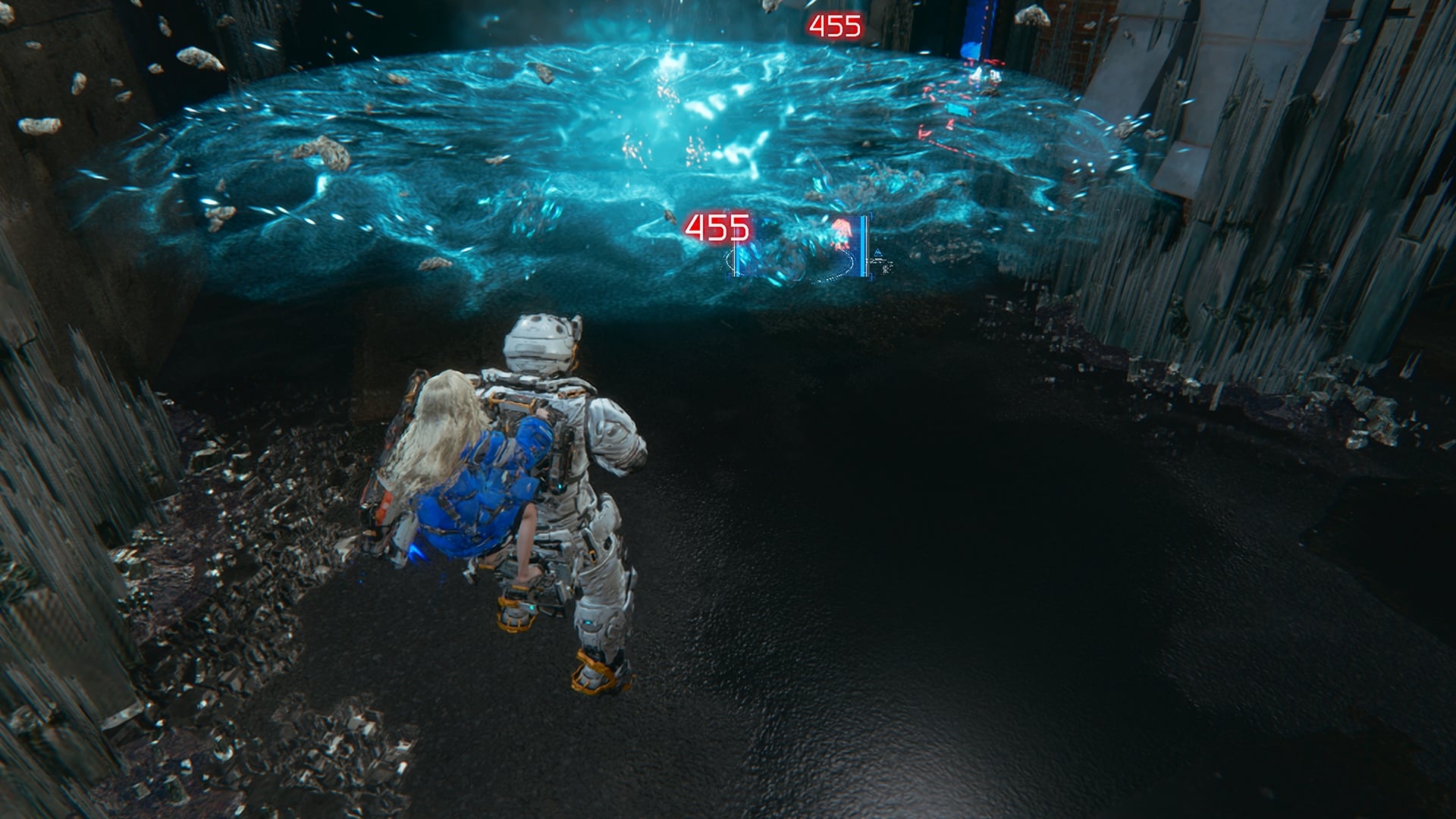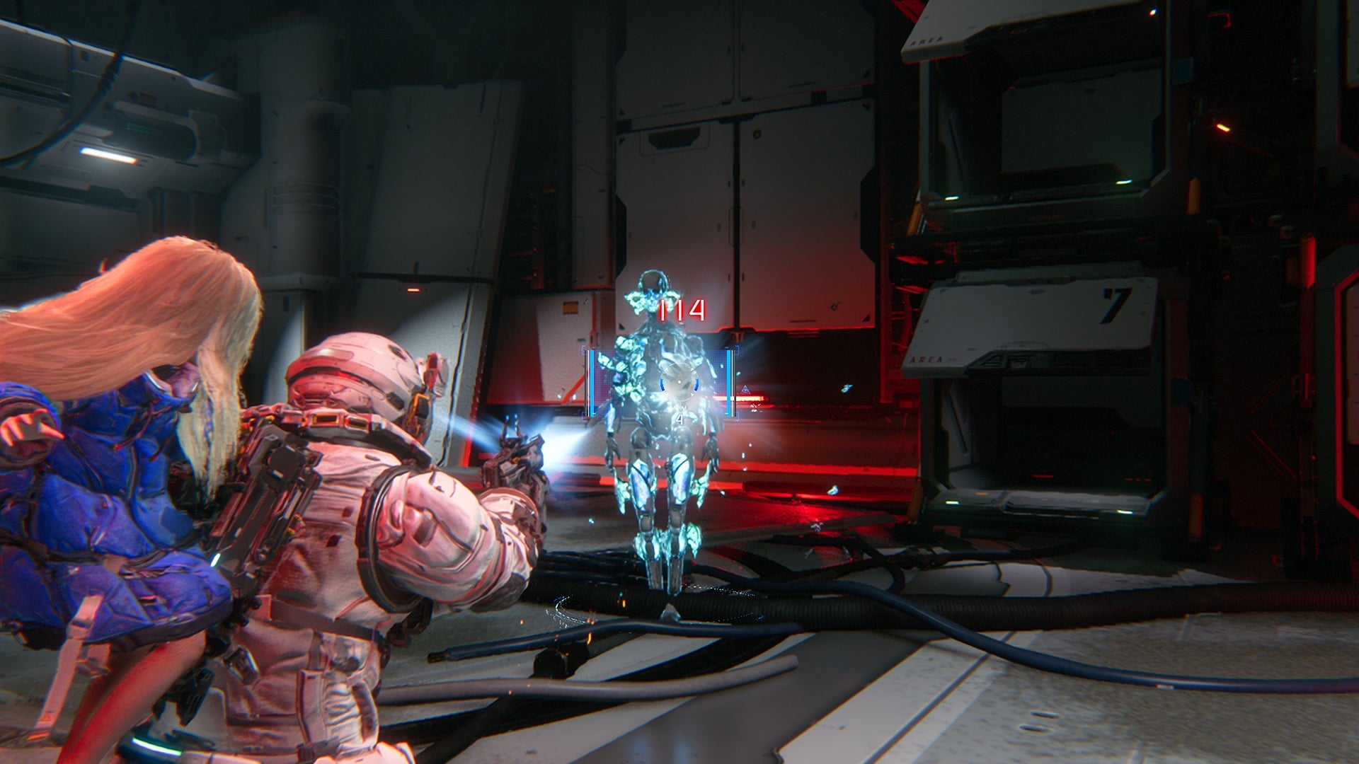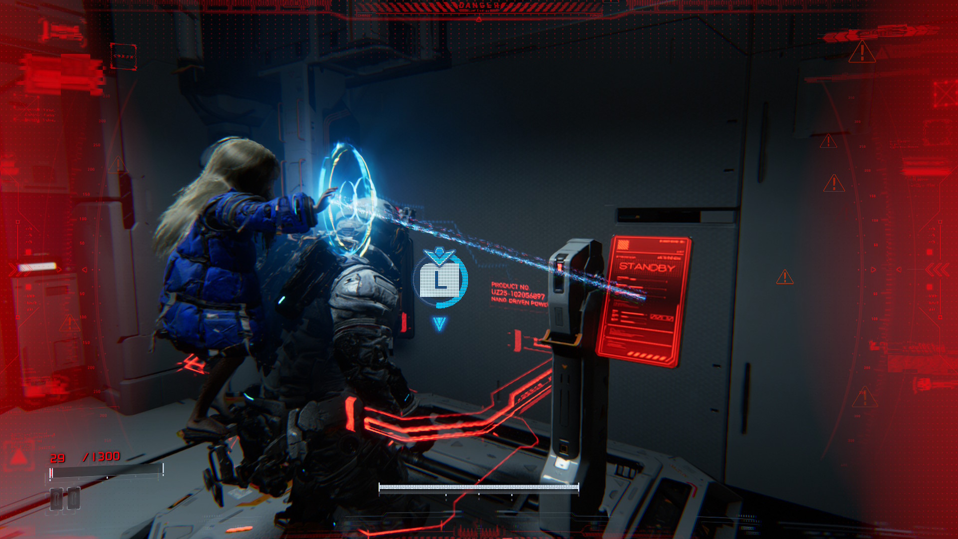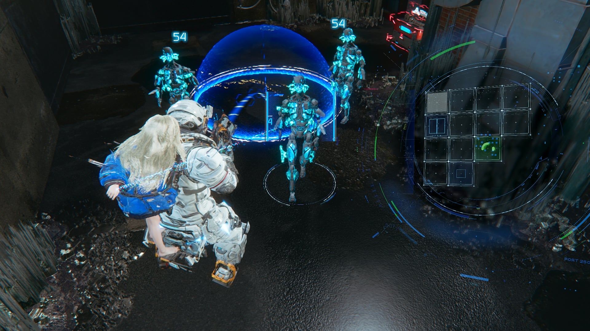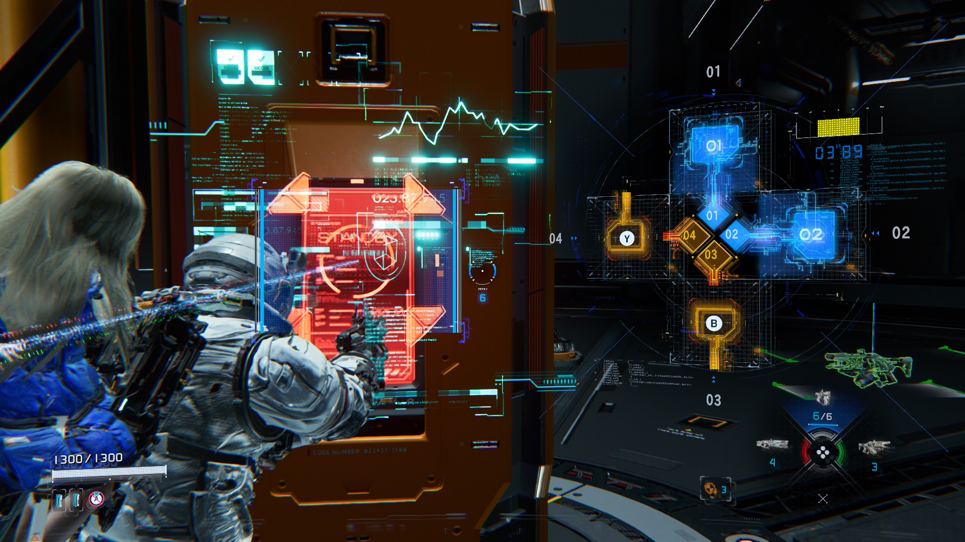 Dans PRAGMATA, le hacking et le tir sont au cœur du gameplay. Pendant le combat, un panneau apparaît à l’écran lorsque l’on vise les ennemis. Il représente la capacité de Diana à pirater les défenses de ses adversaires. En déplaçant le curseur sur ce panneau, elle peut détruire l’armure de l’ennemi et créer des ouvertures permettant à Hugh de faire exploser les points faibles de l’ennemi avec son arsenal d’armes. Ce système mettra les joueurs au défi de surmonter des situations à multiples facettes dans le feu de l’action.