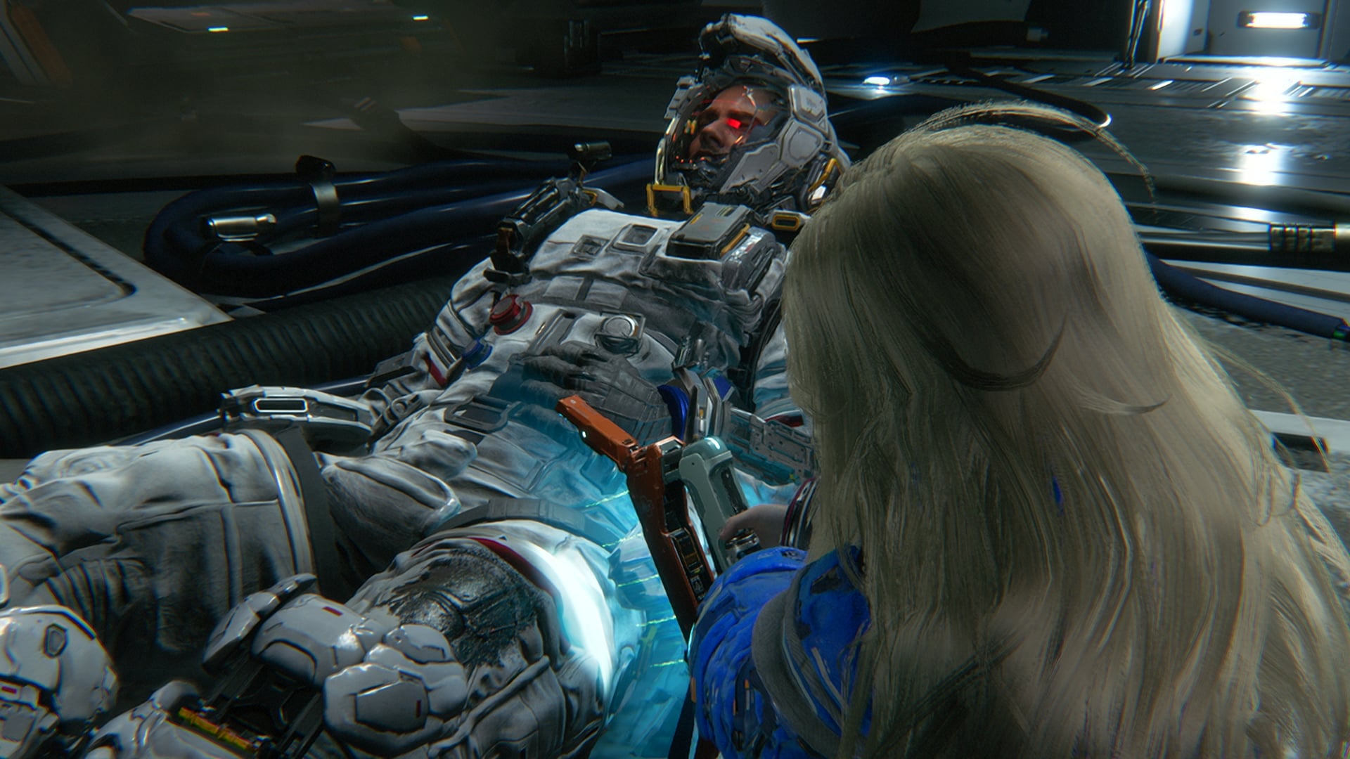 L’exploration est également un travail d’équipe. En dehors des combats, Diana peut utiliser ses capacités de hacking pour accéder aux systèmes de l’installation et éliminer les obstacles environnementaux qui bloquent la progression. Quant à Hugh, il peut utiliser les propulseurs de sa combinaison pour traverser le terrain de la station lunaire. En combinant leurs compétences et leurs capacités, ils peuvent accomplir des exploits qui seraient impossibles à réaliser seuls.