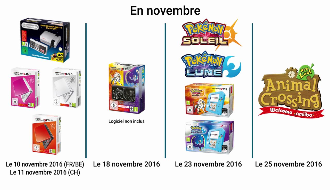 – Animal Crossing : New Leaf : détails sur la mise à jour de cet automne, annonce de nouvelles cartes amiibo pour le 10 novembre, de la version Welcome amiibo pour le 25 novembre et du Mini-Direct Animal Crossing prévu pour le 2 novembre.