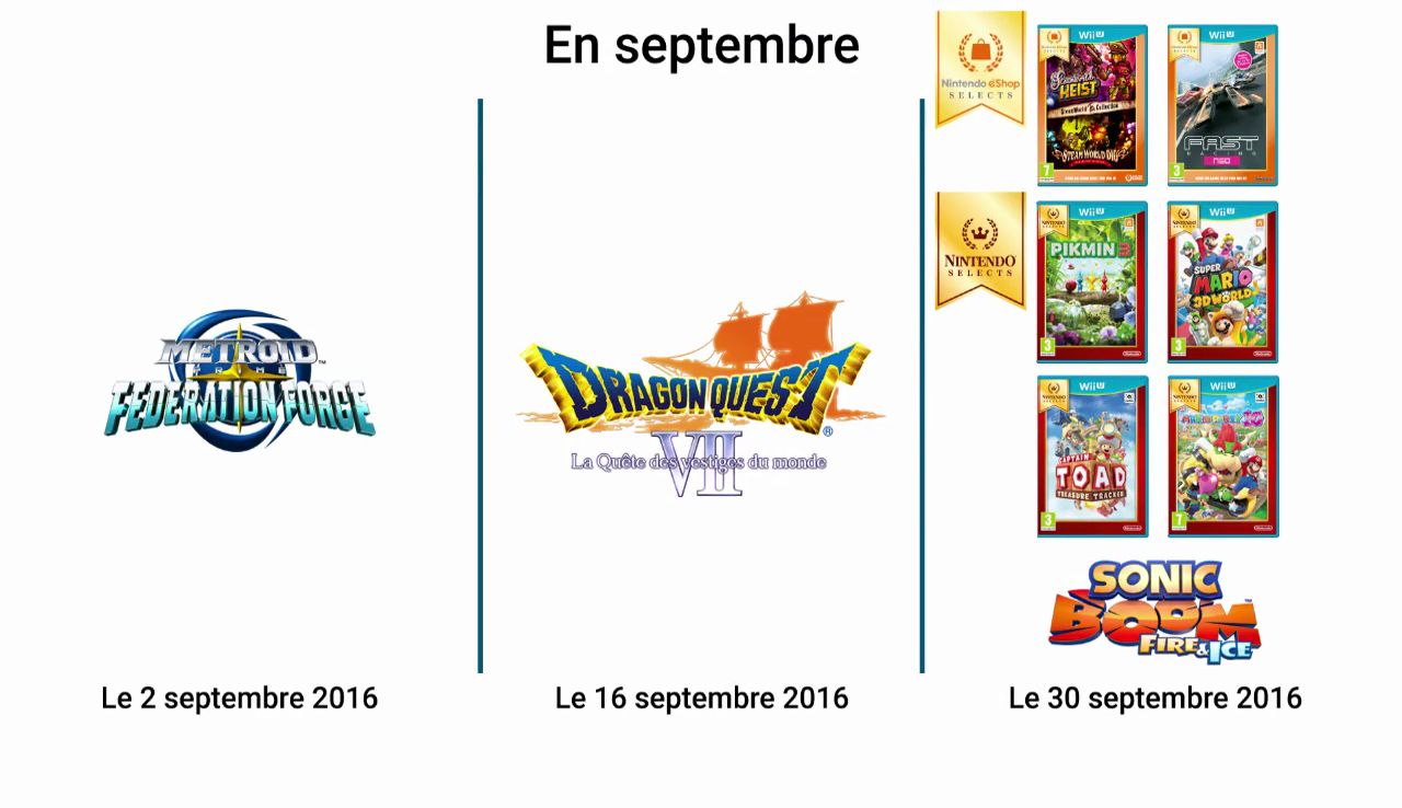 – Sonic Boom : le Feu et la Glace : disponible sur 3DS le 30 septembre en Europe.