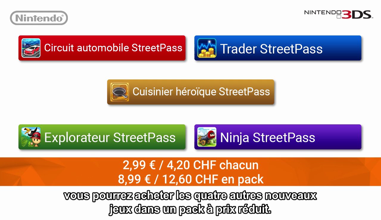 – Mise à jour gratuite de la Place Mii StreetPass et nouveaux jeux payants.