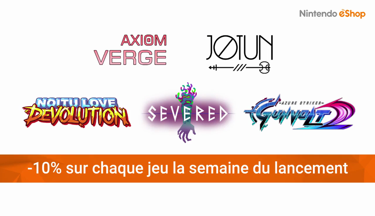 – Azure Striker Gunvolt 2 : disponible sur l’eShop de la 3DS le 29 septembre. La sortie du Striker Pack a été repoussée au 4 octobre aux États-Unis.