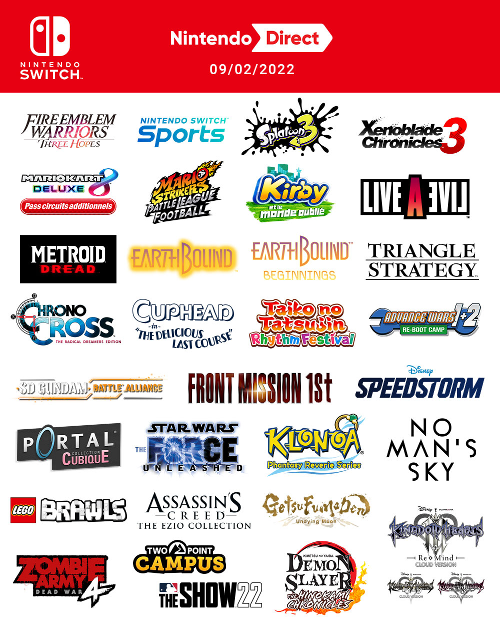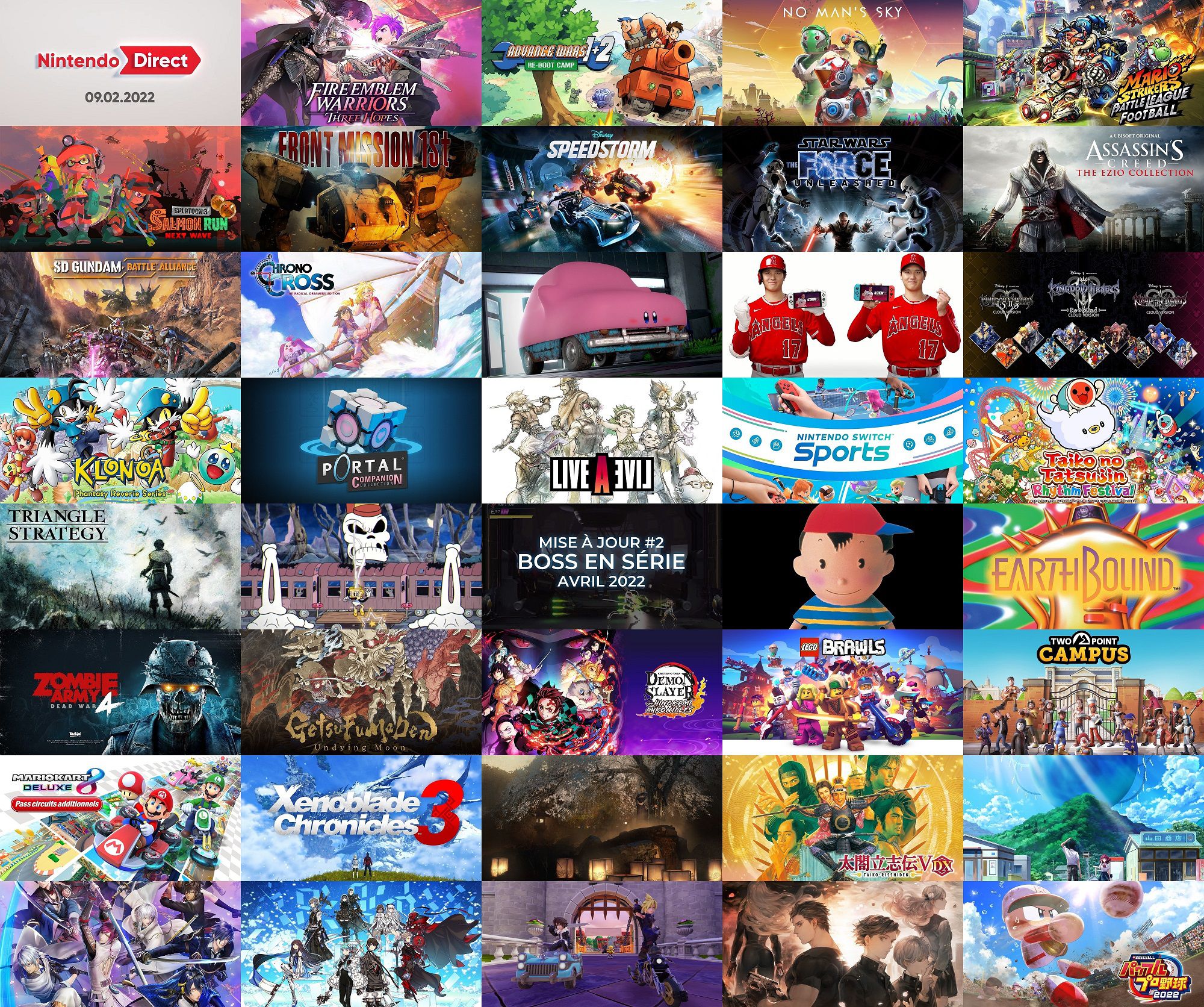 Le nouveau Nintendo Direct diffusé ce 9 février dernier, présenté cette fois-ci par Shinya Takahashi avec Yoshiaki Koizumi en invité spécial, a été particulièrement riche en informations, avec de nombreuses annonces de jeux, des dates de sortie pour des titres Nintendo Switch que l’on connaissait déjà et plus encore. Pendant ces derniers jours, nous avons pris soin de détailler chaque annonce, en apportant à chaque fois beaucoup de détails supplémentaires, des vidéos, des images et des illustrations en haute qualité. Étant donné que presque 40 jeux ont été présentés dans ce Direct, en comptant la version japonaise qui contenait des informations exclusives, nous avons décidé de produire un grand récapitulatif, ce qui permettra de mieux vous y retrouver parmi tous nos articles. Pour commencer, voici les enregistrements complets de la présentation :