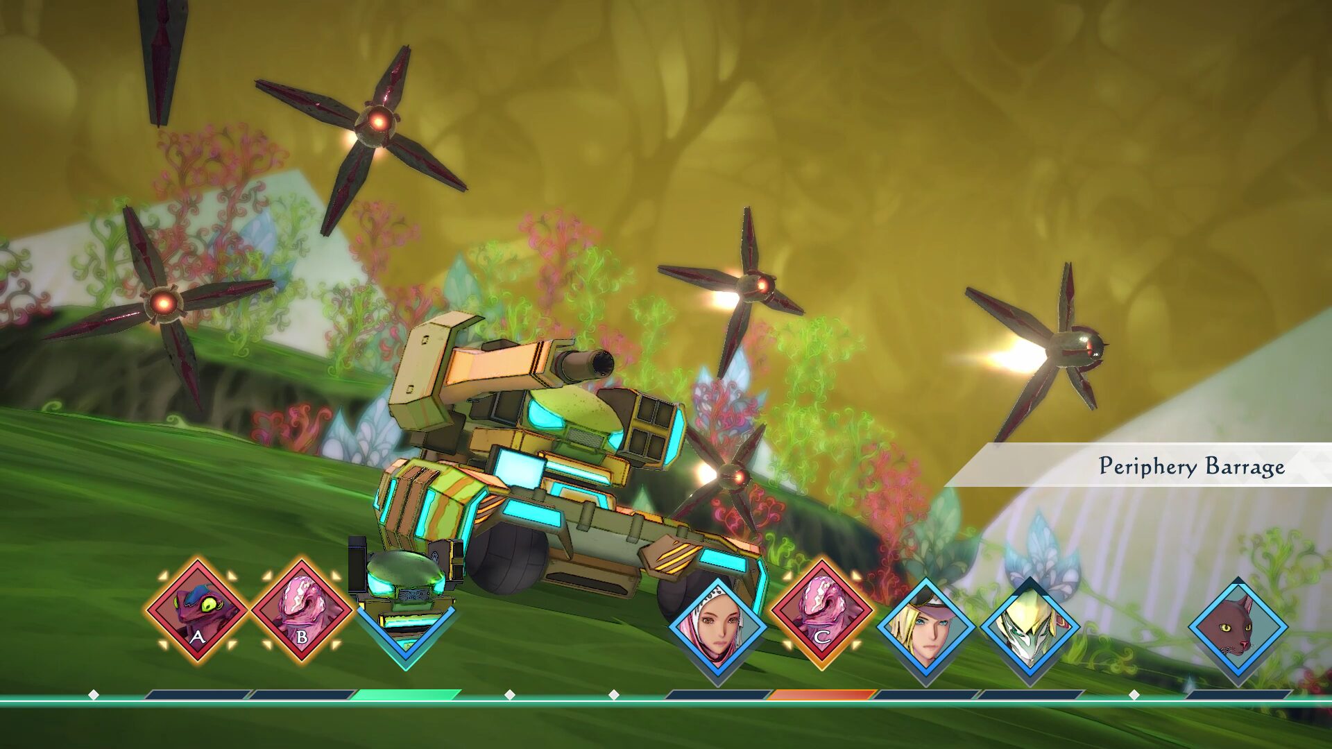 Les Timeline Battles seront plus profonds que jamais stratégiquement. Des éléments classiques seront de retour, comme la possibilité d’obtenir immédiatement des capacités avec le système de Glimmer, le placement tactique des alliés avec les Formations, ou encore les attaques combinées qui permettent d’enchaîner des capacités individuelles afin de créer des attaques consécutives dévastatrices. Square Enix promet que Saga Emerald Beyond proposera la version la plus avancée du système de combat au tour par tour de SaGa à ce jour. Le nouveau système de combat permettra d’utiliser des personnages de soutien, d’interrompre les actions de l’ennemi et d’utiliser des attaques combinées en modifiant de manière stratégique l’ordre des actions des alliés. On pourra choisir les personnages qui nous rejoindront, les armes à utiliser, la formation de notre équipe et les tactiques.
