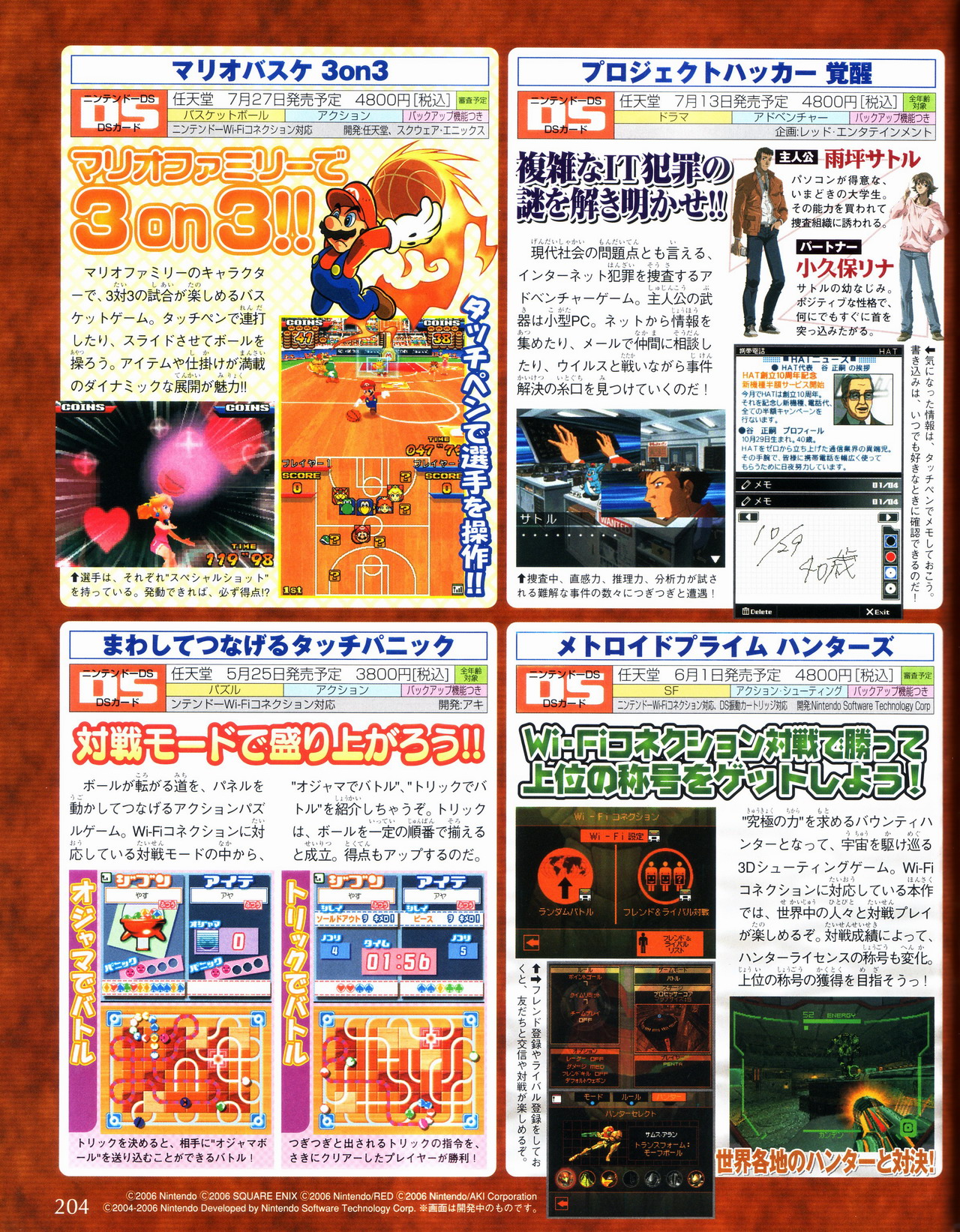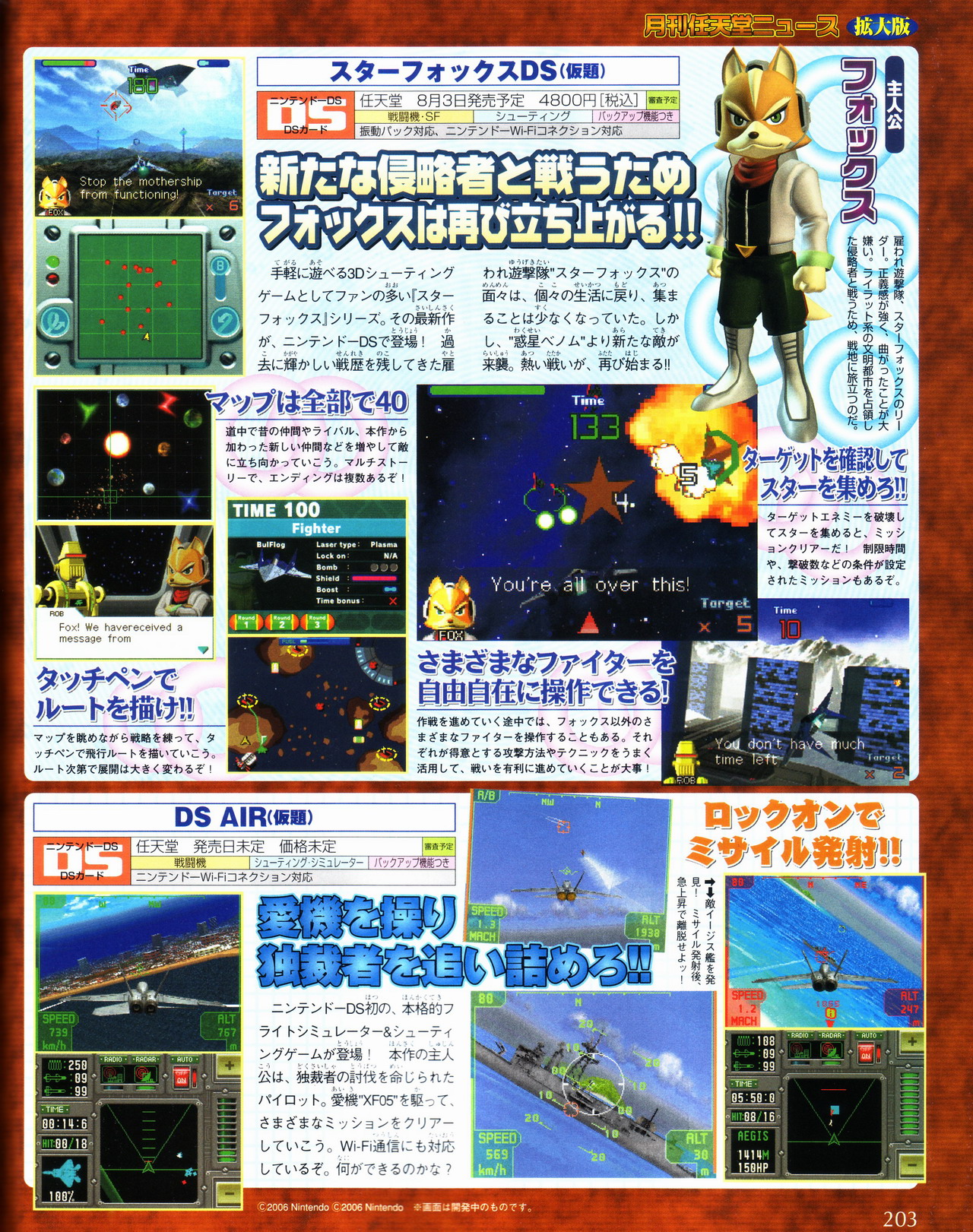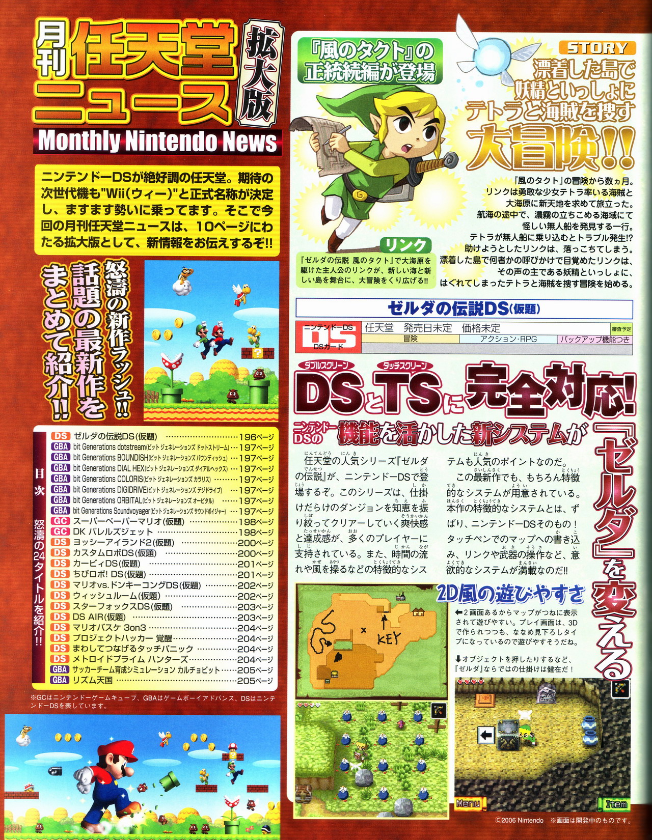 Le célèbre magazine japonais Famitsu consacre une large partie de sa dernière édition a de nombreux jeux DS découverts pendant ce dernier E3. On reconnaît en effet New Super Mario Bros, The Legend of Zelda : Phantom Hourglass, Yoshi’s Island 2, le prochain Kirby, Mario Vs Donkey Kong 2 : March of the Minis, Hotel Dusk : Room 215, Starfox DS, DS Air, Mario Hoops 3-on-3 et autres jeux japonais…