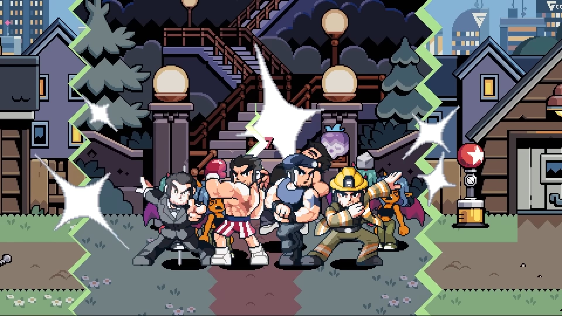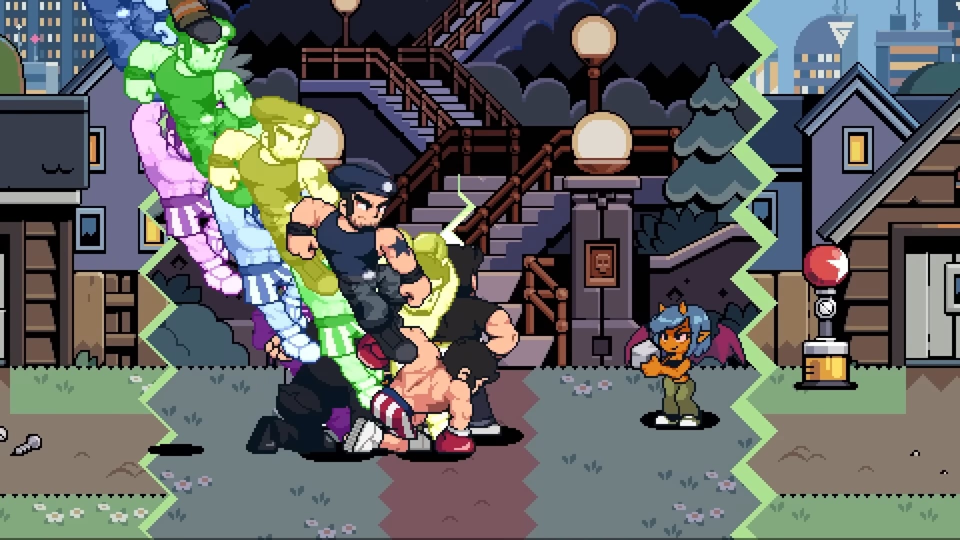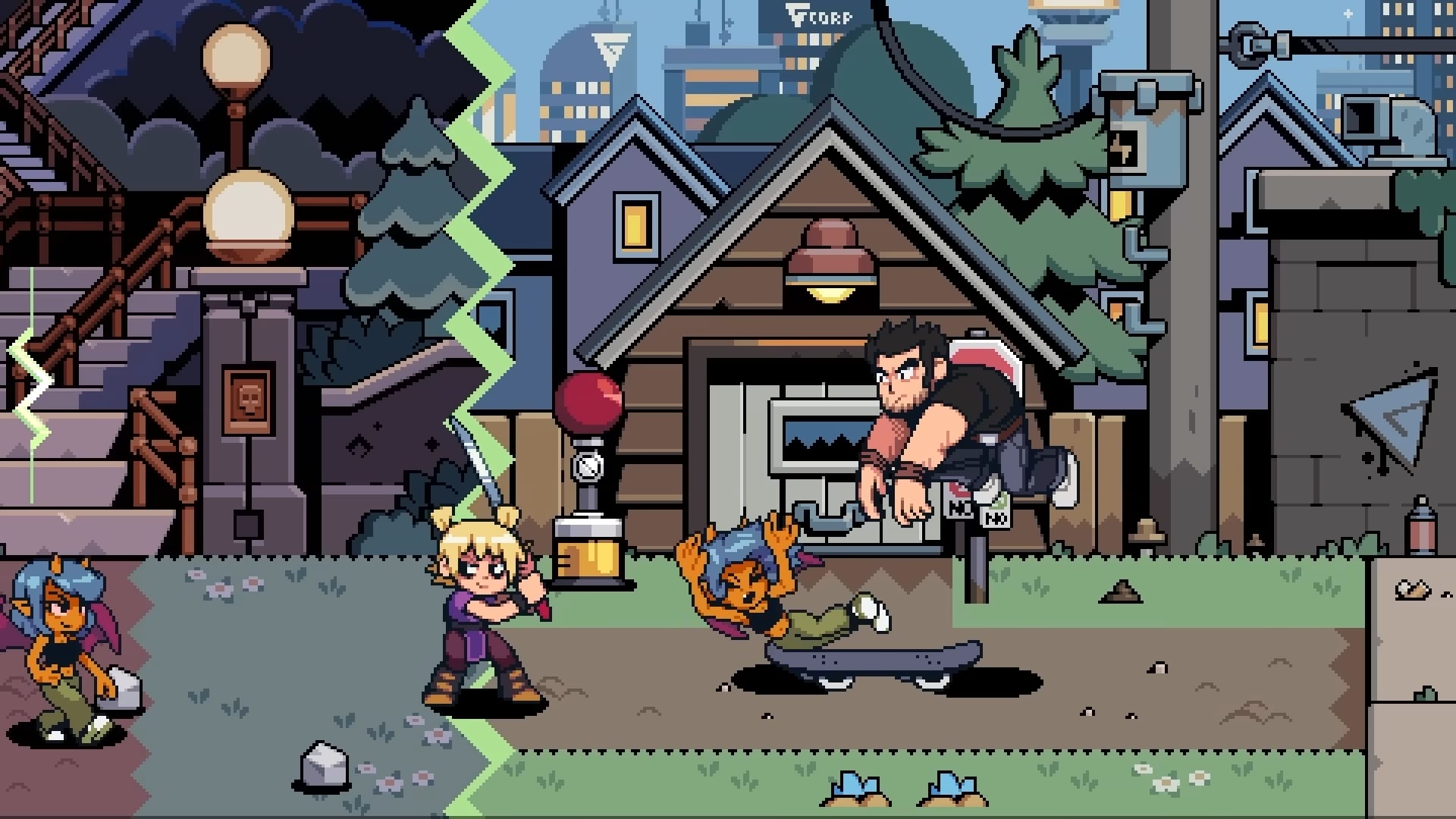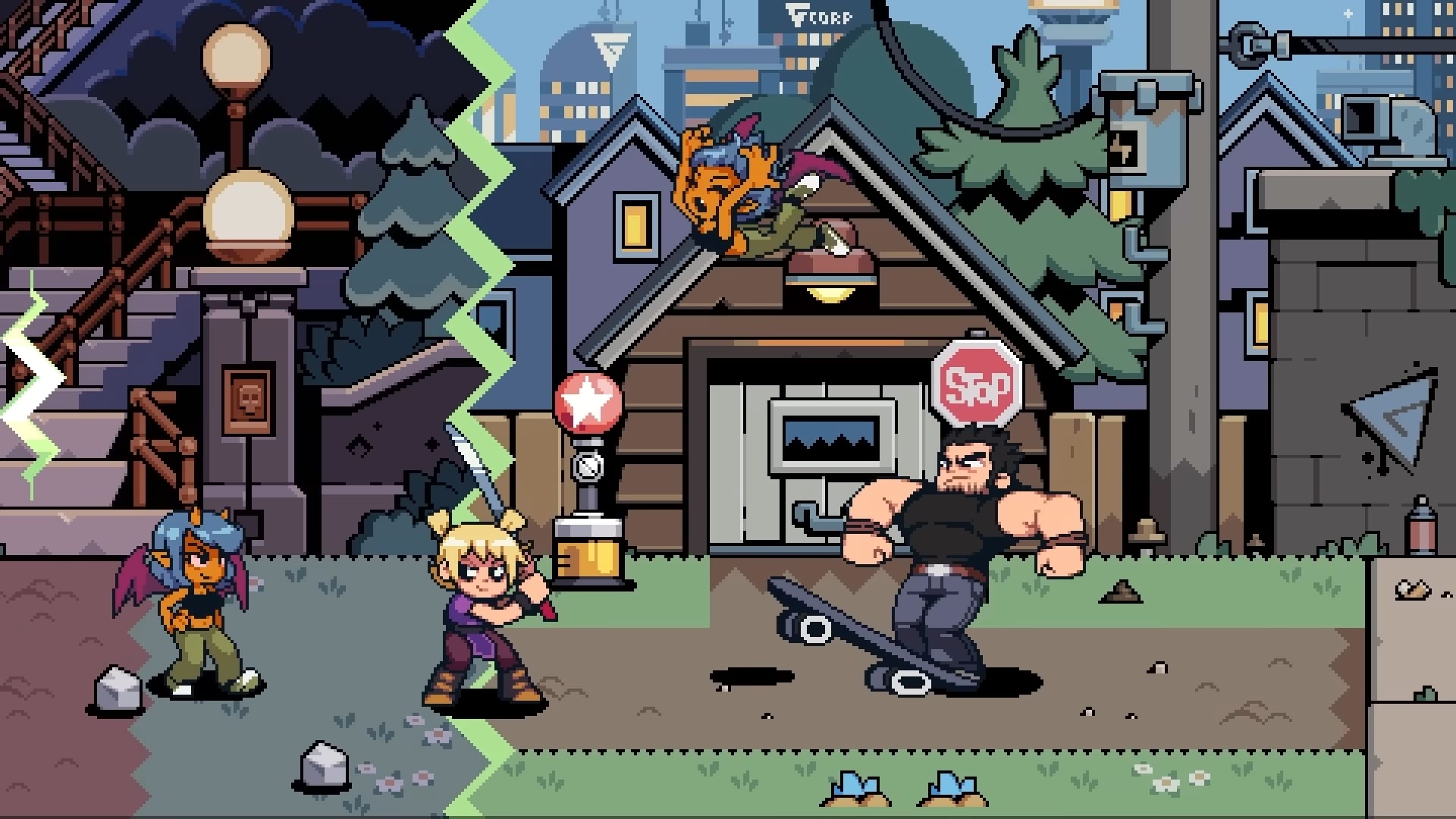 « Le redoutable Lucas Lee et la petite terreur Roxie Richter, qui profitent tous deux du talent de Tribute Games en matière de création artistique néorétro. Lucas fait une petite pause dans sa vie de star hollywoodienne, mettant tout autant à profit ses talents de lutteurs que son skateboard pour mettre une raclée à tous les méchants qui croiseront sa route. Demi-ninja rapide et agile, Roxie enchaîne quant à elle ses très caractéristiques coups d’épée pour trancher dans la mêlée, tout en profitant de bombes fumigènes et de capacités spéciales qui la transforment en véritable blender sur le champ de bataille. »
