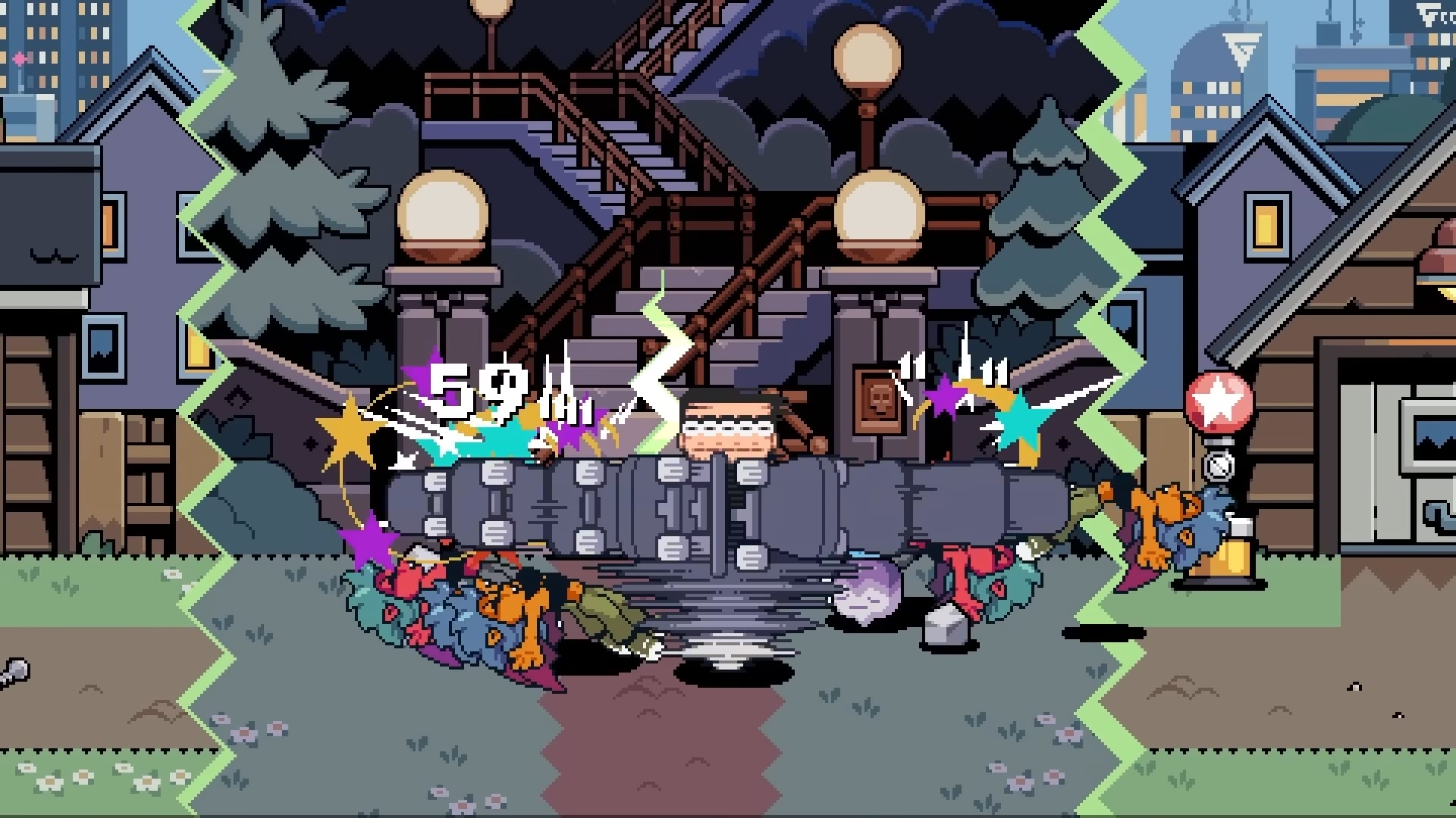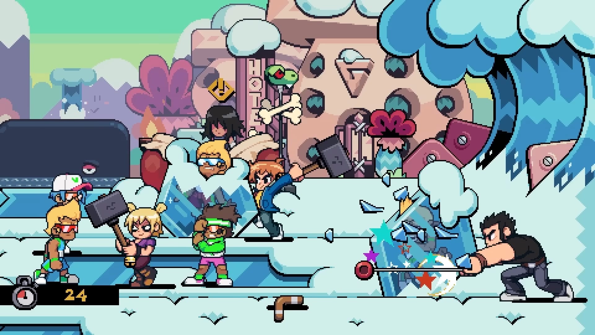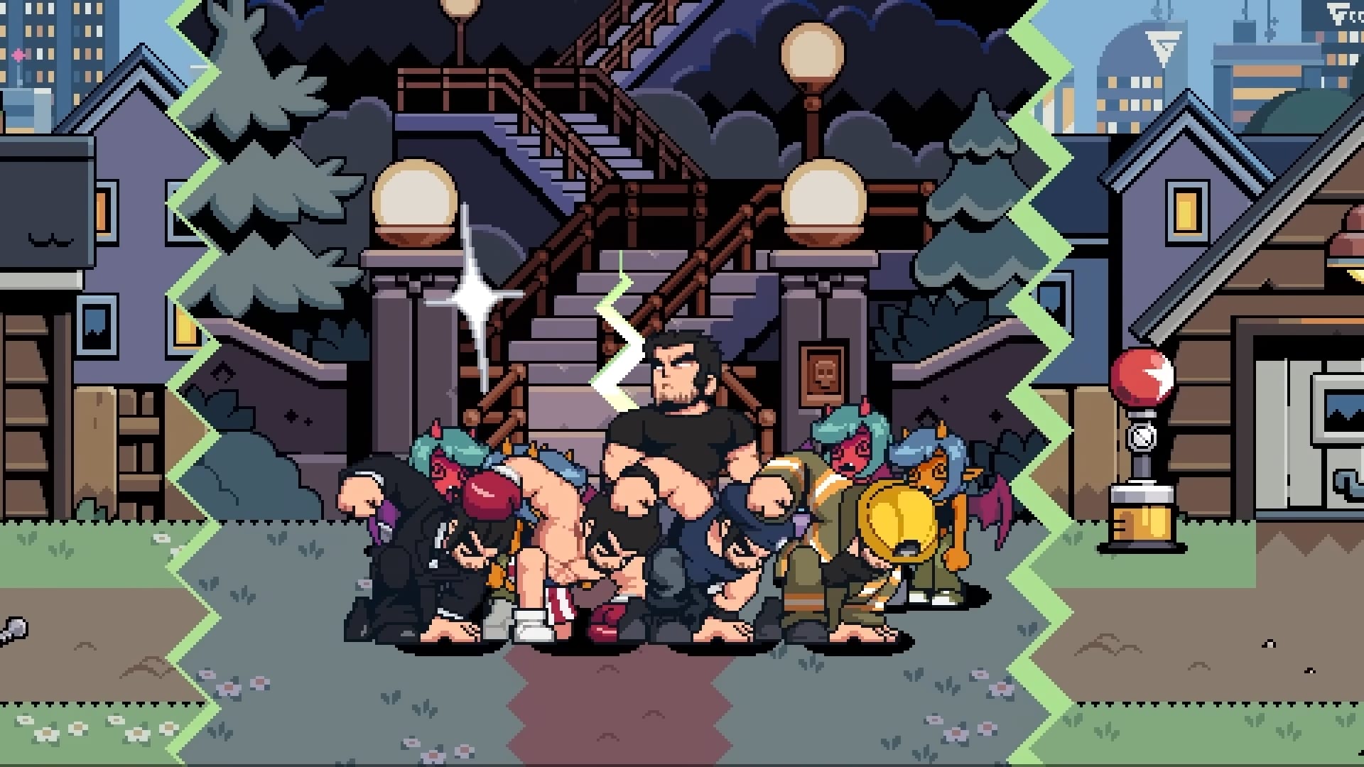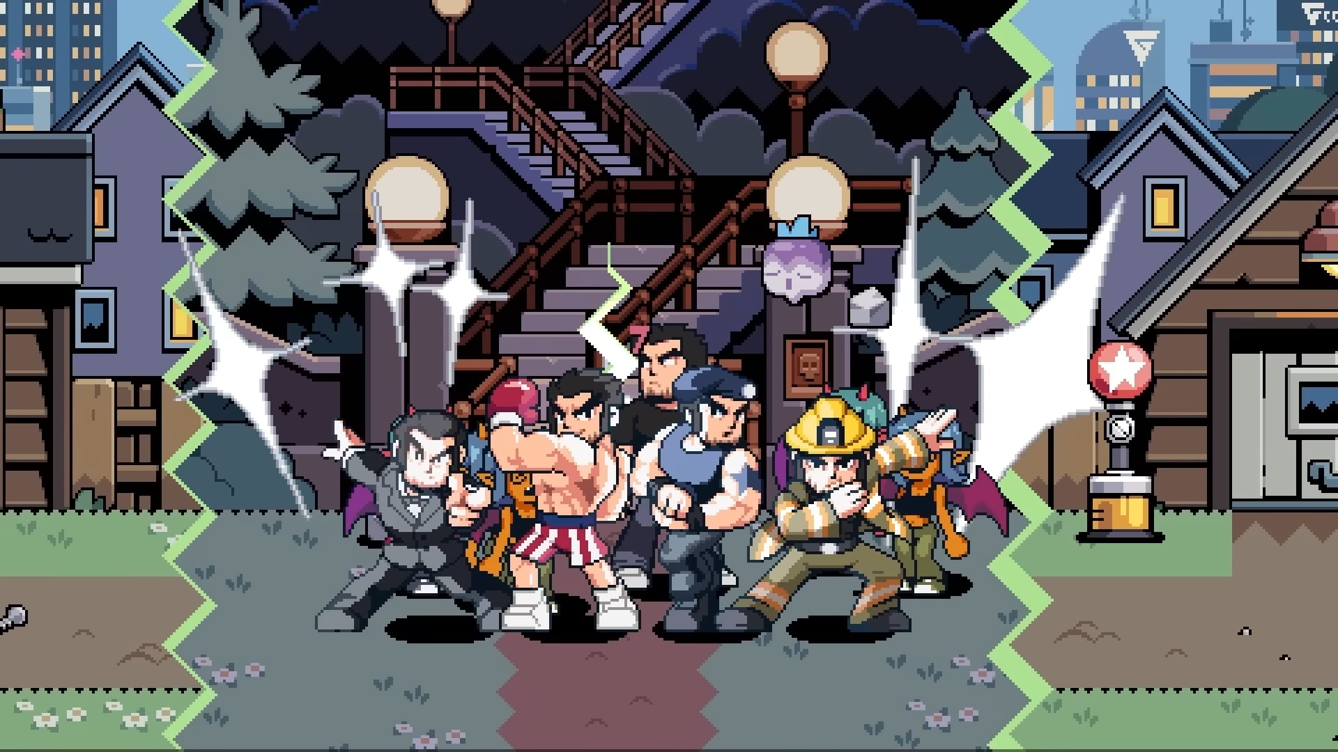 « Le redoutable Lucas Lee et la petite terreur Roxie Richter, qui profitent tous deux du talent de Tribute Games en matière de création artistique néorétro. Lucas fait une petite pause dans sa vie de star hollywoodienne, mettant tout autant à profit ses talents de lutteurs que son skateboard pour mettre une raclée à tous les méchants qui croiseront sa route. Demi-ninja rapide et agile, Roxie enchaîne quant à elle ses très caractéristiques coups d’épée pour trancher dans la mêlée, tout en profitant de bombes fumigènes et de capacités spéciales qui la transforment en véritable blender sur le champ de bataille. »