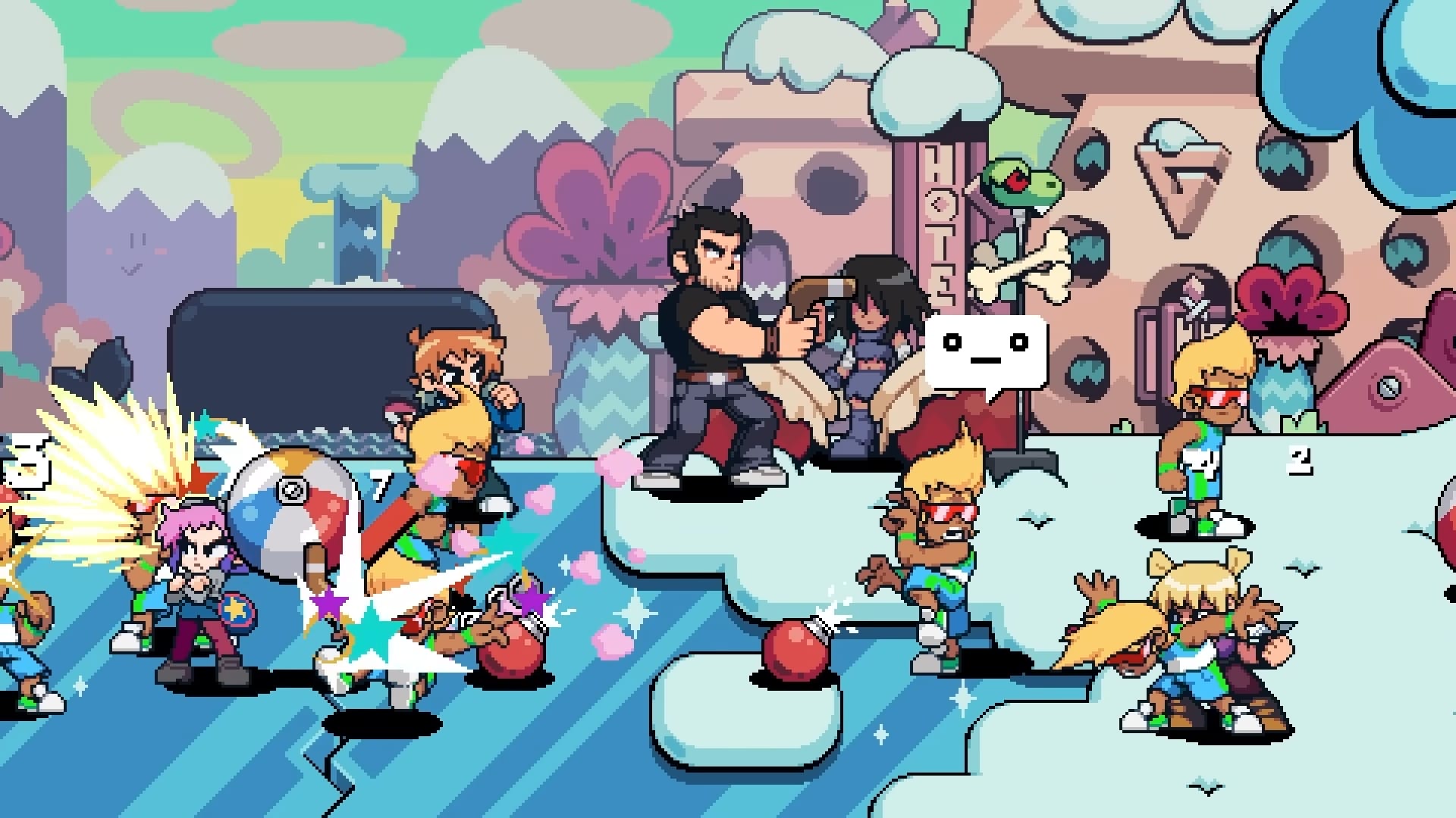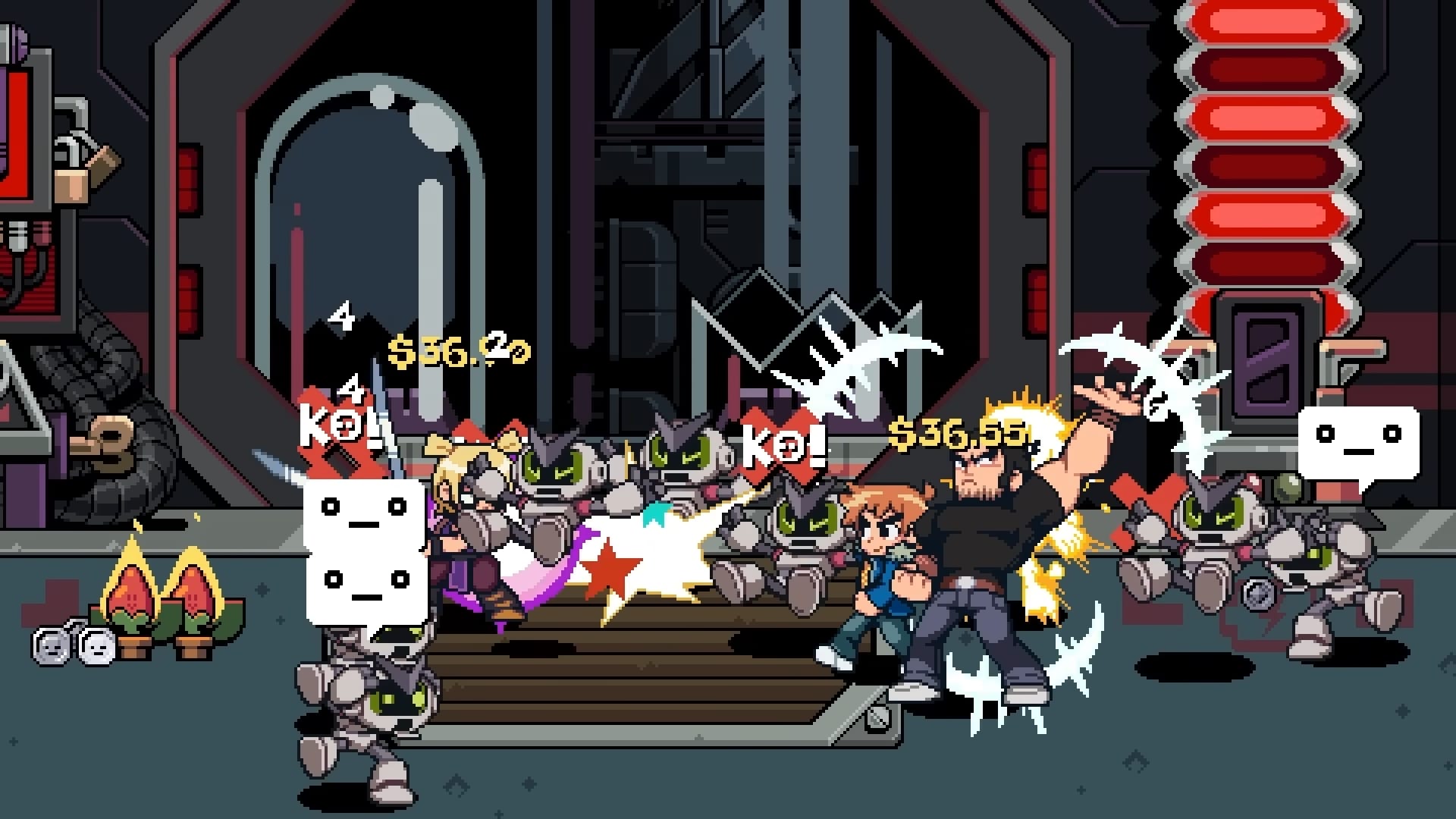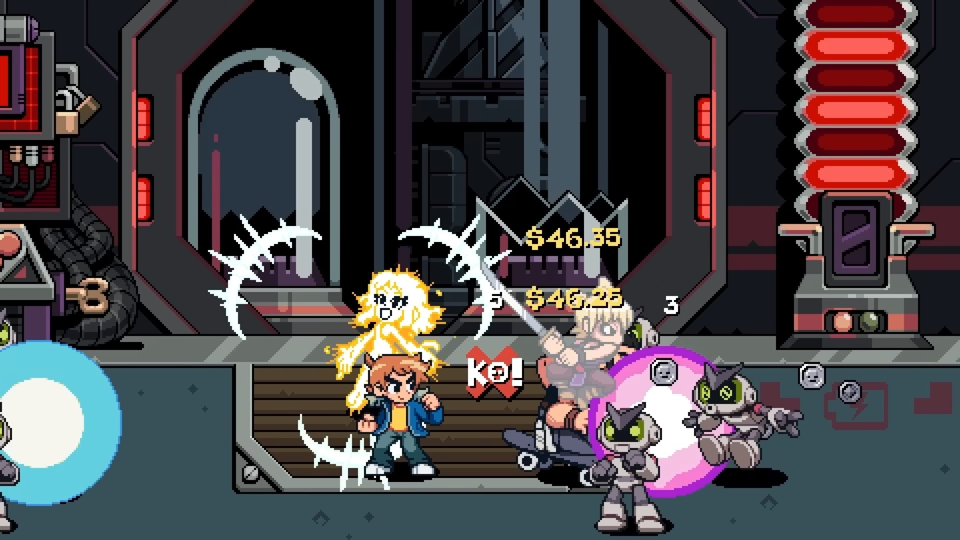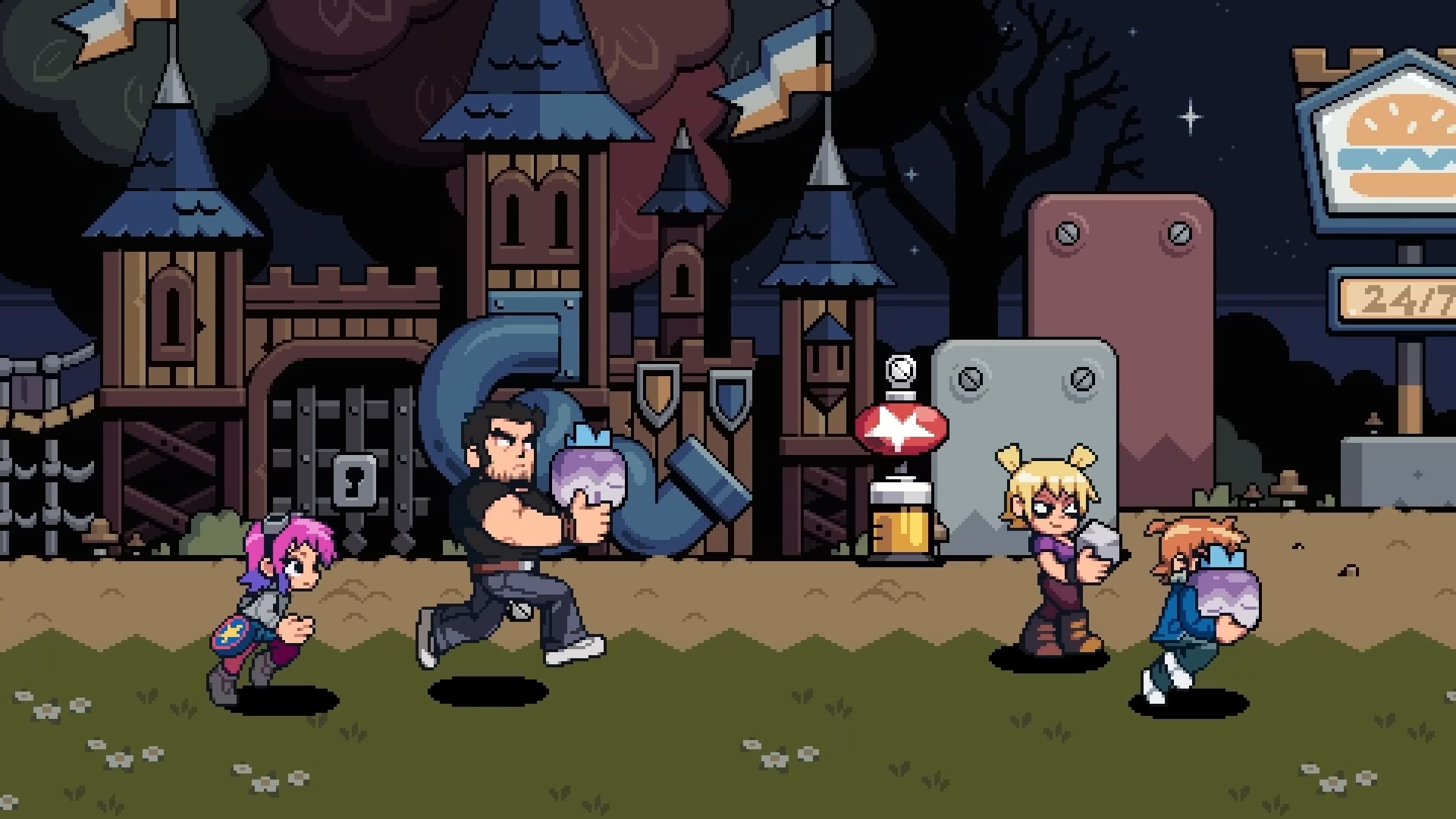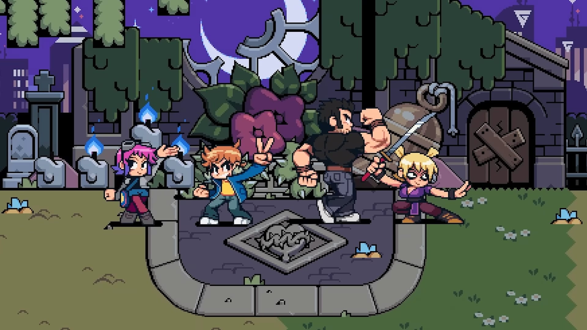 Pour la création de Scott Pilgrim EX, Tribute Games s’est donc associé au créateur de la série, Bryan Lee O’Malley, qui est très impliqué dans le projet en tant que consultant créatif. Le scénario original est co-signé par Bryan Lee O’Malley et les équipes de Tribute Games dédiées à la narration et au design. Tribute Games promet que chaque image, chaque arc de personnage et chaque twist porte la marque du ton et de l’humour caractéristiques du créateur de la saga. L’artiste Paul Robertson, spécialisé dans le pixel art, collabore avec Tribute Games sur les animations des personnages, tandis que BenDavid Grabinski, réalisateur et showrunner de la série Scott Pilgrim prend son envol animée par Science Saru (le studio d’animation japonais fondé par le réalisateur, scénariste et animateur Masaaki Yuasa), participe au projet en tant que consultant créatif. Anamanaguchi est de retour pour la bande originale avec de nouvelles musiques créées spécialement pour le jeu. Nous avions parlé du groupe dans cet article concernant Scott Pilgrim contre le Monde : le jeu – Édition intégrale.