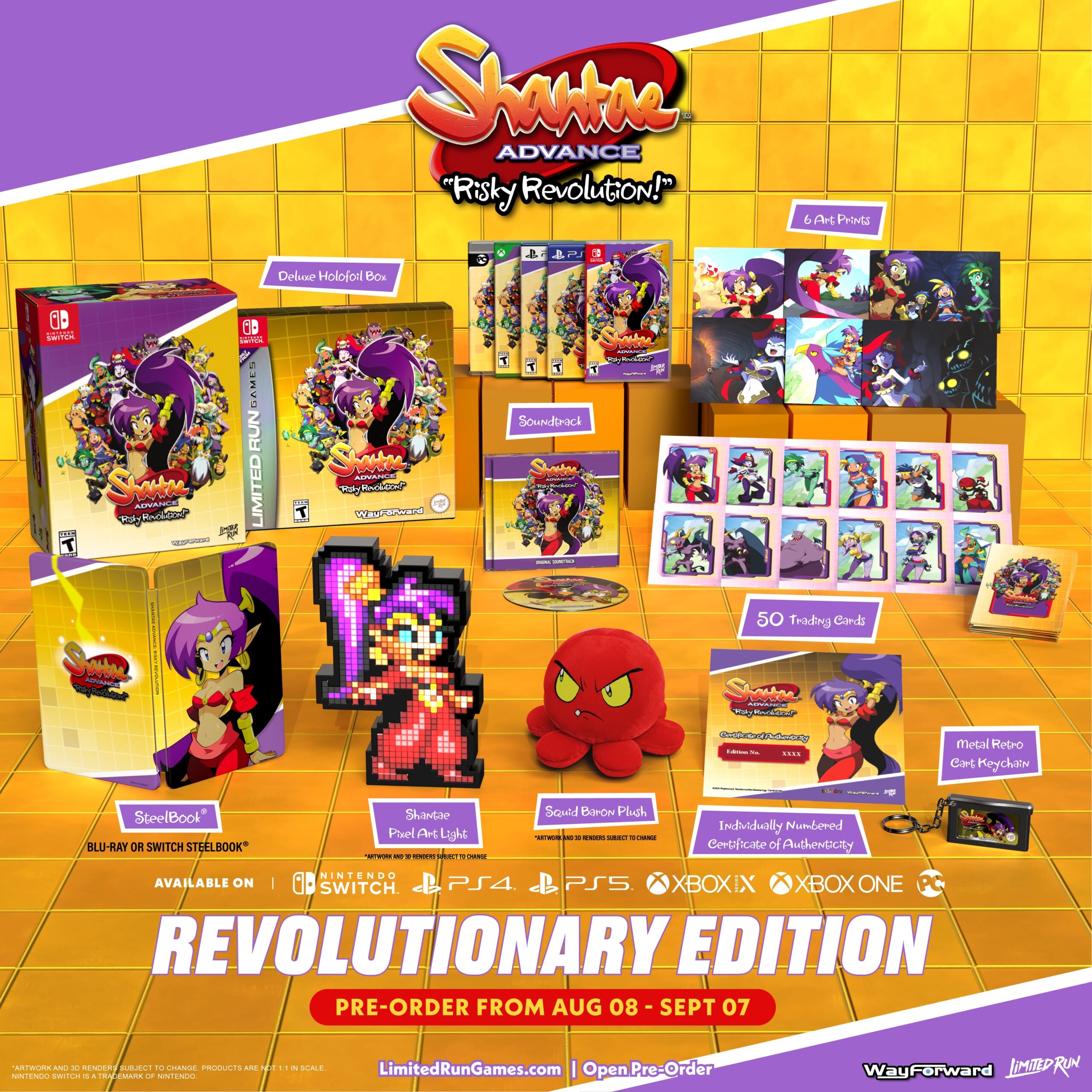 Après les éditions physiques pour la version Game Boy Advance (qui ne sont plus disponibles chez Limited Run Games, mais il reste possible de les acheter sur la boutique en ligne VIDEOGAMESPLUS.CA), Limited Run Games en propose d’autres pour les versions Switch, PS4, PS5, Xbox One / Series X. Le contenu de la Deluxe Edition est directement intégré sur la cartouche ou le disque de n’importe quelle édition. Différents produits dérivés (vinyle de l’OST en deux versions, peluche de Risky Boots, t-shirt, casquette, classeur de cartes et pochettes de cartes) sont également disponibles. Tout peut être précommandé uniquement jusqu’au lundi 8 septembre 2025 à 05:59 du matin (heure française). Une version européenne des éditions physiques n’a pas été annoncée.