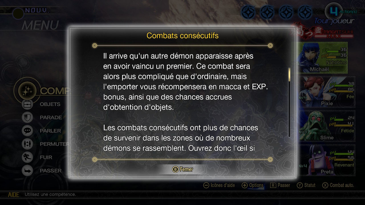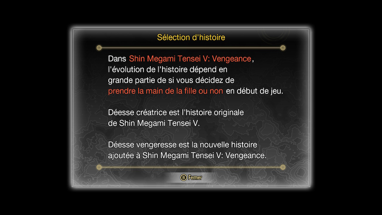 Depuis notre article précédent, nous avons pu recueillir d’autres informations concernant Shin Megami Tensei V : Vengeance. Par exemple, les crédits mentionnent bien les équipes en charge des localisations, et comme on pouvait s’y attendre, il y avait là aussi du nouveau. Nintendo of Europe avait été en charge de la localisation pour la version d’origine, ce qui n’est pas le cas pour Vengeance. En effet, plusieurs agences ont été réunies pour les nouvelles traductions en anglais, français, italien, allemand, espagnol d’Espagne, portugais du Brésil, polonais, russe, turc, coréen et chinois (simplifié et traditionnel). En ce qui concerne la version française, Gwladys Gaye-Williams, Geoffrey Ruaux, Marc Eybert-Guillon, Ronan Salon, Alexis Barroso et Sasha Boucheron ont travaillé pour PxIHrt (agence que l’on retrouvait dernièrement pour Unicorn Overlord, plusieurs des traducteurs cités ayant aussi travaillé sur la traduction française de ce jeu). On apprend par le biais de Marc Eybert-Guillon et Alexis Barroso que le script d’origine a été entièrement retraduit. Ils ont aussi localisé tout le nouveau contenu (la nouvelle trame, Déesse vengeresse, les nombreux nouveaux dialogues avec les démons, etc…).