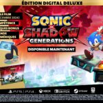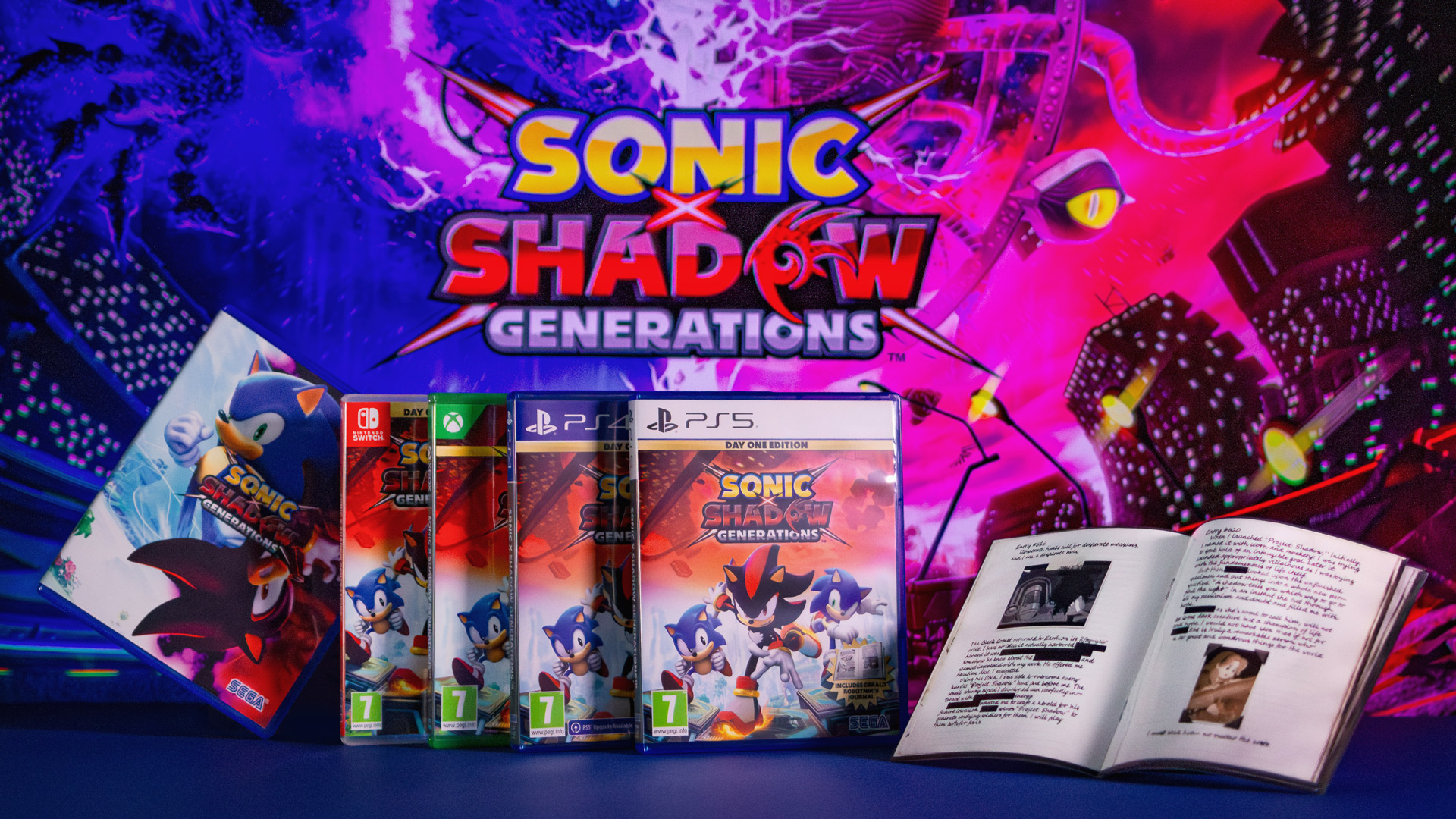 Sonic X Shadow Generations est disponible sous la forme de plusieurs éditions. Il y a une version standard à 49,99 €, disponible en physique et en téléchargement, et une édition Digital Deluxe coûtant 59,99 €. Le contenu de la version Digital Deluxe est également disponible séparément pour 11,99 € (ce qui est donc surtout utile pour les personnes possédant la version physique). Les premiers exemplaires de la version standard contient en bonus un livret de 28 pages, le Journal du Professeur Gerald Robotnik (qui compile ses réflexions et ses croquis sur la création de Shadow et de la station spatiale ARK). De plus, SEGA a décidé de fournir une couverture réversible pour l’édition physique européenne et américaine avec le visuel de la jaquette japonaise.
