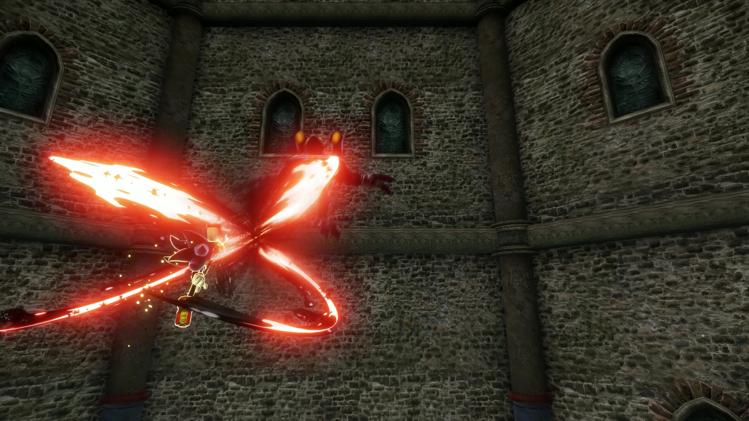Iizuka-san : Les Ailes de Doom, ces ailes noires qui sortent de Shadow dans la bande-annonce du Summer Game Fest. Cette idée percutante nous est venue au début du processus de création, alors on tenait à ce que ça soit le pouvoir le plus cool de la puissance de Doom. Les ailes de Shadow font penser au diable, ce qui correspond très bien à son côté obscur de héros, et puis ça nous permet de présenter une nouveauté sympa que nous ne pouvions pas faire avec Sonic. »