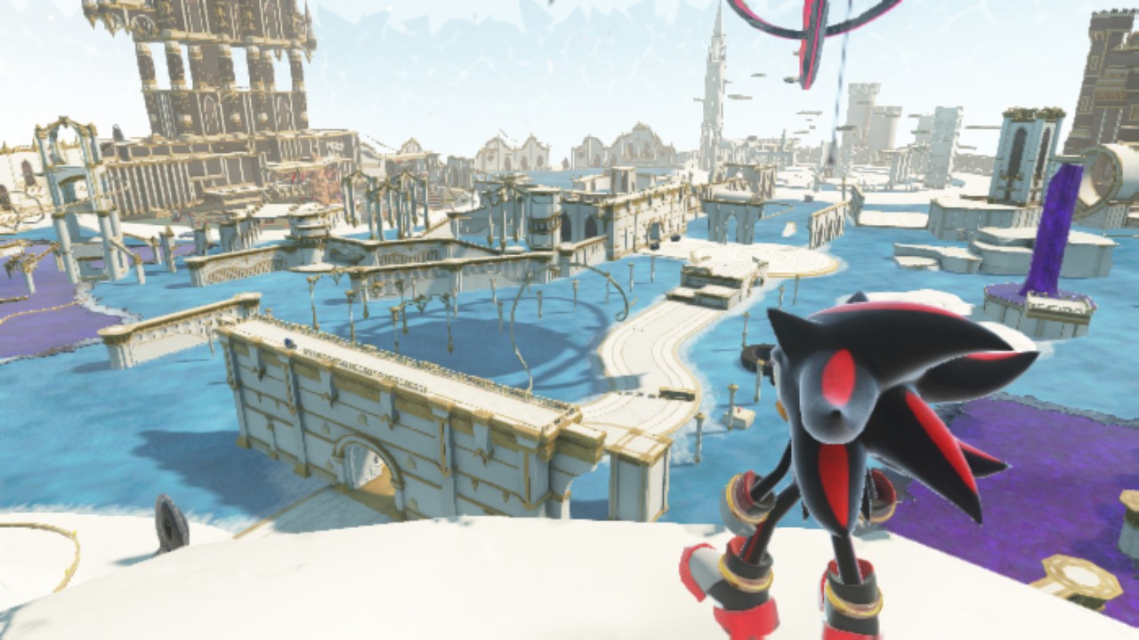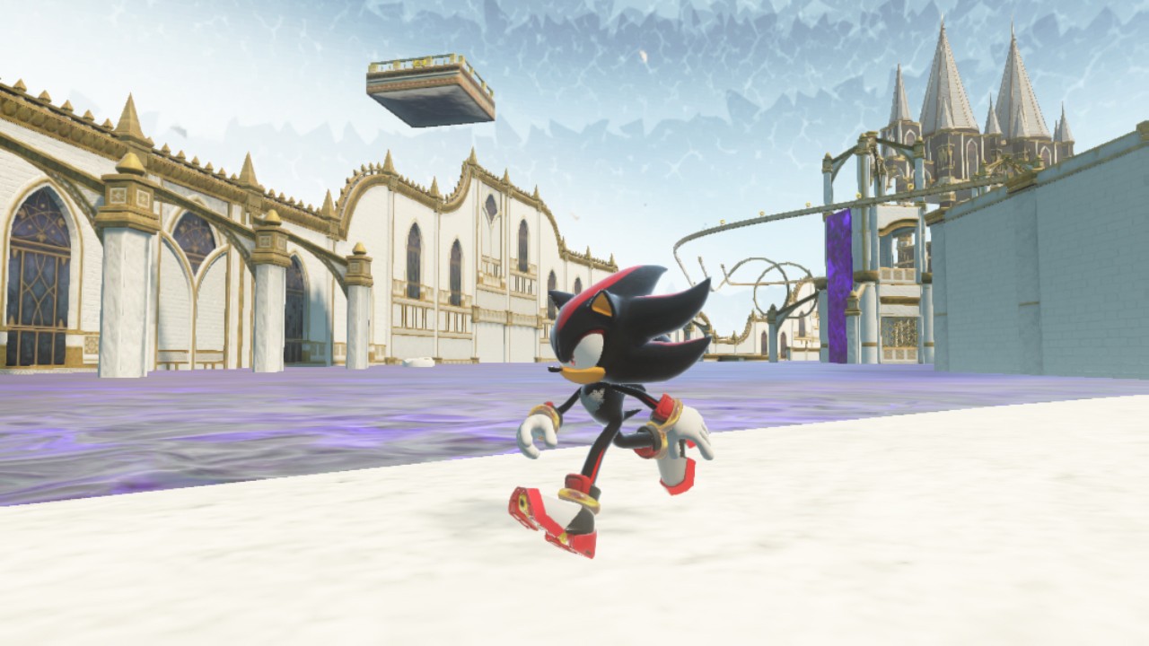 Iizuka-san : Lors de la création des niveaux de Shadow Generations, nous tenions à tirer parti du Chaos Control, l’action existante de Shadow qui lui permet de découvrir de nouvelles plateformes à parcourir dans chaque niveau et de nouvelles formes d’assaut contre les boss. Mais si nous n’avions gardé que le Chaos Control, le gameplay de Shadow serait resté trop semblable aux actions de Sonic, alors nous avons décidé d’ajouter la puissance de Doom pour une action plus unique dans le jeu. Cela augmente la diversité des actions disponibles dans les niveaux de plateformes, tout en donnant à Shadow de formidables capacités d’exploration et de parcours dans l’univers 3D Espace blanc.
