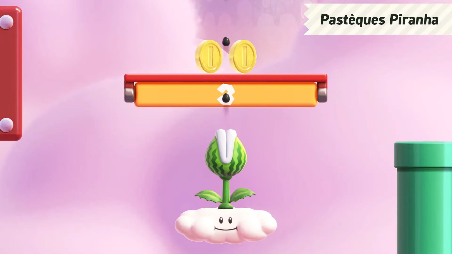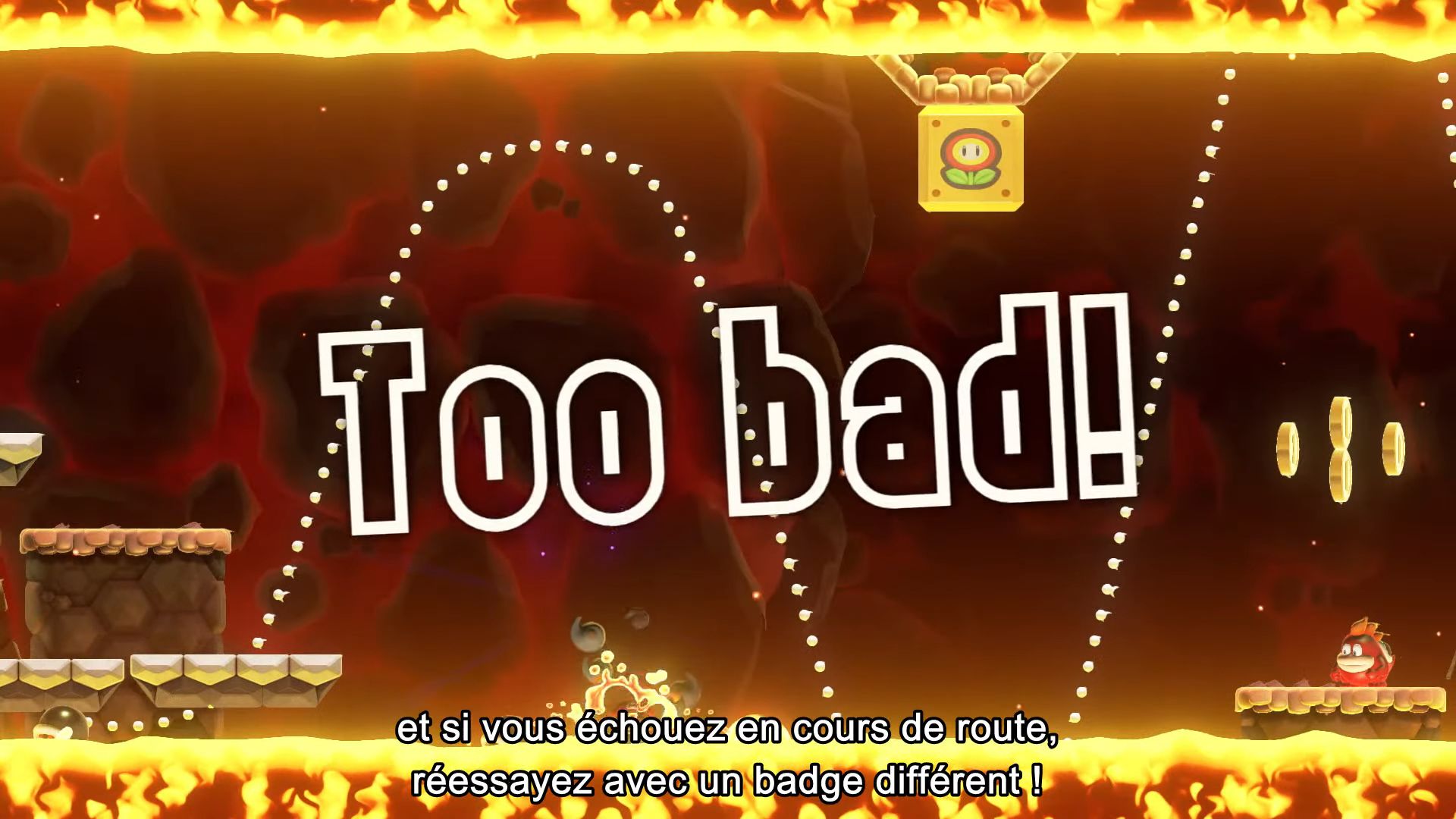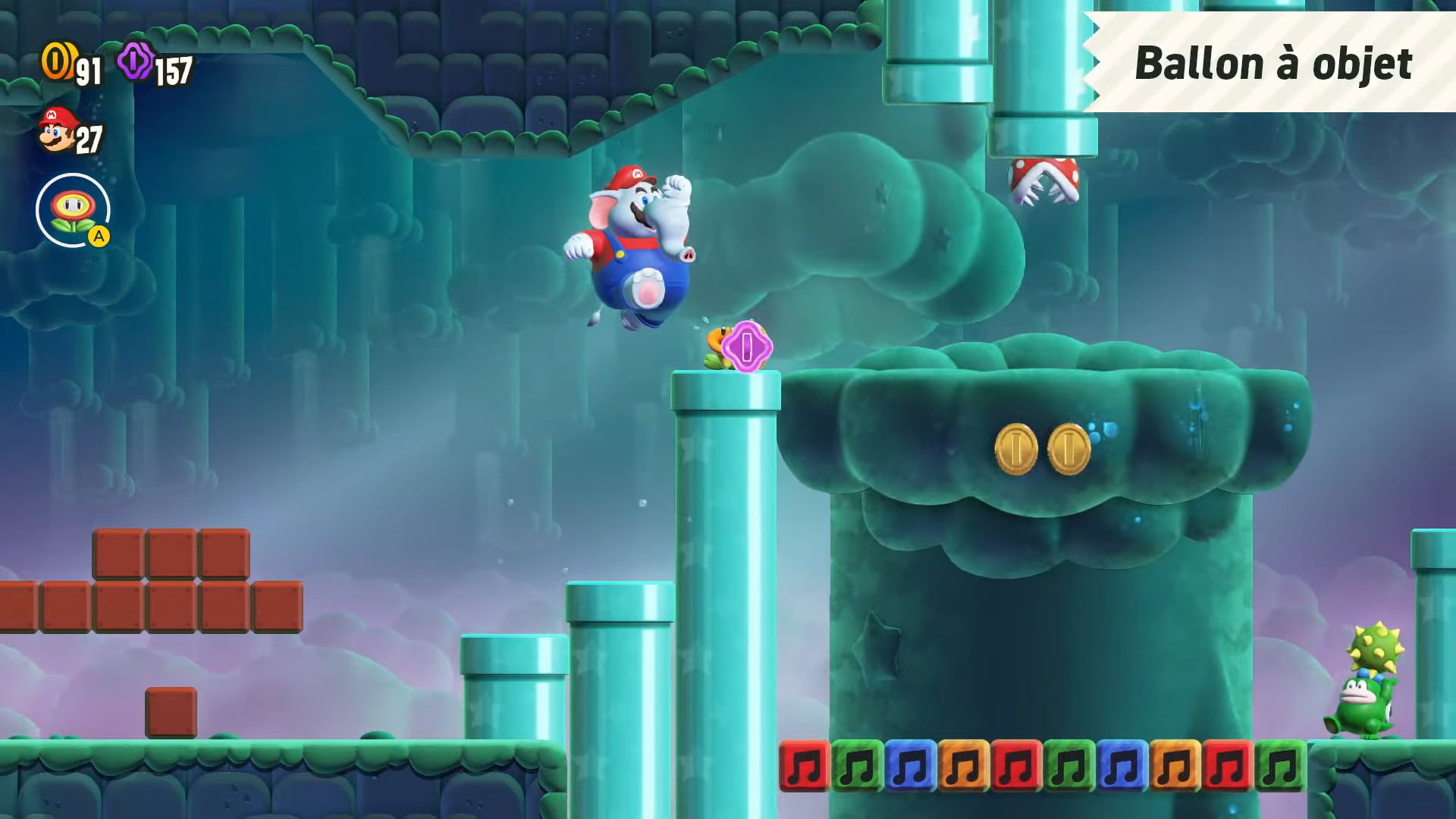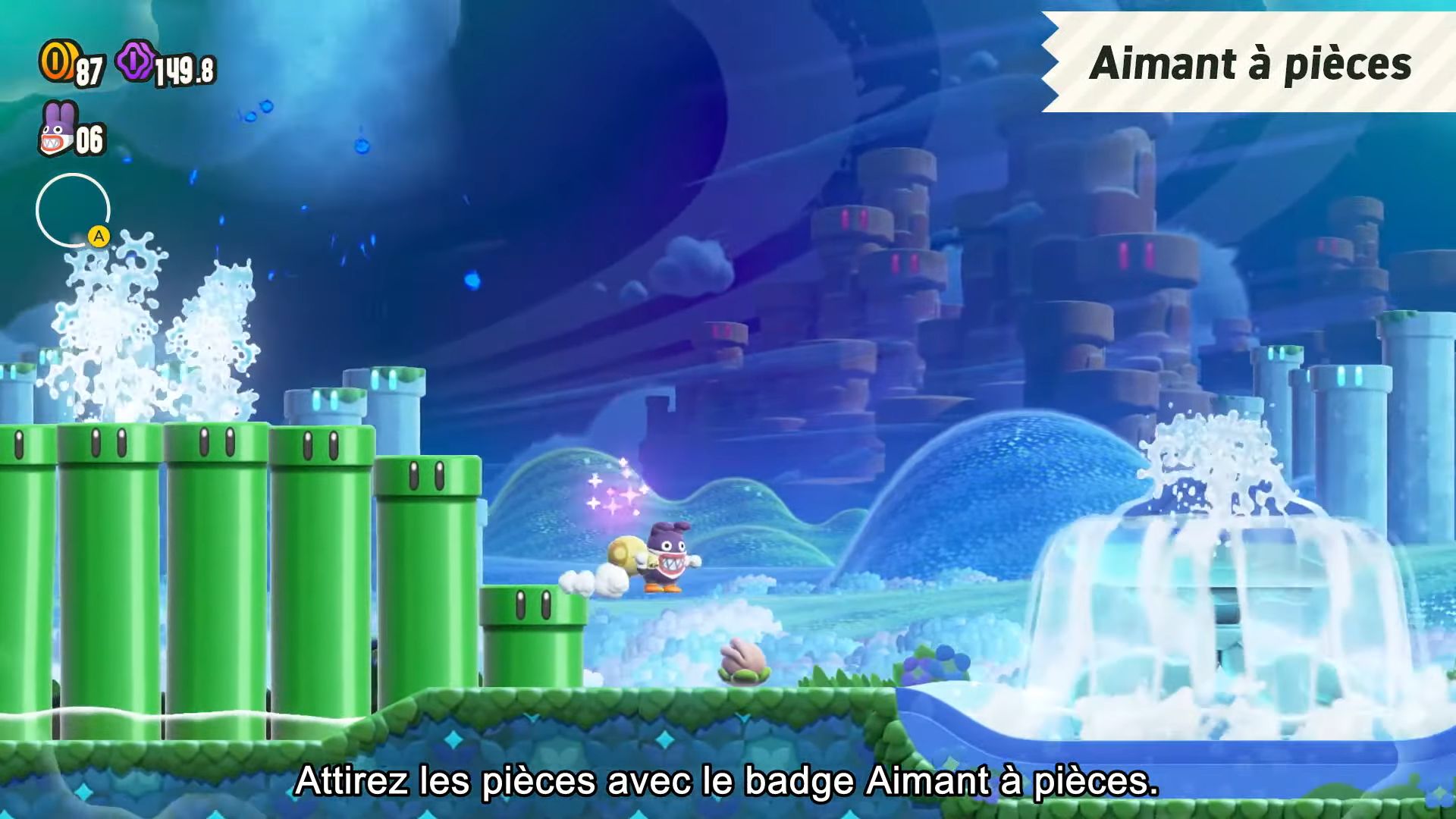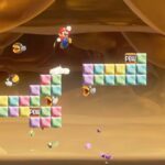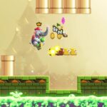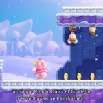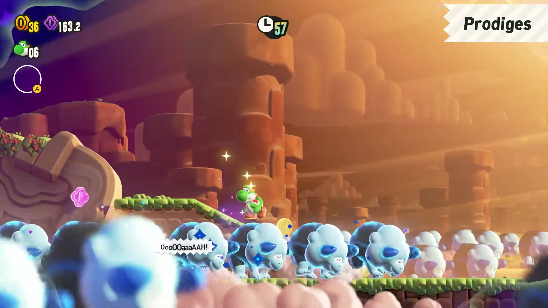 Certains prodiges peuvent même transformer notre personnage. Mario peut alors devenir un Goomba, une boule à pics, ou encore gonfler comme un ballon. Pour que le stage revienne à la normale, il suffira de mettre la main sur une graine prodige. Les graines prodiges sont aussi nécessaires pour déverrouiller certains stages. Un Poplin nous offrira également une graine prodige lorsque l’on atteindra l’arrivée d’un stage.