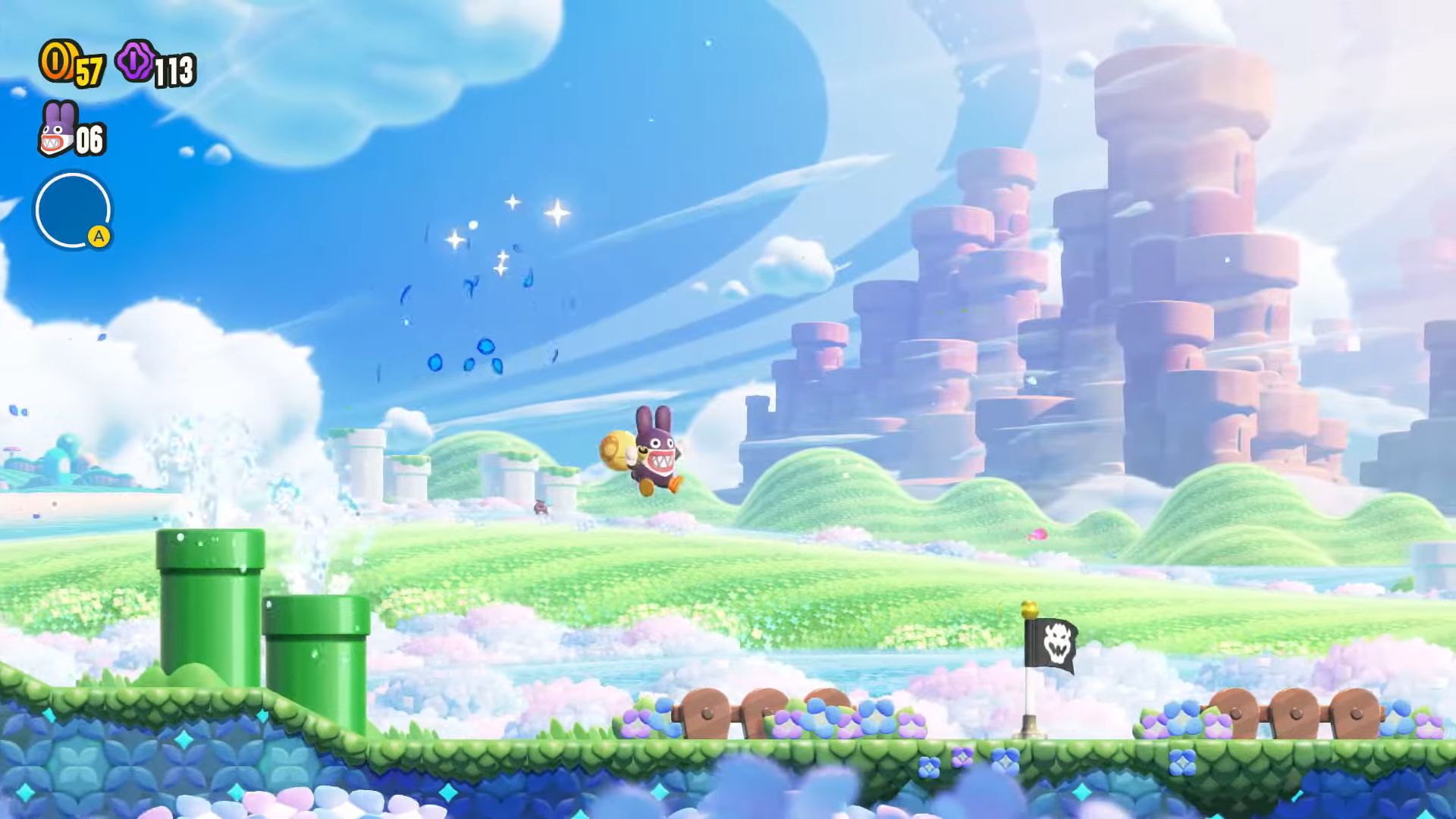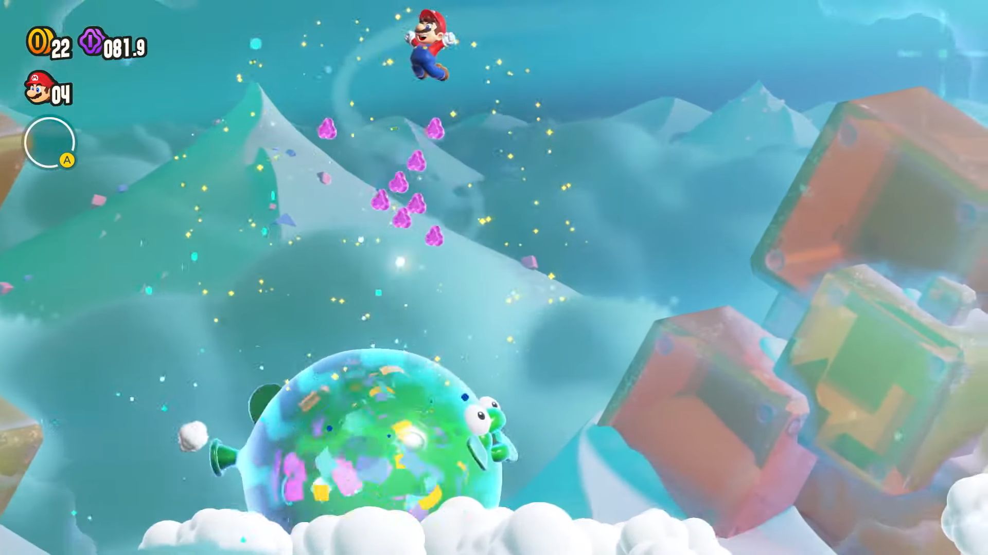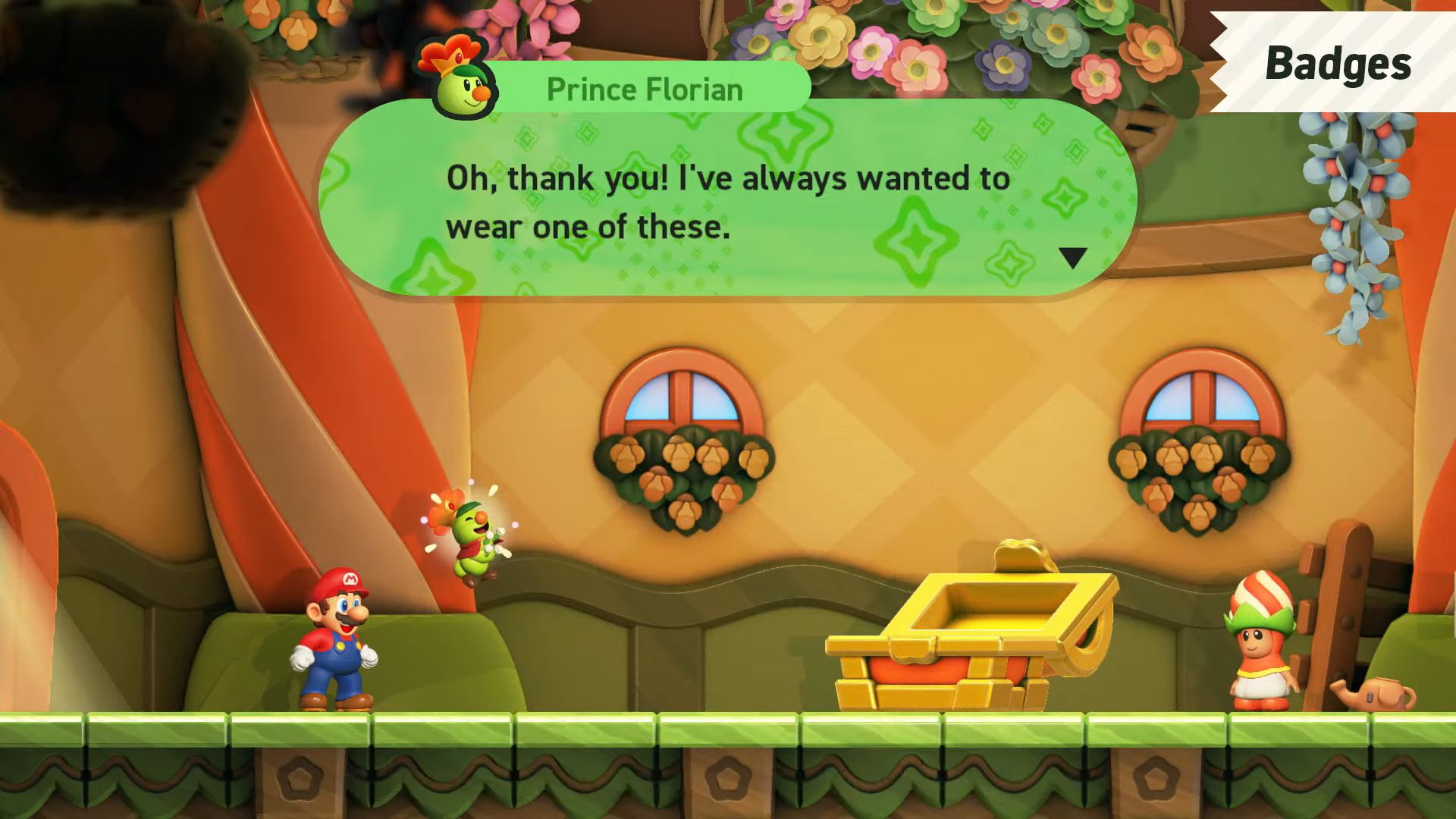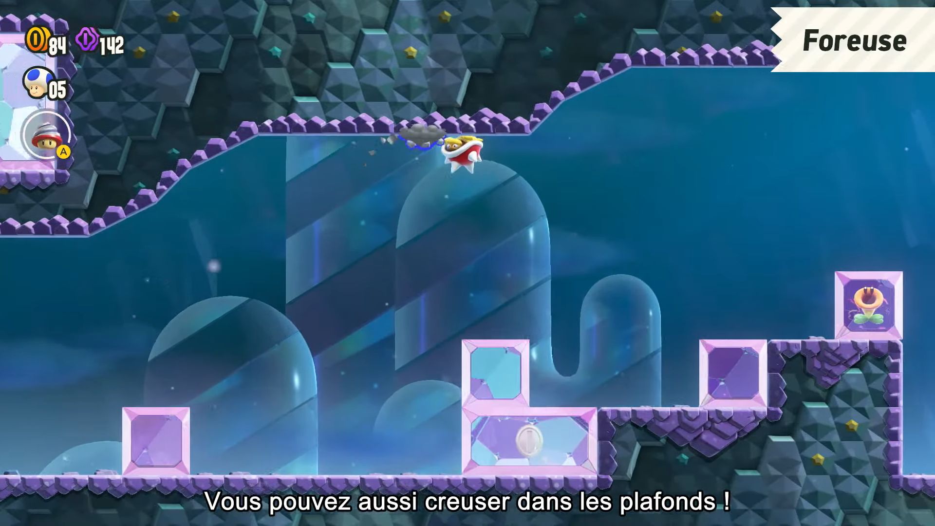 Certains prodiges peuvent même transformer notre personnage. Mario peut alors devenir un Goomba, une boule à pics, ou encore gonfler comme un ballon. Pour que le stage revienne à la normale, il suffira de mettre la main sur une graine prodige. Les graines prodiges sont aussi nécessaires pour déverrouiller certains stages. Un Poplin nous offrira également une graine prodige lorsque l’on atteindra l’arrivée d’un stage.