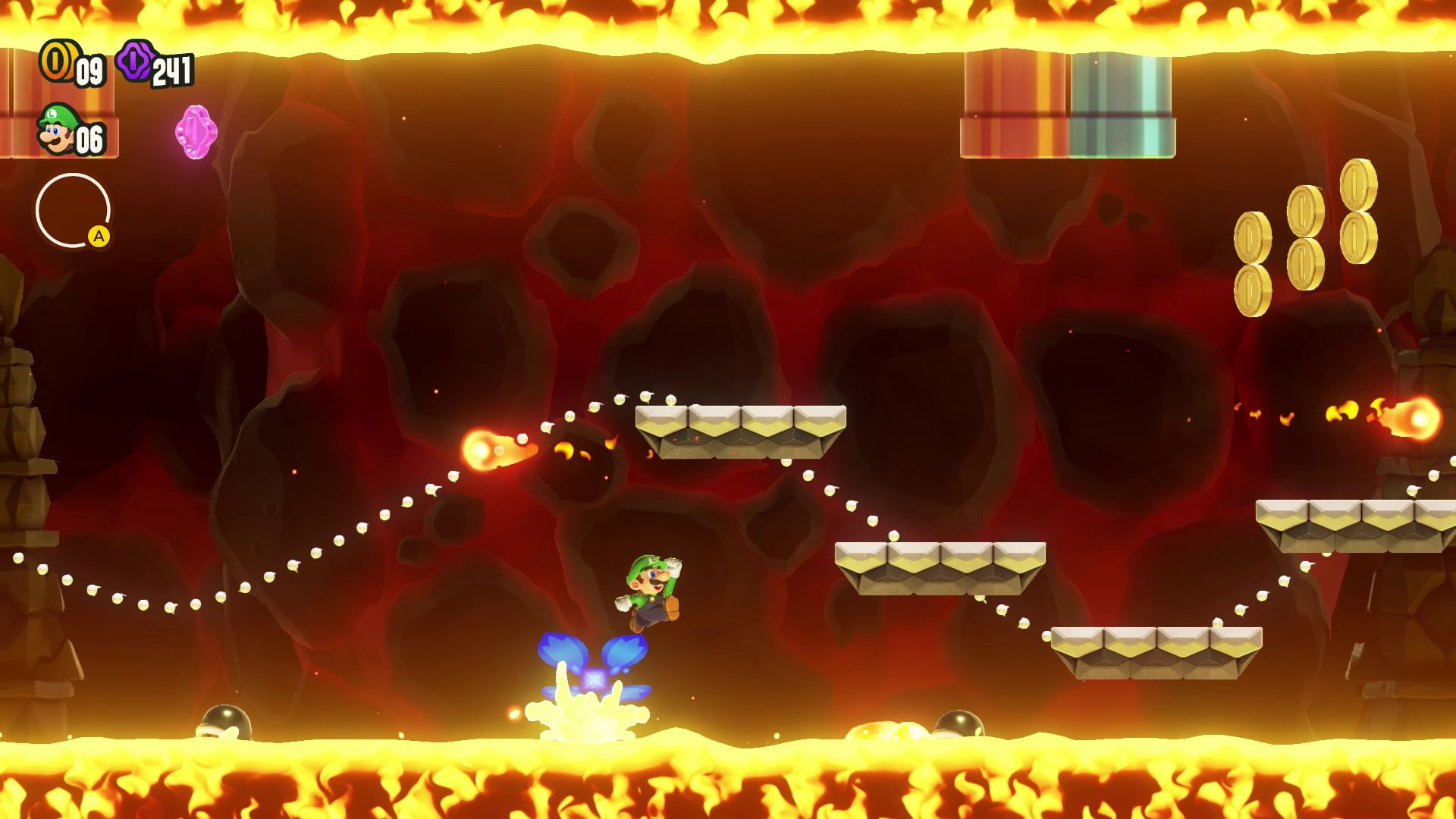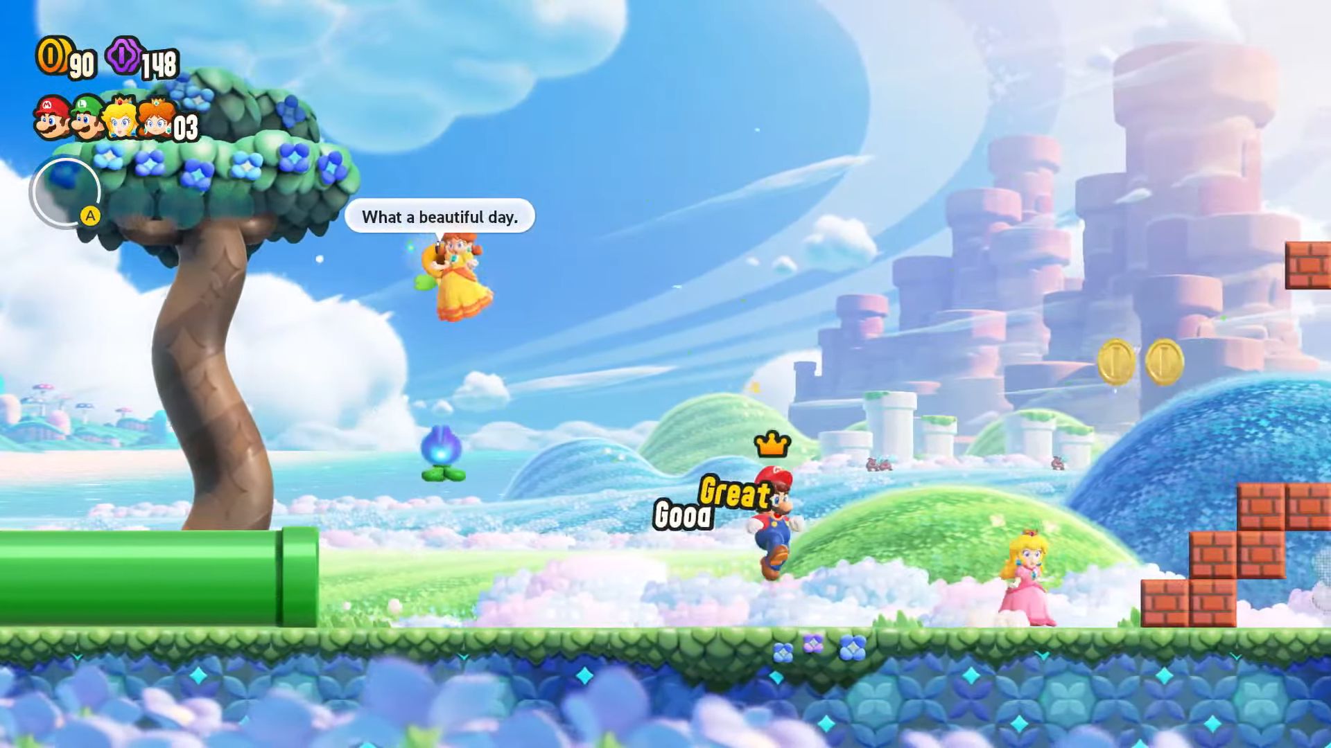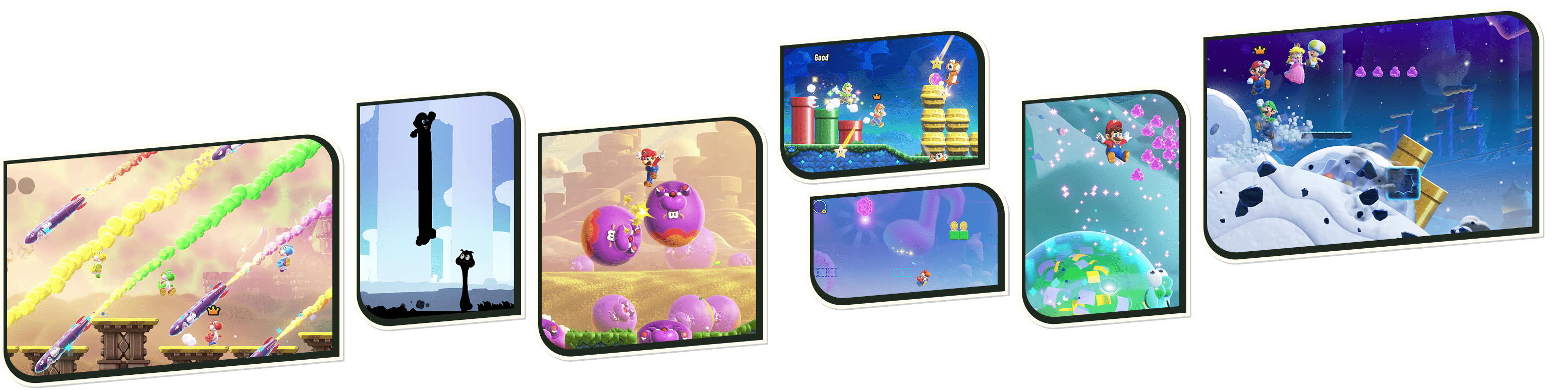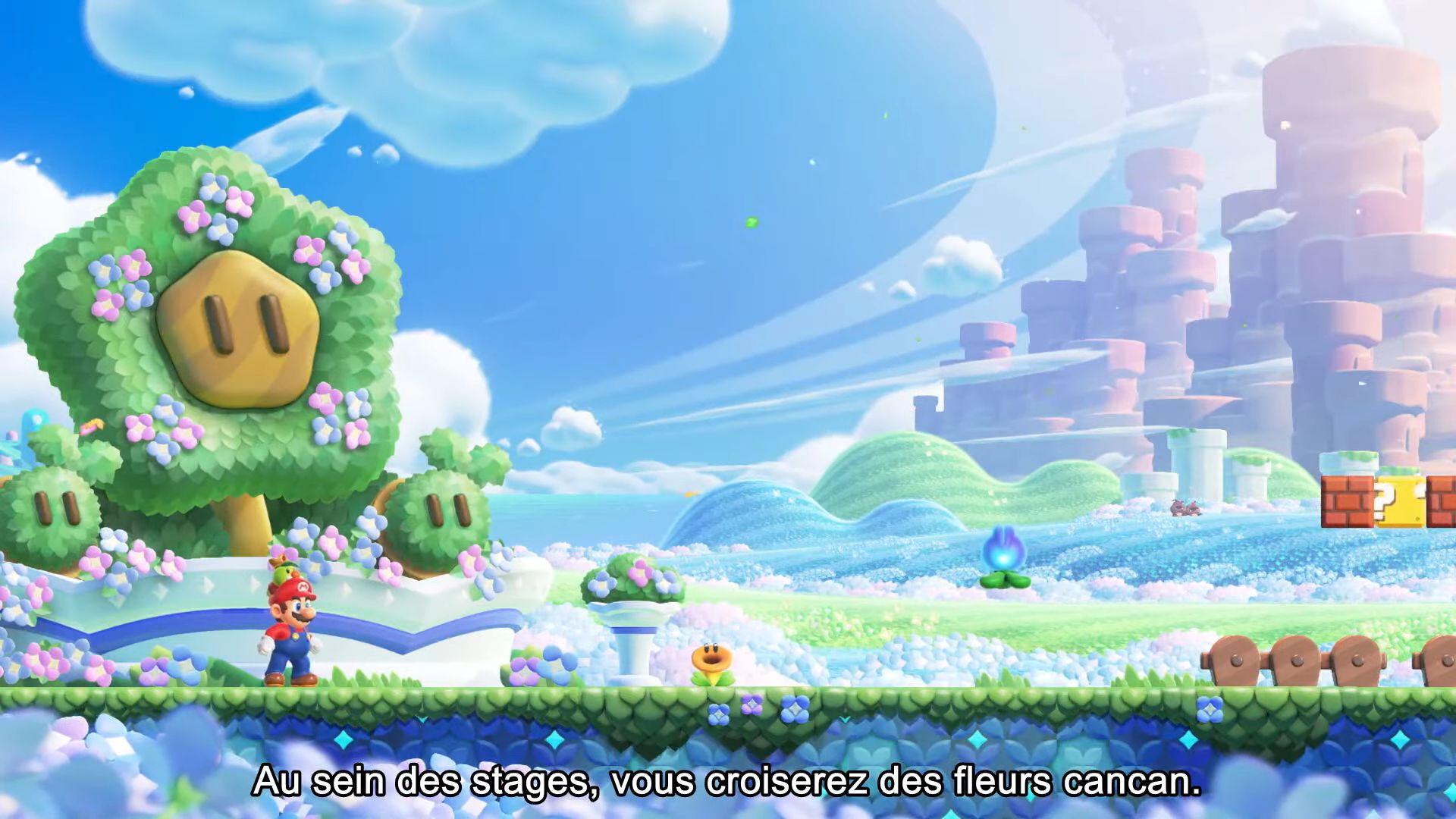 Dans Super Mario Bros. Wonder, on trouve des fleurs prodiges, une espèce qui pousse au Royaume des Fleurs. On raconte qu’elles absorbent les mystérieux pouvoirs de ce monde, pour les libérer en éclosant. C’est ce pouvoir que Bowser cherche à s’accaparer. Chaque fois que l’on touche une fleur prodige, un phénomène prodigieux se produira, avec des effets surprenants. Des tuyaux peuvent s’animer, une nuée d’ennemis peut débouler sans prévenir, le sol peut se mettre à pencher, on peut se retrouver en chute libre, des bulles peuvent envahir l’écran, la perspective d’un stage peut changer radicalement et on peut même se retrouver dans l’espace.