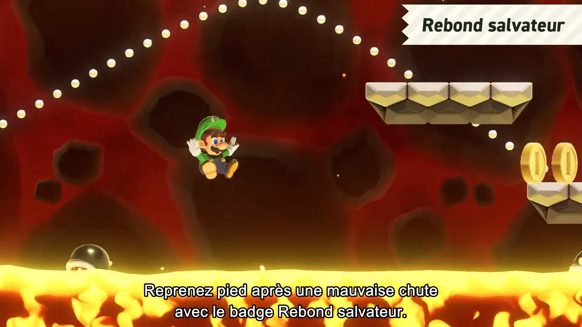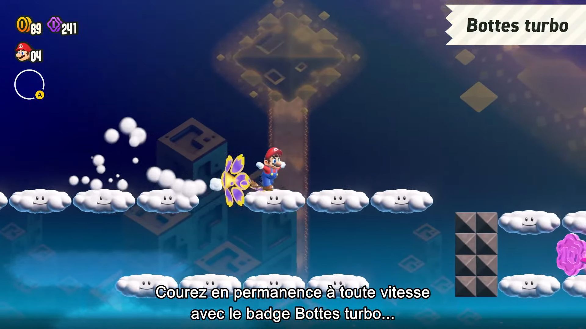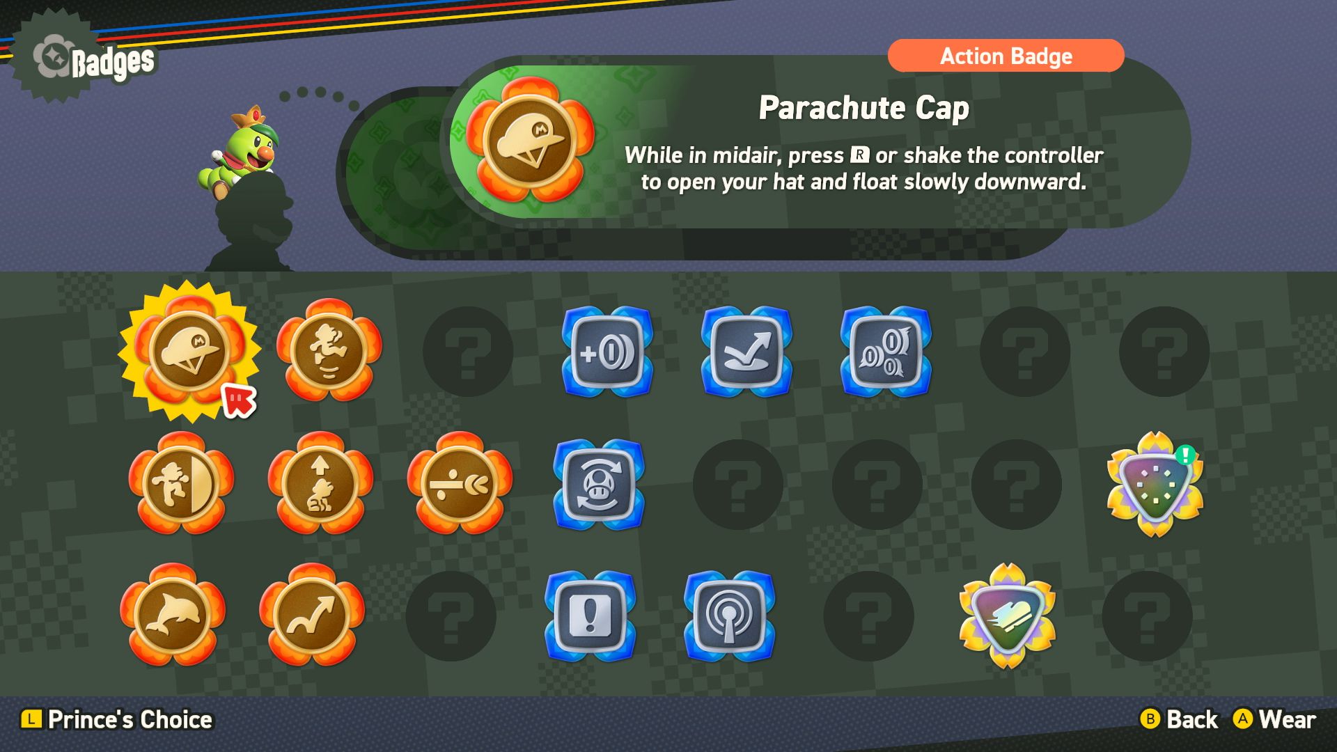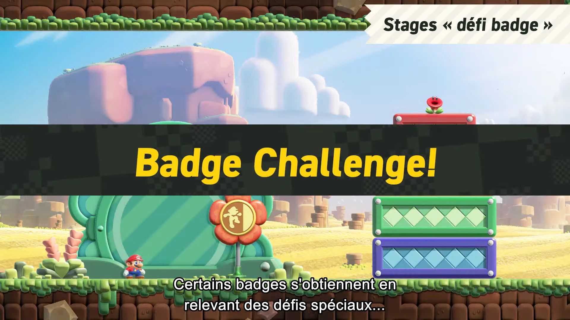 Super Mario Bros. Wonder comporte un système des stages divisés en trois catégories – action, bonus et expert – qui peuvent changer notre de façon de jouer quand on les porte. Il existe de nombreux badges qui possèdent chacun un effet unique :