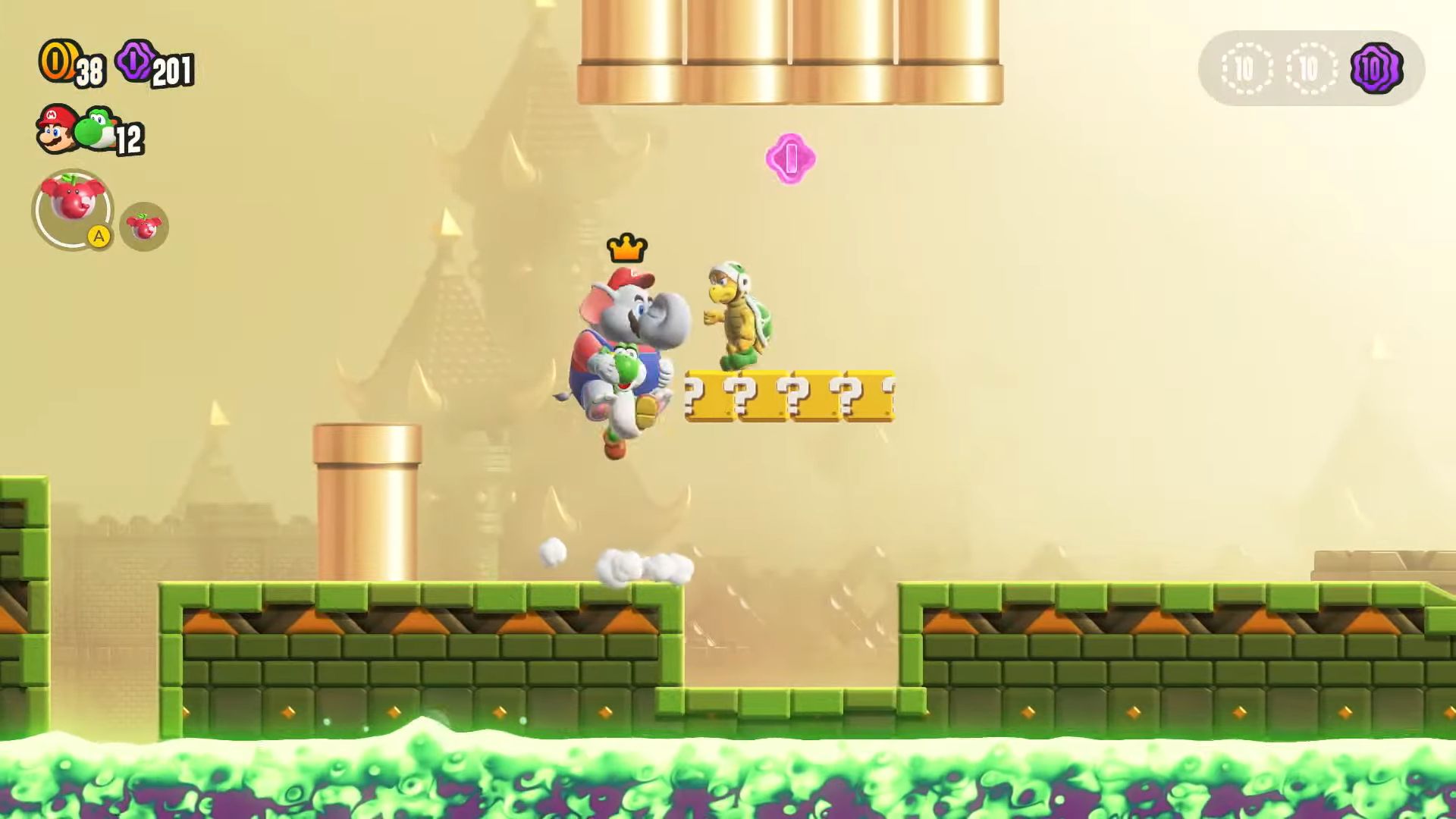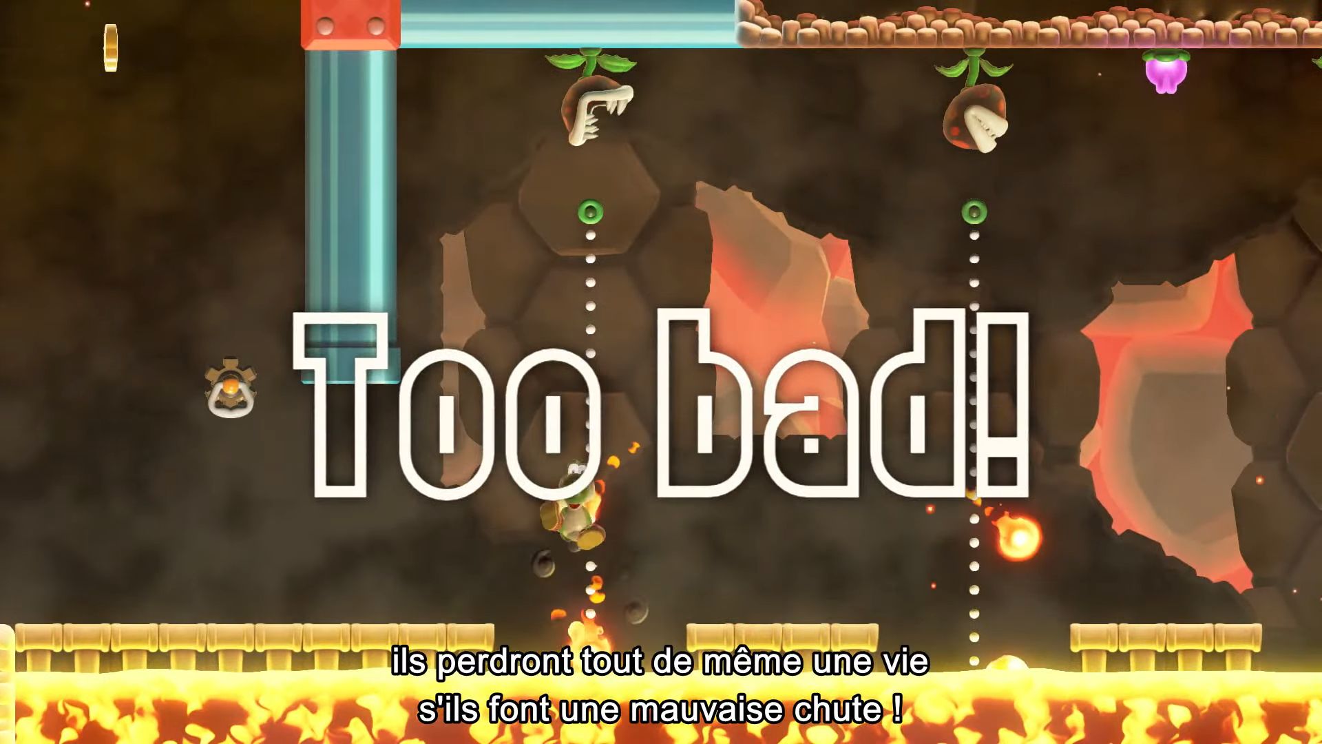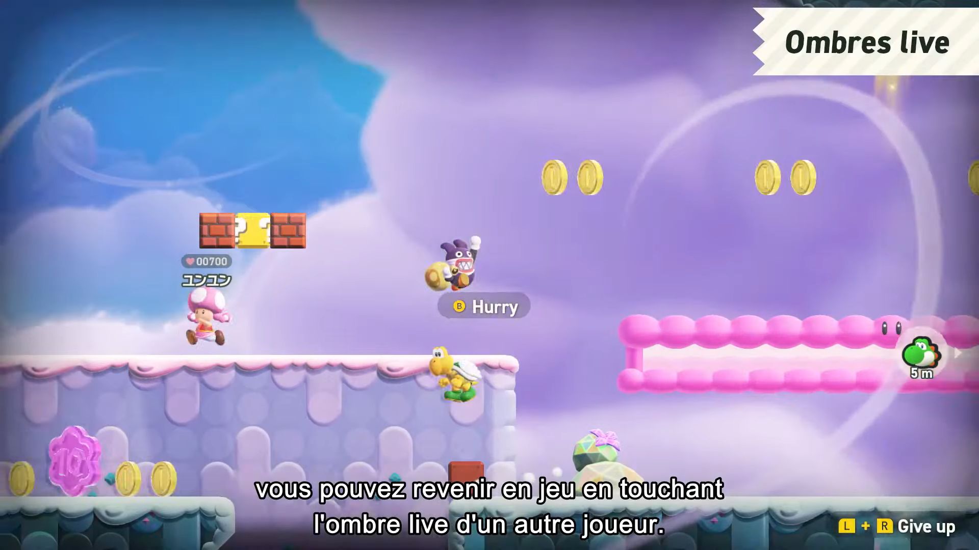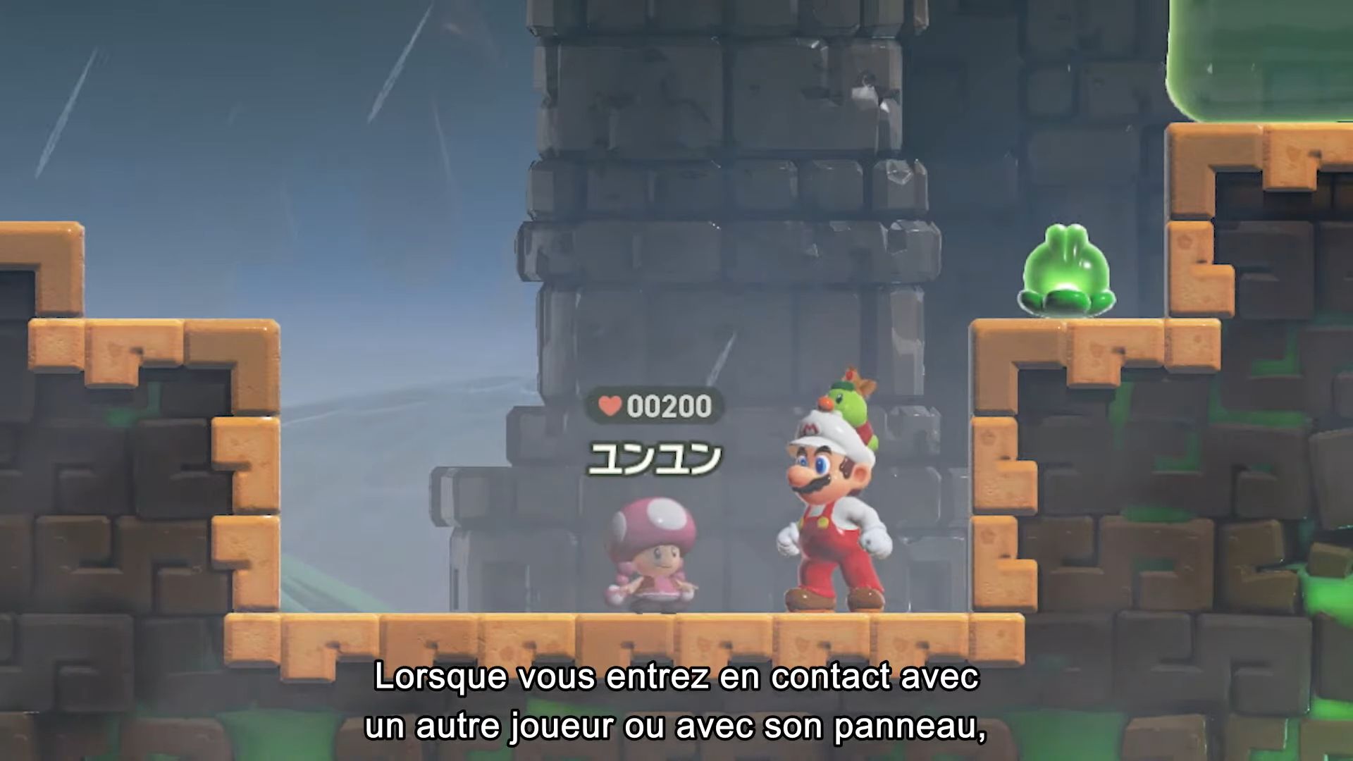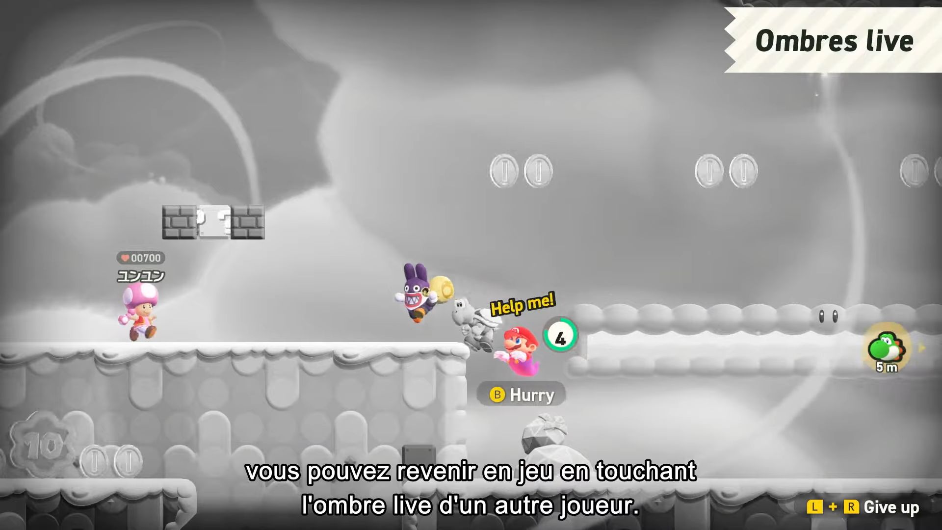 Jusqu’à quatre personnes pourront jouer ensemble sur une même console Nintendo Switch. Chacun pourra sélectionner un personnage et il suffira de partir ensemble à l’aventure. Si quelqu’un est éliminé en multijoueur local, son personnage flottera quelques secondes à l’écran sous forme de fantôme. Si quelqu’un d’autre le touche avant la fin du décompte, il pourra revenir en jeu. De plus, le groupe ne perdra pas de vie non plus. Autre information intéressante : si quelqu’un incarne un Yoshi, il sera possible de grimper sur son dos et de se laisser porter à travers le stage, et ce même l’on incarne un autre Yoshi ou que l’on est transformé en éléphant.