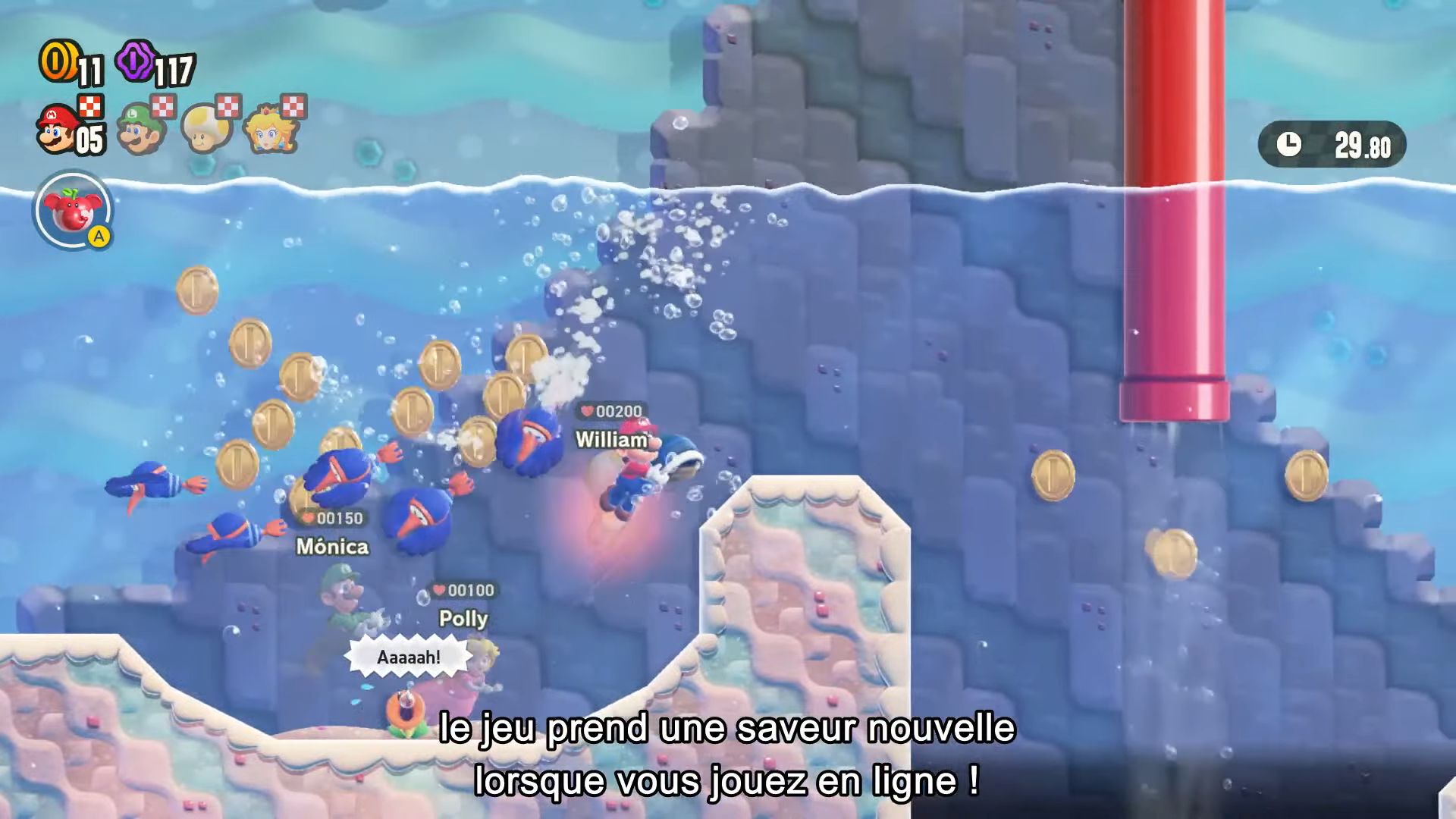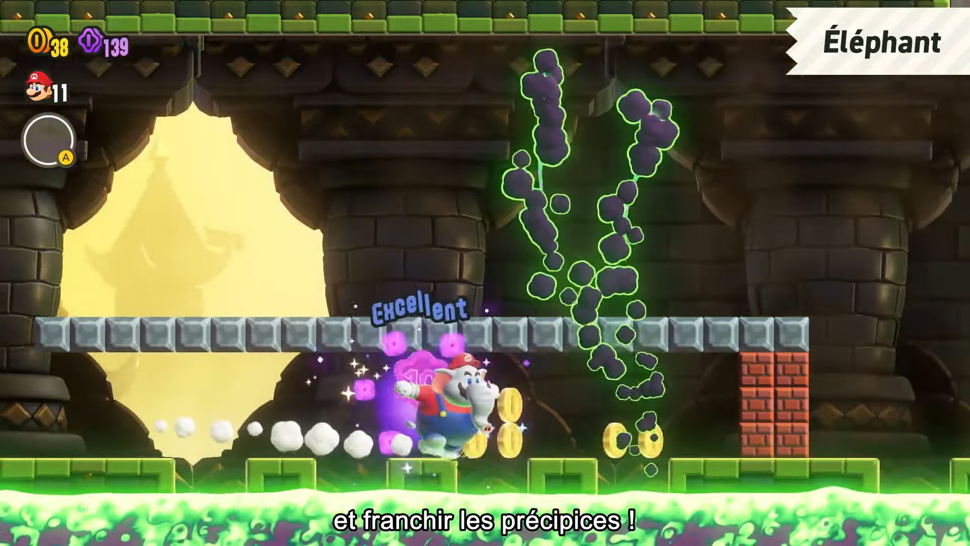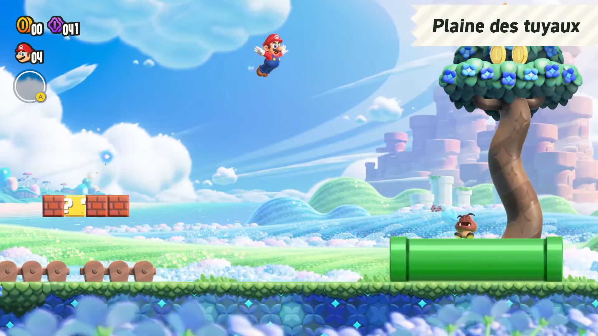 Nintendo a diffusé ce 31 août un Direct entièrement dédié à Super Mario Bros. Wonder, qui comportait une énorme vague de révélations sur le jeu. Ce nouvel épisode introduira de nombreuses nouveautés changeant radicalement la série des Super Mario Bros., ce qui permet aussi de mieux comprendre pourquoi Nintendo a choisi de ne pas en faire un « New » Super Mario Bros., puisqu’ici, c’est le sous-titre « Wonder » qui est important. Nous avons regroupé toutes les informations dans la suite de l’article et vous retrouverez également des vidéos de gameplay issues des sites japonais, américain et européen ainsi que de nombreuses images supplémentaires. Le choix d’un Direct consacré au jeu à cette période peut également s’expliquer par la possibilité qu’un Direct général soit diffusé au cours du mois de septembre, afin que de la place puisse être libérée pour la présentation d’autres titres. La sortie de Super Mario Bros. Wonder est toujours fixée au 20 octobre 2023. Les précommandes avaient déjà commencé au prix de 59,99 € pour la version dématérialisée, l’estimation pour l’espace nécessaire étant de 4 500 Mo. Mais avant cela, Nintendo sortira une Switch – Modèle OLED édition Mario (couleur rouge) dès le 6 octobre prochain. Elle n’inclura pas Super Mario Bros. Wonder. Cette console aura quelques particularités au niveau de son design, comme la silhouette de Mario qui sera visible au dos de la station d’accueil avec des pièces cachées.