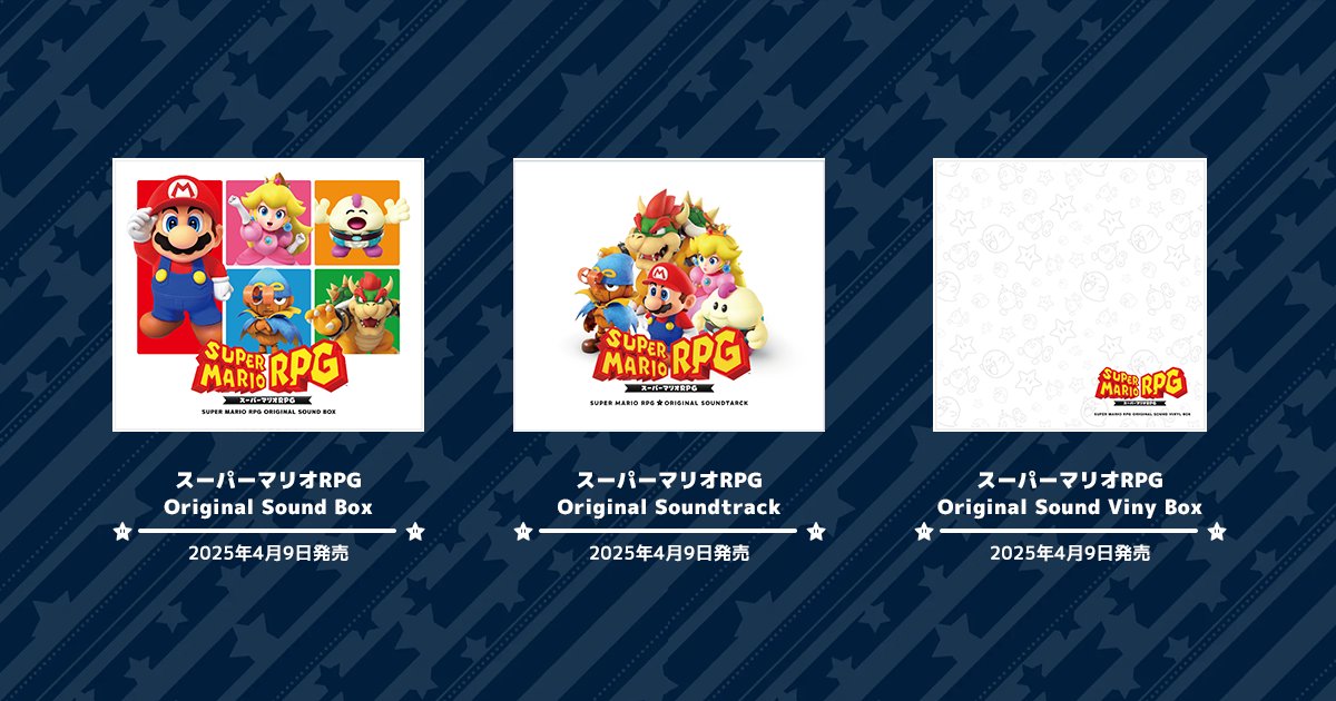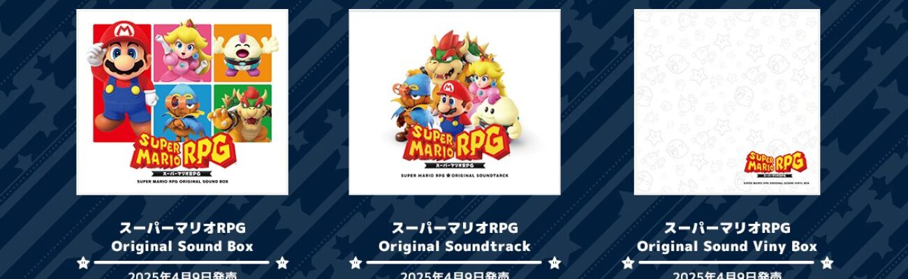 Square Enix Music a annoncé l’arrivée de la bande originale de Super Mario RPG composée par Yoko Shimomura au format physique, sous la forme de trois éditions qui seront disponibles le 9 avril 2025 au Japon, 29 ans après l’album de l’OST du jeu d’origine sur SNES (paru le 25 mars 1996 au Japon). Il y aura donc l’album Super Mario RPG Original Sound Box au prix de 8 250 yens, qui comprendra quatre disques contenant l’ensemble des musiques de la version Nintendo Switch réarrangées mais aussi tous les morceaux du jeu d’origine sur SNES. Square Enix Music indique que les morceaux de la version SNES ont été remastérisés par rapport à ceux inclus dans l’album sorti en 1996. Les 61 musiques de la version Switch seront réparties dans les deux premiers disques, tandis que les 61 morceaux du jeu d’origine seront inclus dans les deux autres disques. Le deuxième album est simplement intitulé Super Mario RPG Original Soundtrack et contiendra uniquement les musiques réarrangées de la version Switch sur deux disques, au prix de 3 850 yens. Enfin, le troisième album est un vinyle 4 LP coûtant 17 600 yens, appelé Super Mario RPG Original Sound Vinyl Box, qui comprendra toutes les musiques réarrangées de la version Switch. Il est possible d’écouter des extraits de certaines pistes (les versions réarrangées et celles d’origine) sur la page officielle qui a ouvert ses portes à cette adresse.