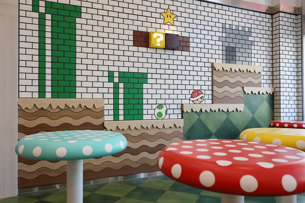 Le parc proposera des boutiques de merchandising qui vendra des produits originaux notamment au niveau des boissons et des repas. Il y aura par exemple un espace Mario Café (qui a déjà ouvert ses portes depuis le mois dernier) où les clients pourront consommer des spécialités issues du monde Nintendo :