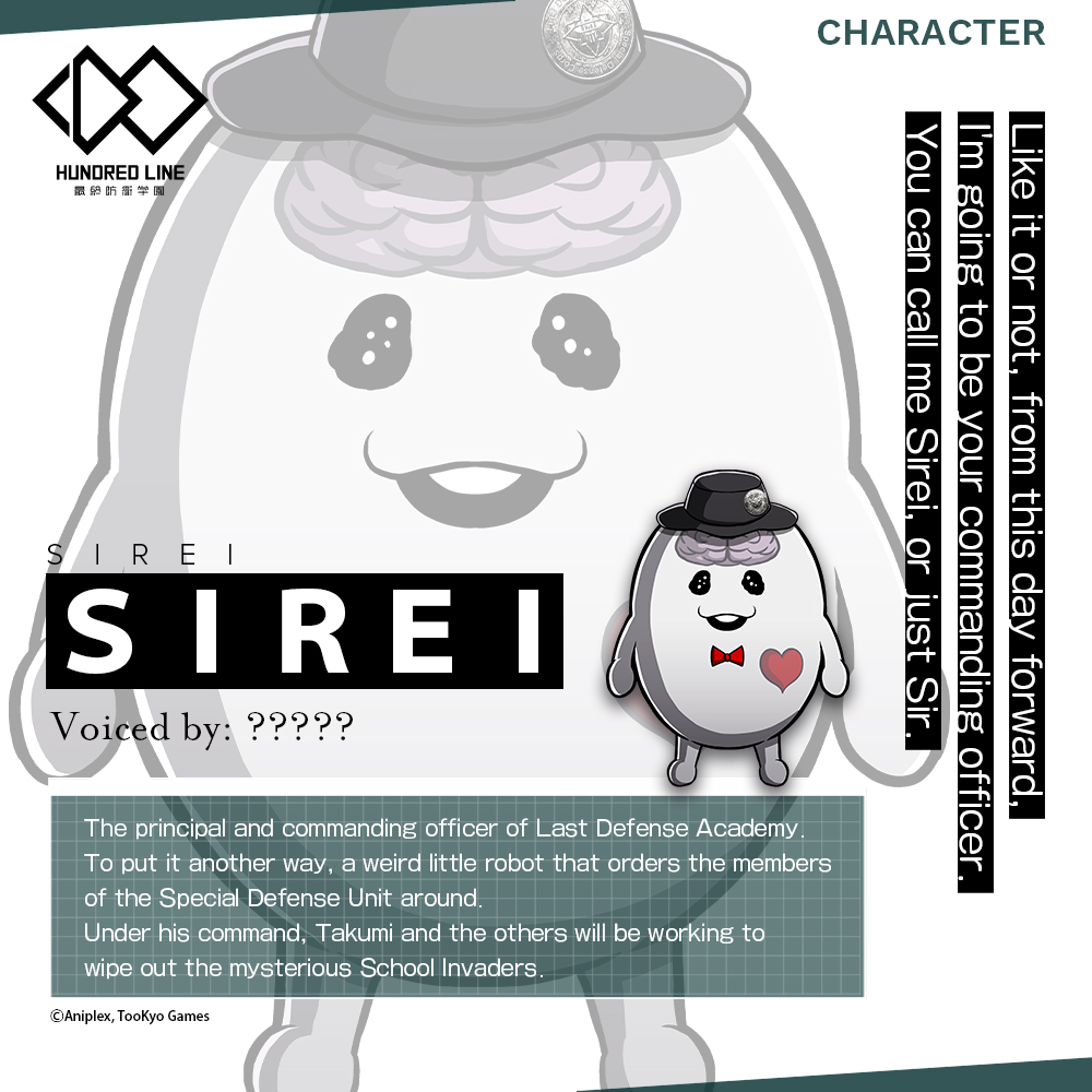 Deux mois après l’annonce de The Hundred Line -Last Defense Academy-, Too Kyo Games avait diffusé un message spécial de Kotaro Uchikoshi, qui est donc en charge de la réalisation et de l’écriture du scénario du jeu (avec Kazutaka Kodaka), sur Twitter. Il raconte qu’il a écrit certaines parties de l’histoire et qu’il est en charge de la direction du scénario pour ce titre. Il revient aussi sur l’annonce du jeu en juin dernier et sur le soutien des fans. Uchikoshi rappelle aussi que The Hundred Line -Last Defense Academy- est le premier titre original que proposera Too Kyo Games. Cela signifie visiblement que son traitement sera différent par rapport aux autres titres du studio. Cependant, bien que Too Kyo Games s’occupe de la planification de cette œuvre, le studio collabore avec une autre société de développement, Media.Vision, tandis qu’Aniplex est en charge de l’édition. Uchikoshi continue en disant que The Hundred Line -Last Defense Academy- s’appuie sur les concepts du « désespoir » comme Danganronpa et des « situations extrêmes » comme Zero Escape. Il est donc sûr que les personnes qui ont aimé les jeux de ces séries s’amuseront avec ce nouveau titre. Des informations sur The Hundred Line -Last Defense Academy- ont déjà été communiquées, mais Uchikoshi semble teaser des révélations importantes pour un avenir plus ou moins proche. Il dit que l’information concernant le genre de jeu qu’est The Hundred Line -Last Defense Academy- sera partagée dans le futur sur le site officiel. Uchikoshi parlait également d’un sondage lancé par Aniplex. Cependant, il était impossible de répondre au questionnaire en sélectionnant l’Europe.