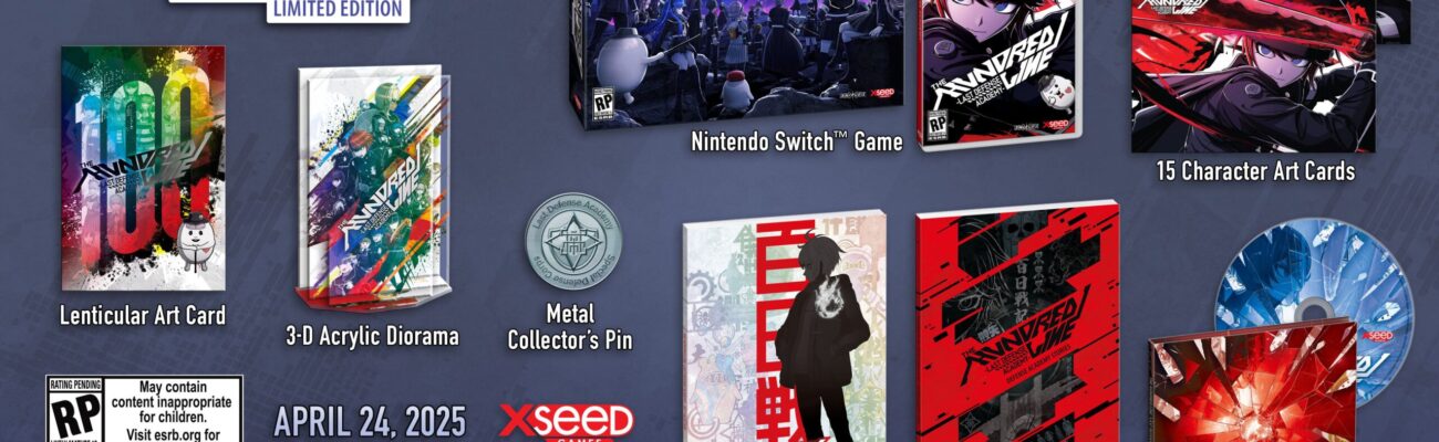 The Hundred Line -Last Defense Academy-, le projet « Extreme x Despair » de Too Kyo Games développé en collaboration avec Media.Vision et réalisé par Kazutaka Kodaka et Kotaro Uchikoshi, sera disponible précisément le 23 avril 2025 sur Nintendo Switch en Europe et le 24 avril sur PC via Steam. En Amérique du Nord, la sortie est fixée au 24 avril. La date de sortie du 24 avril avait déjà été annoncée lors du Nintendo Direct : Partner Showcase japonais du 27 août dernier, mais elle concernait uniquement le Japon. Désormais, on sait donc que le jeu sortira partout presque en même temps. En plus de la date occidentale, il a été annoncé que XSEED Games publiera des éditions physiques en version américaine sur Switch, également le 24 avril. Il y aura une édition standard à 59,99 $ ainsi qu’une édition limitée coûtant 99,99 $, qui comprendra un exemplaire du jeu, un artbook avec des illustrations des artistes Rui Komatsuzaki et shimadoriru, un CD avec 10 musiques de The Hundred Line -Last Defense Academy- produites par le compositeur/arrangeur Masafumi Takada, un diorama en acrylique avec les personnages principaux, un pin’s en métal Last Defense Academy, une carte lenticulaire illustrée, un exemplaire imprimé de la nouvelle The Hundred Line et 15 cartes illustrées représentant les personnages. Il sera possible de les acheter sur certaines boutiques et le Marvelous USA Store. Pour le moment, nous ne savons pas s’il y aura des éditions physiques en version européenne.