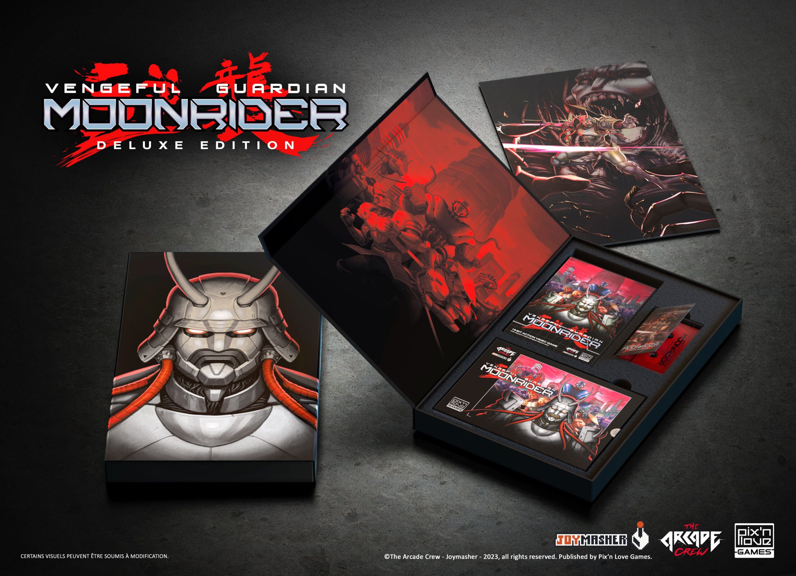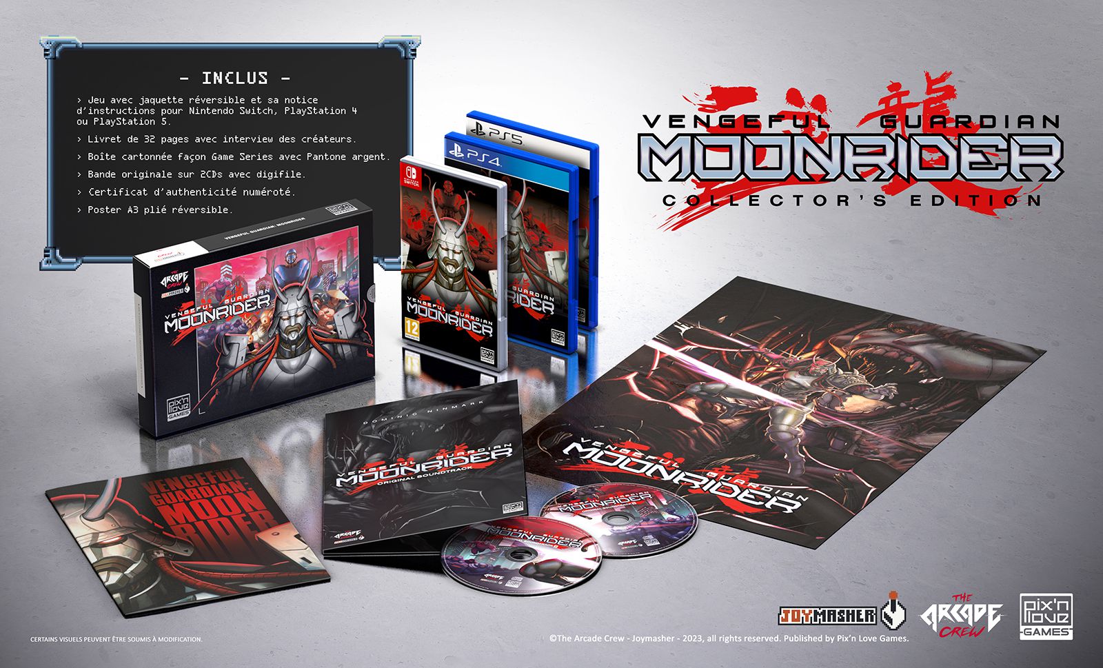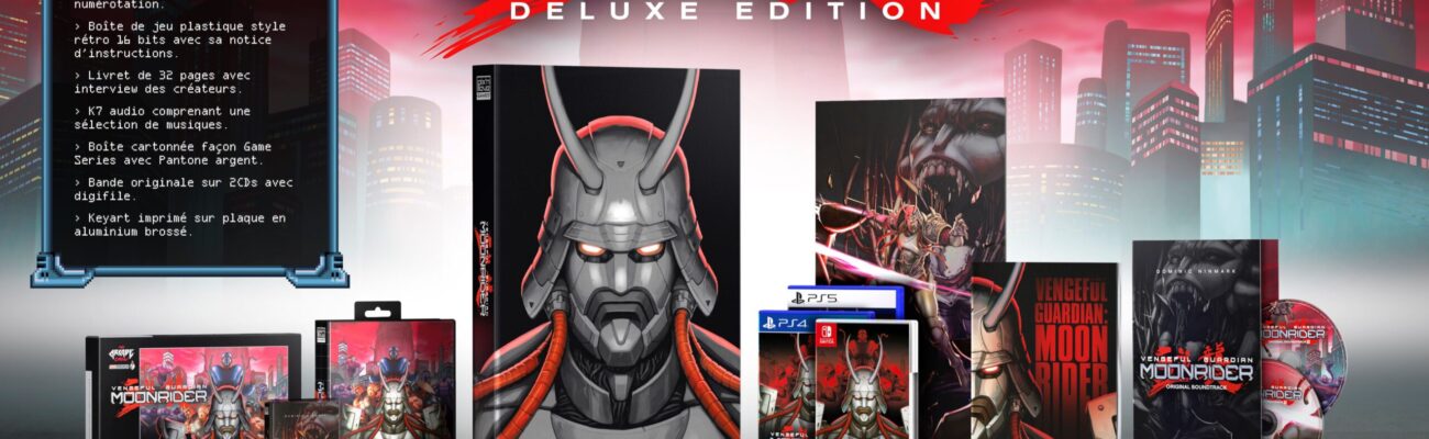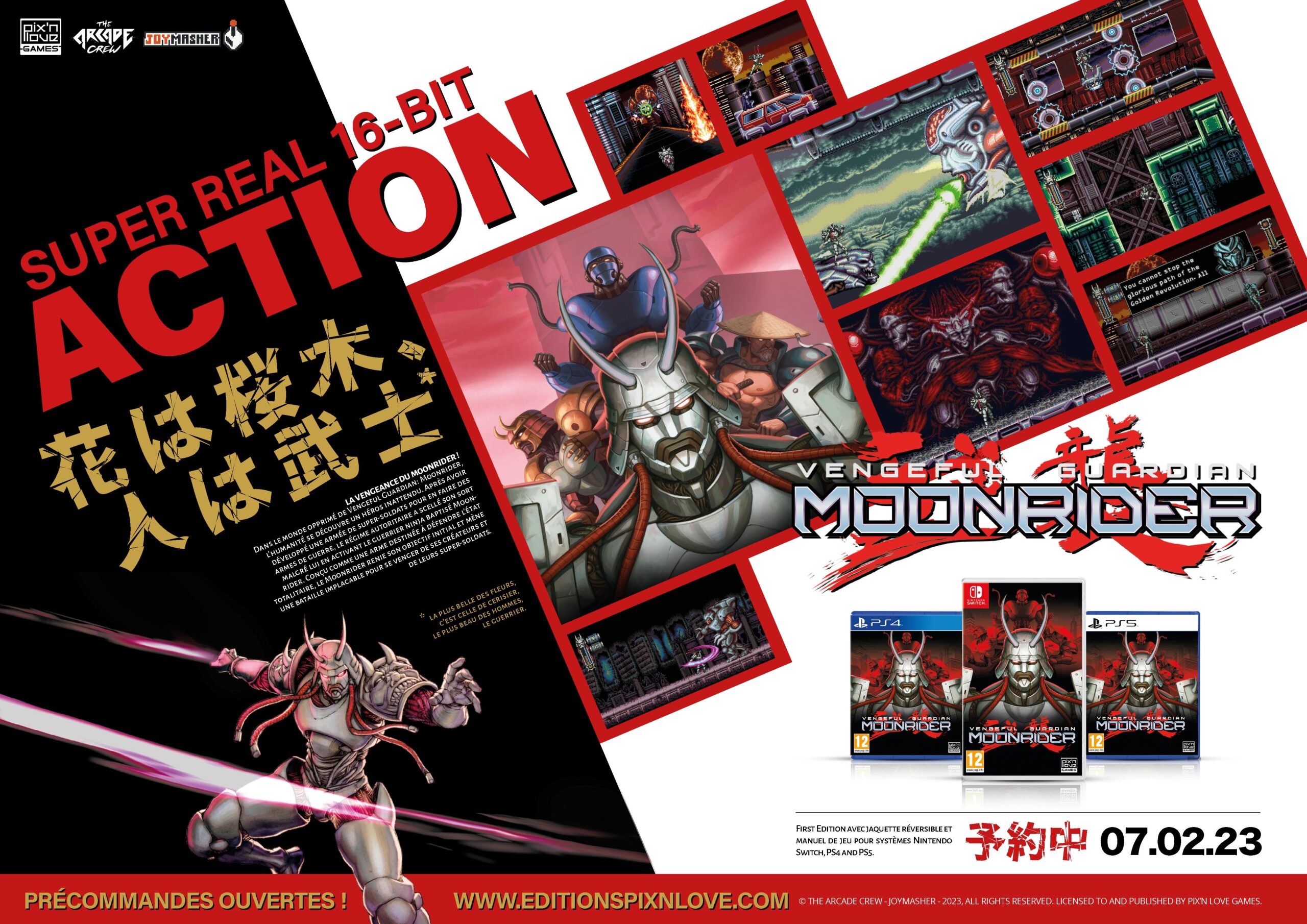 C’était l’une des pépites de ce début d’année, Vengeful Guardian : Moonrider, la dernière création du studio brésilien JoyMasher (Oniken, Odallus : The Dark Call, Blazing Chrome…), va avoir droit à trois éditions physiques différentes sur Nintendo Switch, PlayStation 4 et PS5. Comme ce fut le cas pour Blazing Chrome, elles sont proposées par la boutique française Pix’n Love en version européenne. Il est d’ores et déjà disponible de les précommander, les éditions sur les trois plateformes étant toutes listées à cette adresse. L’expédition est prévue pour l’été 2023. À noter que chaque édition a une limite d’exemplaires pour les trois supports (bien sûr, c’est pour la version Switch qu’il y en a le plus).