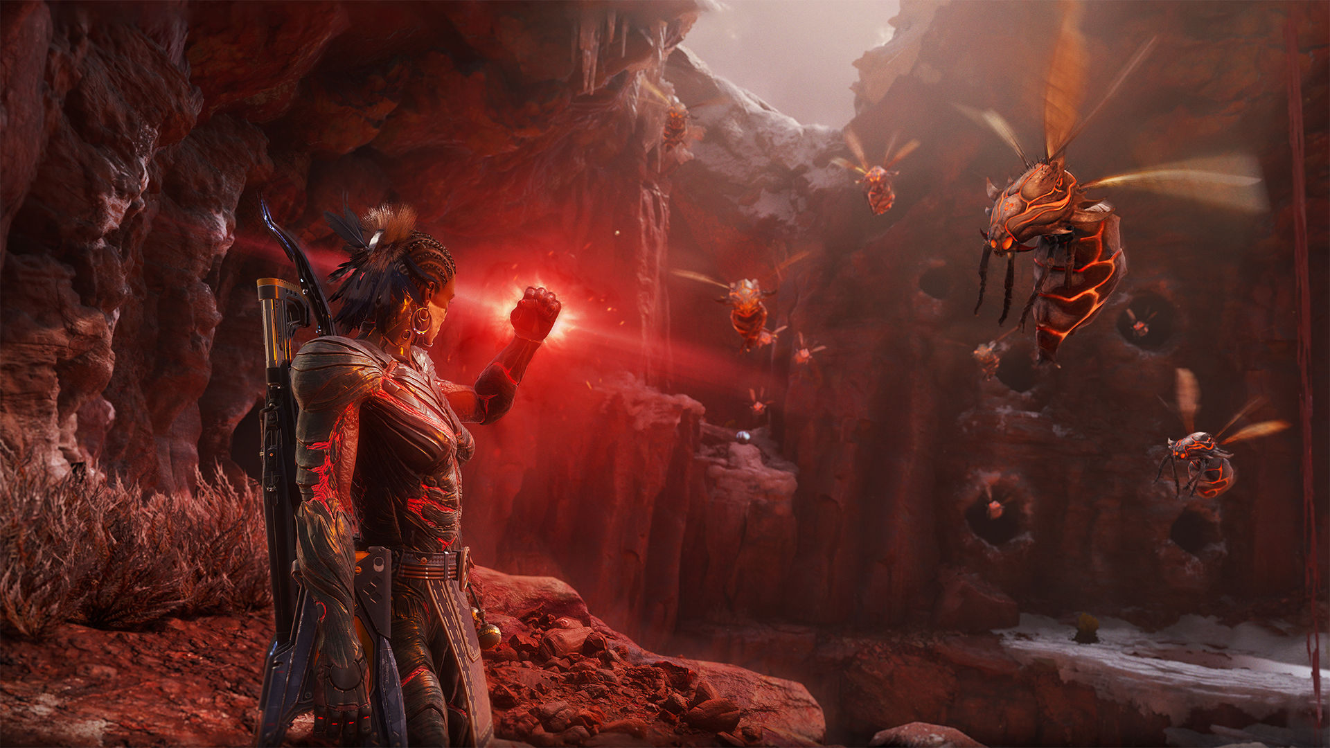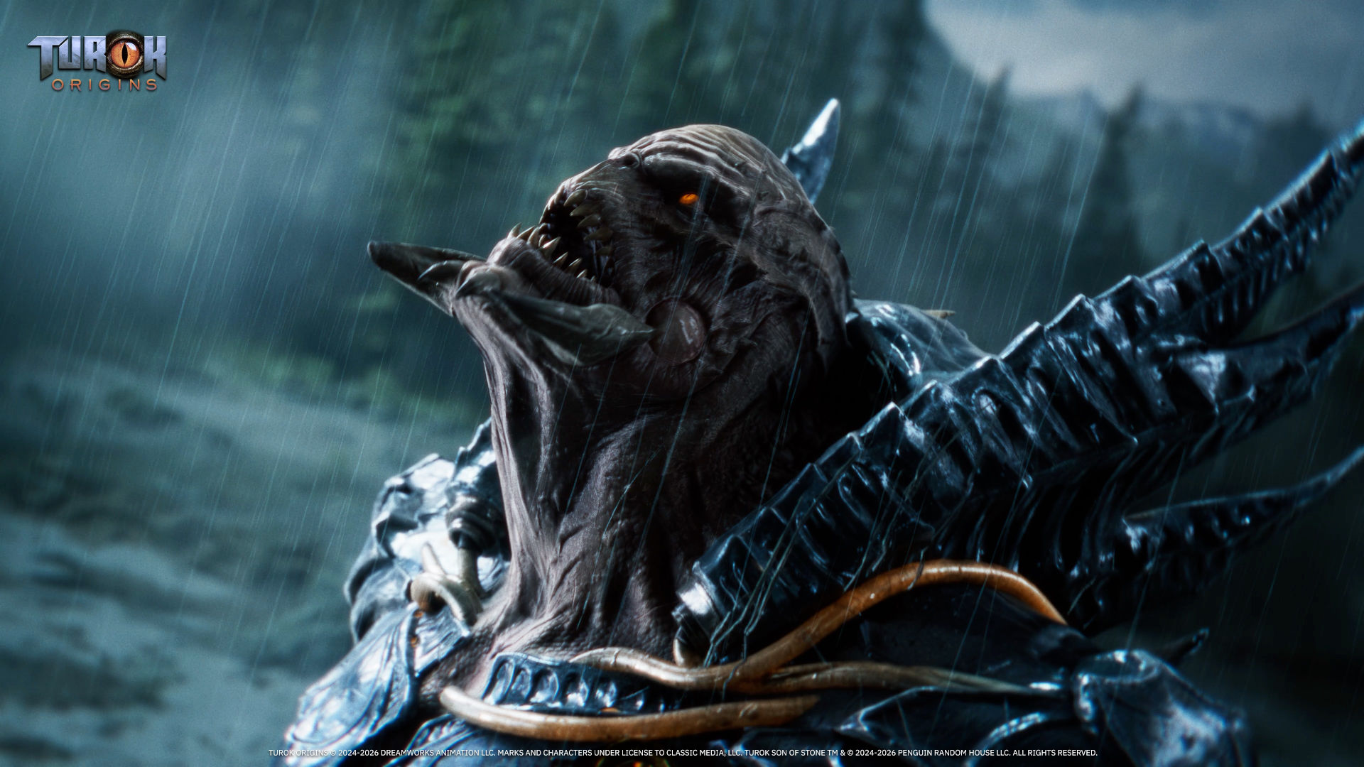 Avec des affrontements qui se dérouleront aussi bien au sol que dans les airs, dans des marécages, des grottes ou encore dans divers autres des environnements ouverts, Turok : Origins offrira également des boss conçus pour pousser les joueurs dans leurs retranchements. Pour survivre, il faudra alterner attaques de mêlée, compétences spéciales et un arsenal futuriste particulièrement fourni qu’il faudra développer. Justement, l’équipement occupera visiblement une place centrale dans la progression. Fusils plasma, snipers, arcs, fusils à pompe ou encore armes à énergie : l’arsenal pourra être débloqué puis amélioré au fil de l’aventure afin de s’adapter aux menaces rencontrées. Une mécanique originale arrive d’ailleurs dans la saga avec l’extraction d’ADN sur les ennemis vaincus et dans l’environnement. Ces ressources permettront de débloquer des pouvoirs capables de faire évoluer la combinaison du héros en temps réel, offrant de nouvelles compétences et un avantage lors des combats.