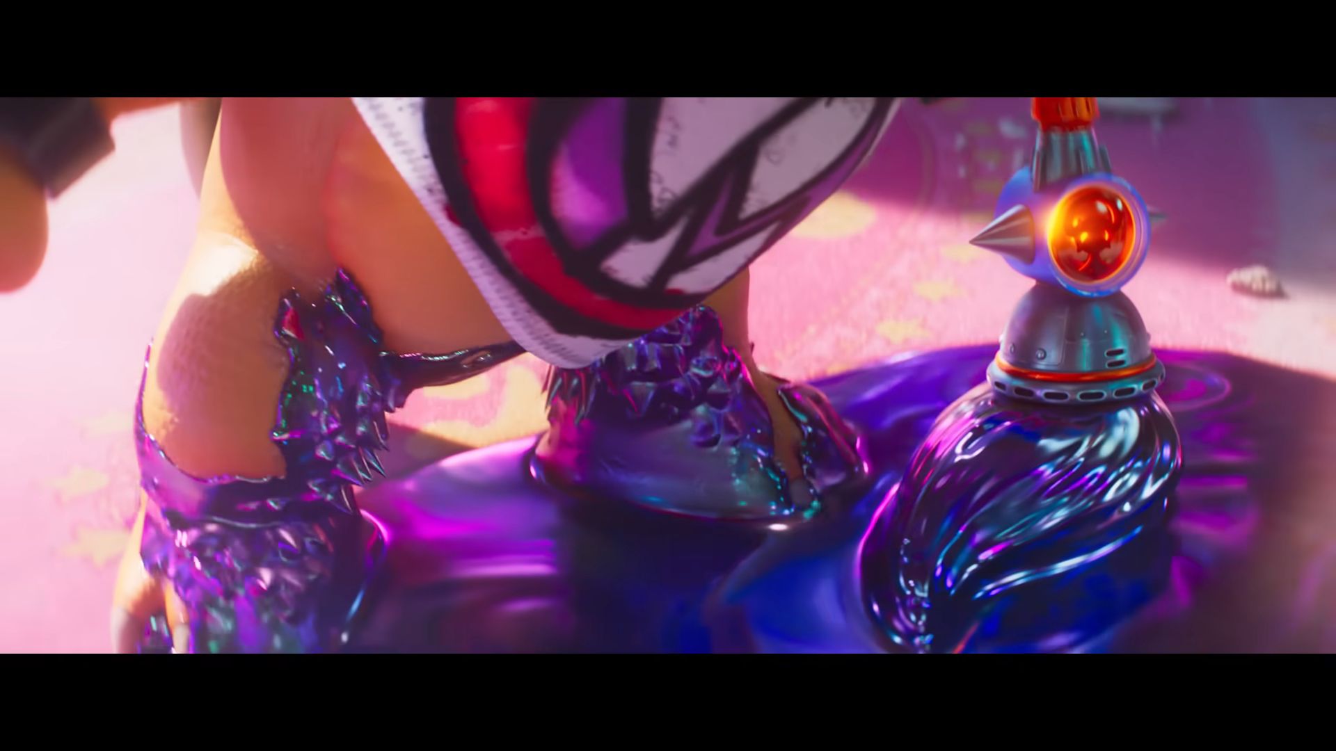 Miyamoto expliquait l’apparition de Bowser Jr. dans le film par le fait que Bowser a rapetissé après avoir mangé un mini-champi à la fin du premier film. On constatait donc que Super Mario Galaxy Le Film est une suite directe de Super Mario Bros. – Le Film. Par la suite, Miyamoto a laissé Meledandri présenter les nouveaux membres du casting, qui sont donc Benny Safdie pour Bowser Jr. et Brie Larson pour Harmonie.