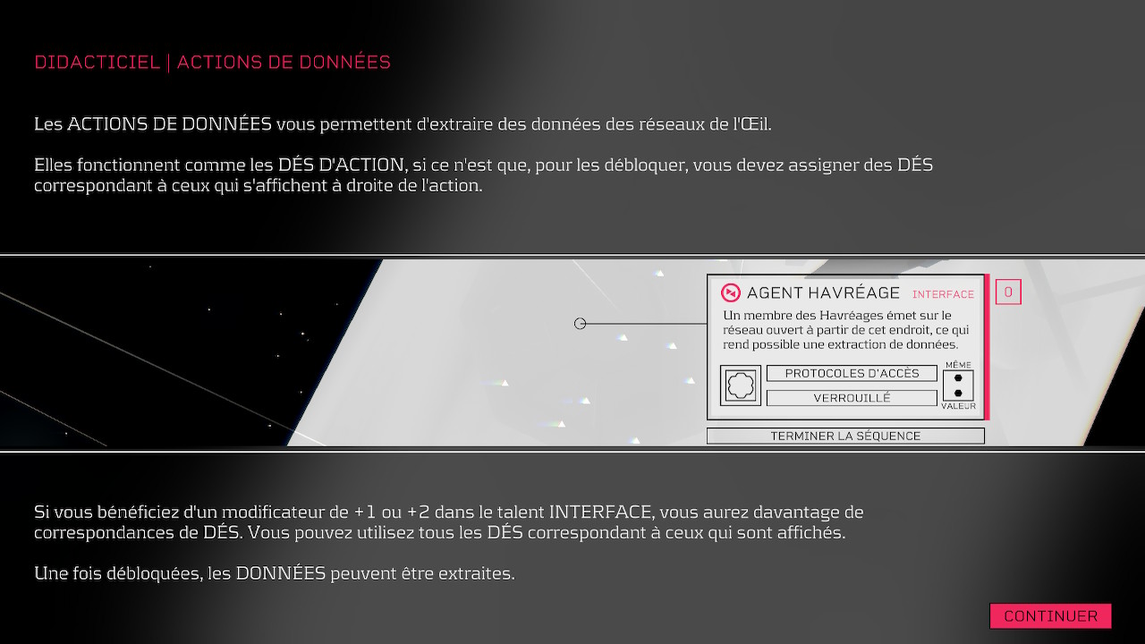 Avec le temps, vous apprendrez à utiliser vos dés pour pirater le Cloud de la station et ainsi accéder à des décennies de données numériques, découvrir de nouvelles zones et percer des secrets bien gardés. C’est là votre pouvoir unique en son genre et, grâce à lui, vous pourrez changer votre avenir. Secrets corporatifs, IA rebelles et données perdues attendent ceux qui oseront plonger au cœur des réseaux de la station.