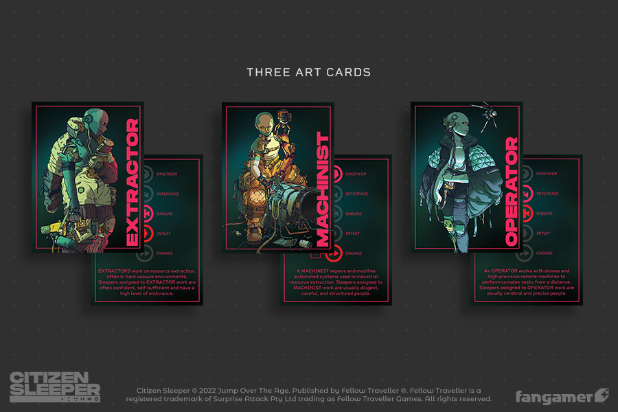 Citizen Sleeper a été développé en solo par Gareth Damian Martin au sein de son studio Jump Over the Age, mais le character design et les illustrations des personnages (ainsi que le visuel principal) ont été réalisés par l’artiste Guillaume Singelin, dont nous avions déjà parlé lors de son implication sur le miaoutroidvania Gato Roboto. Récemment, l’illustrateur a été interviewé par le site ActuGaming, justement pour parler de son travail sur Citizen Sleeper à l’occasion de l’ajout de la traduction française. De même, Gareth Damian Martin a accordé une interview au site Point’n Think. De plus, les musiques ont été composées par Amos Roddy, connu pour son travail sur les jeux In Other Waters, Kingdom, The Wild at Heart et Cloud Gardens. La bande originale complète du jeu est disponible sur Spotify et il est aussi possible de se les procurer sur Steam, GOG et Epic Games Store avec également un artbook contenant les œuvres de Gareth Damian Martin et Guillaume Singelin. Toute cette petite équipe est également de retour pour Citizen Sleeper 2 : Starward Vector.