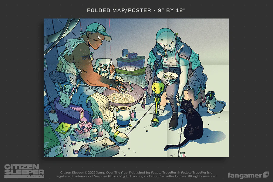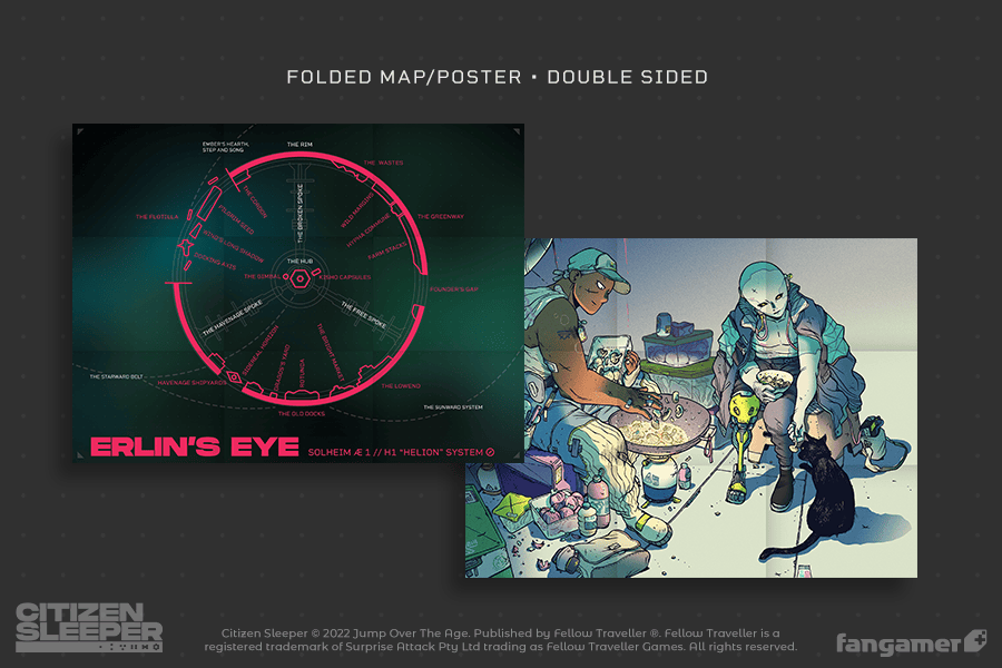 Disponible en téléchargement sur consoles et PC le 5 mai 2022 (le 31 mars 2023 sur PlayStation 4 et PS5), Citizen Sleeper, un RPG narratif inspiré des jeux de rôle sur plateau que l’on doit à Gareth Damian Martin (designer et scénariste qui a créé le jeu d’aventure et d’exploration atmosphérique In Other Waters et le zine Heterotopias), va avoir droit à une édition physique exclusivement sur Nintendo Switch. C’est Fangamer qui en est en charge, avec Maximum Entertainment – France à la distribution chez nous. Cette édition physique, dont le prix de base est de 35 €, comprendra, en plus du jeu sur la cartouche, trois cartes reprenant des illustrations de l’artiste Guillaume Singelin, un poster double-face, une planche d’autocollants et une jaquette intérieure illustrée. Pour rappel, Citizen Sleeper avait reçu, le 1er février dernier, une mise à jour ajoutant ajoutant des traductions en français, japonais et chinois simplifié. Le contenu de cette mise à jour sera évidemment inclus d’emblée dans la carte de jeu de l’édition physique, sans téléchargement supplémentaire. Riotloc Studio était en charge de la localisation, avec Eric Holweck, Jonathan Pierre, Pierre Quelquejeu et Samantha Germaneau à la traduction, ainsi que Bérangère Holweck à la relecture pour la version française. Nous avions inclus plusieurs captures d’écran dans notre article dédié.