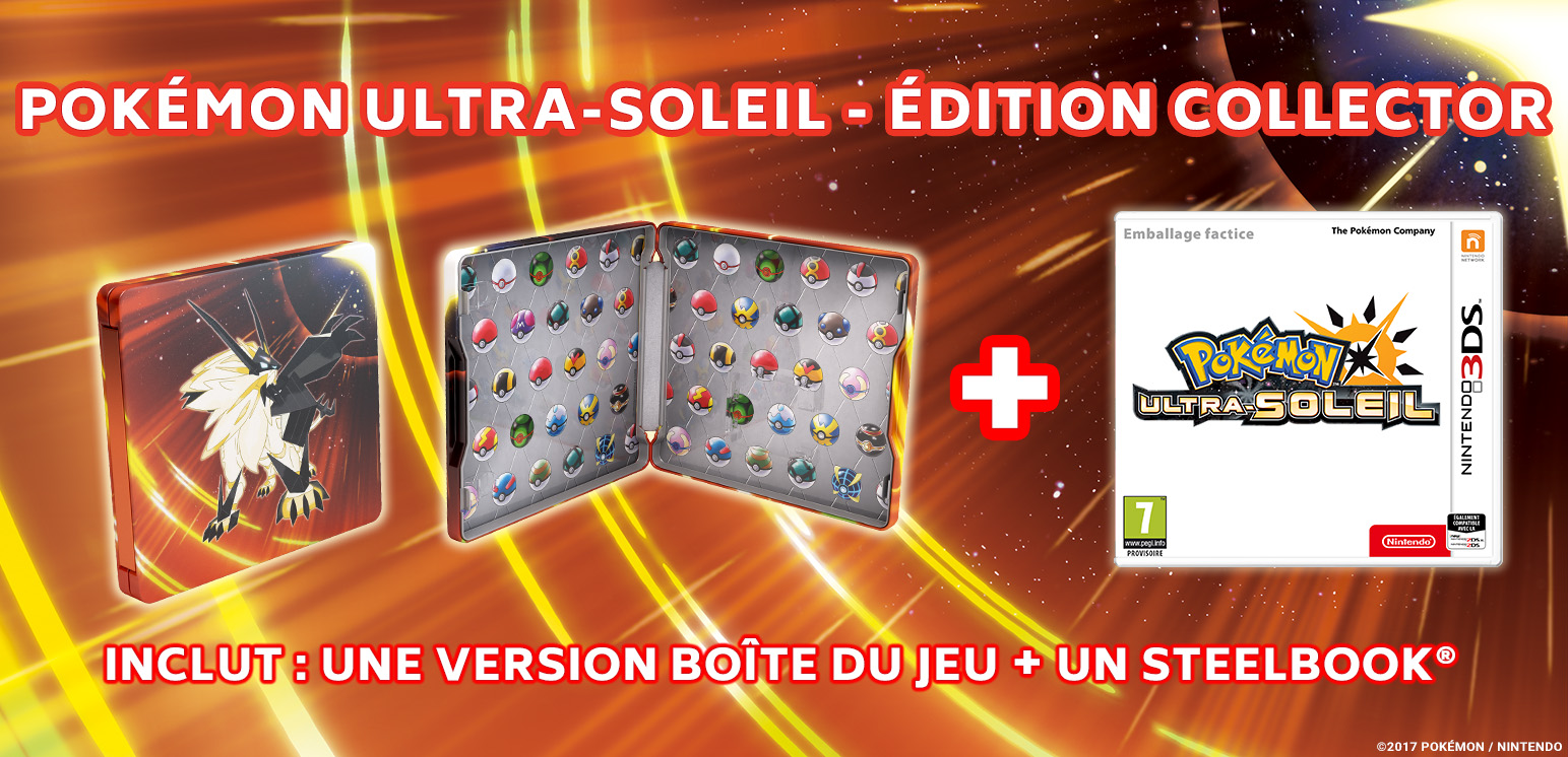 – Pokémon Ultra-Soleil – Édition collector : contient une version physique de Pokémon Ultra-Soleil et un SteelBook