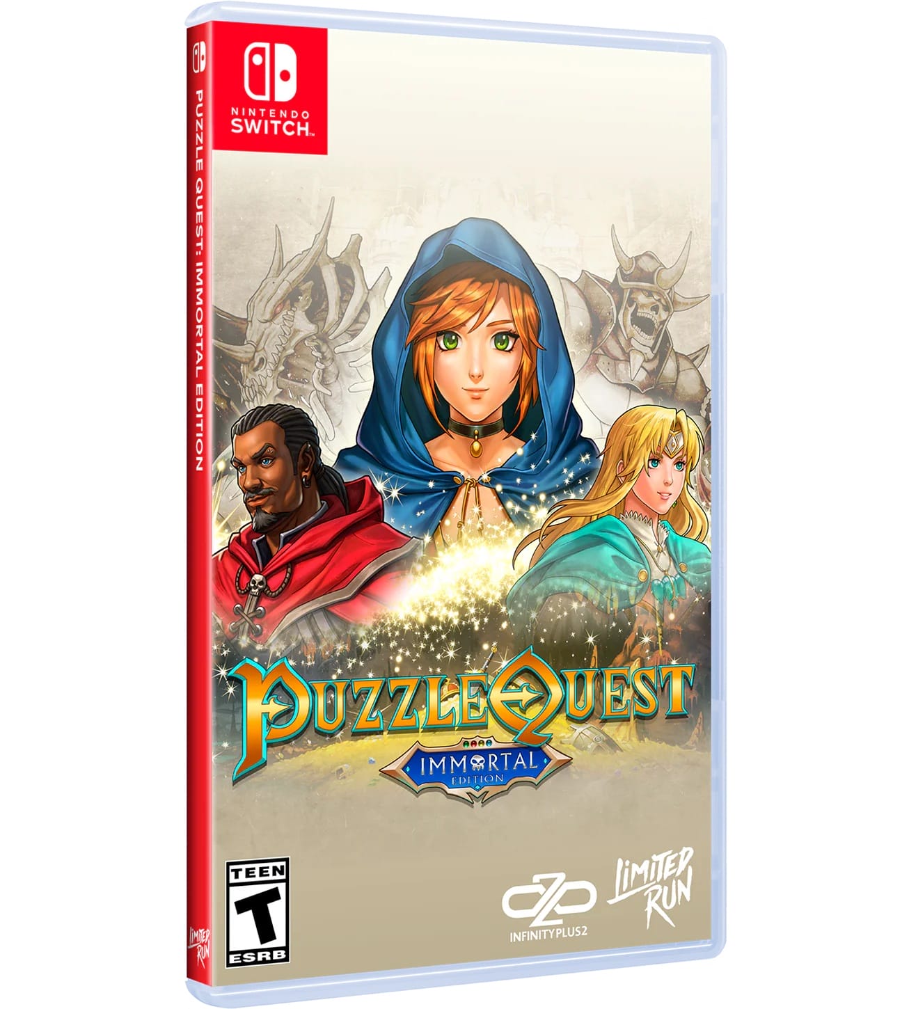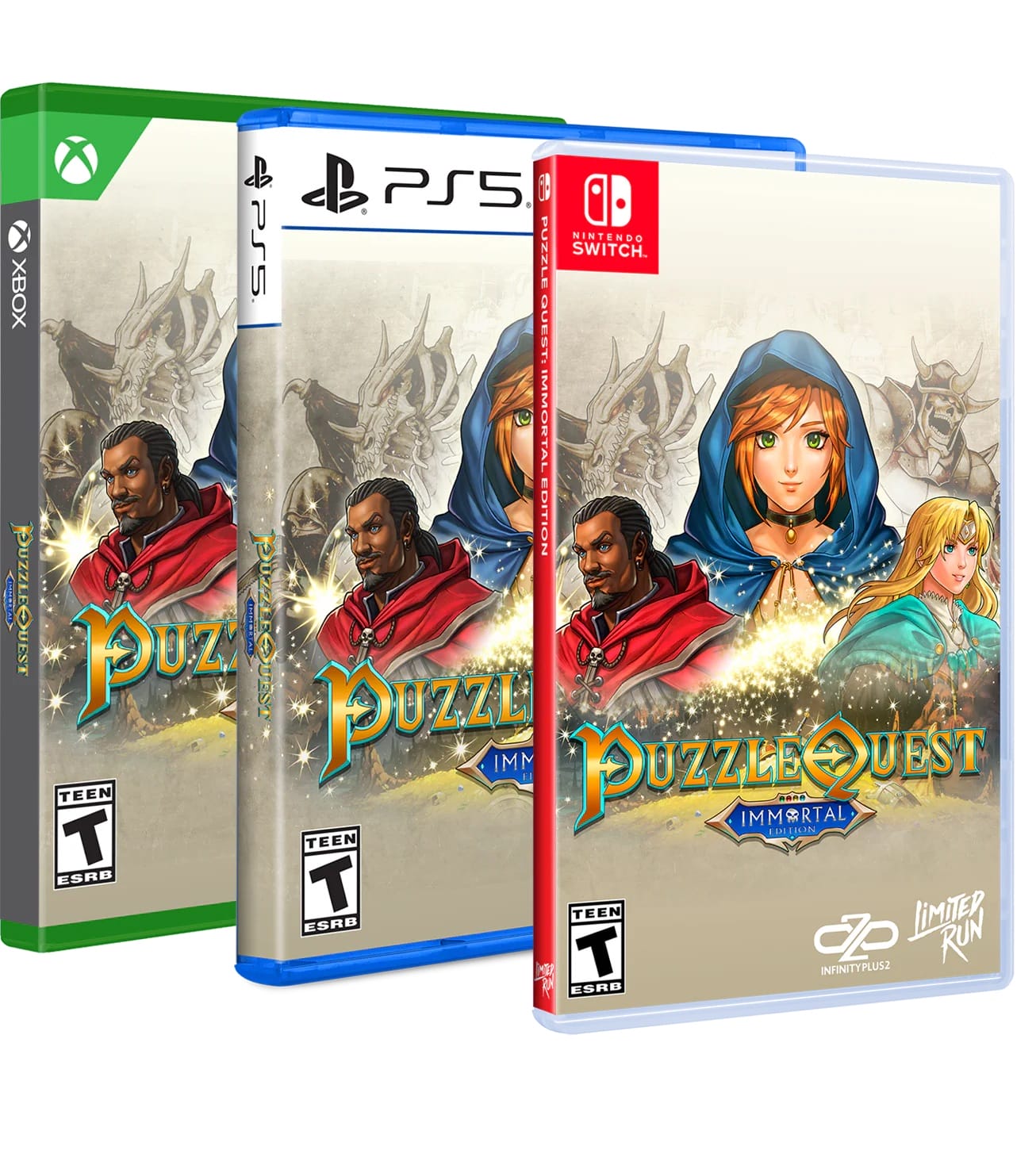 Sorti en téléchargement le 18 septembre 2025, Puzzle Quest : Immortal Edition profite aussi d’une version physique sur Nintendo Switch, PlayStation 5 et Xbox Series X qu’il est possible de précommander en exclusivité sur la boutique de Limited Run Games jusqu’au lundi 12 janvier 2026 à 05:59 (heure française). Elle coûte 34,99 $ (contre 14,99 € pour sa version dématérialisée) et son expédition est prévue entre le 1er avril et le 30 juin 2026. Un livret est également inclus en plus du jeu sur la cartouche / le disque. La version téléchargeable était sortie sur les mêmes supports ainsi que sur PlayStation 4, Xbox One et PC via Steam, Epic Games Store et GOG.