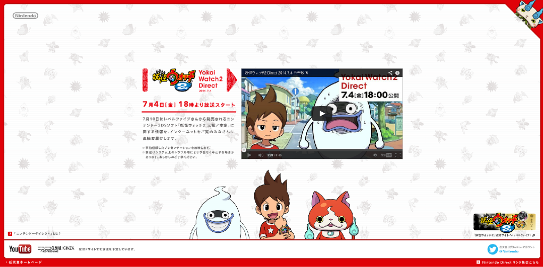 Youkai Watch 2 est prévu pour le 10 juillet au Japon. Ce titre de Level-5 sera proposé en deux versions différentes (Ganso et Honke) et nous plonge dans l’univers d’un jeune garçon équipé d’une montre habilitant son porteur à voir les créatures spectrales l’entourant, avec de nombreuses nouveautés, et cette fois-ci la possibilité de voyager dans le temps. C’est pour honorer la sortie de cet opus que Nintendo nous gratifie d’un Nintendo Direct, ce vendredi 4 juillet à 11h (heure française), spécialement tourné vers Youkai Watch 2.