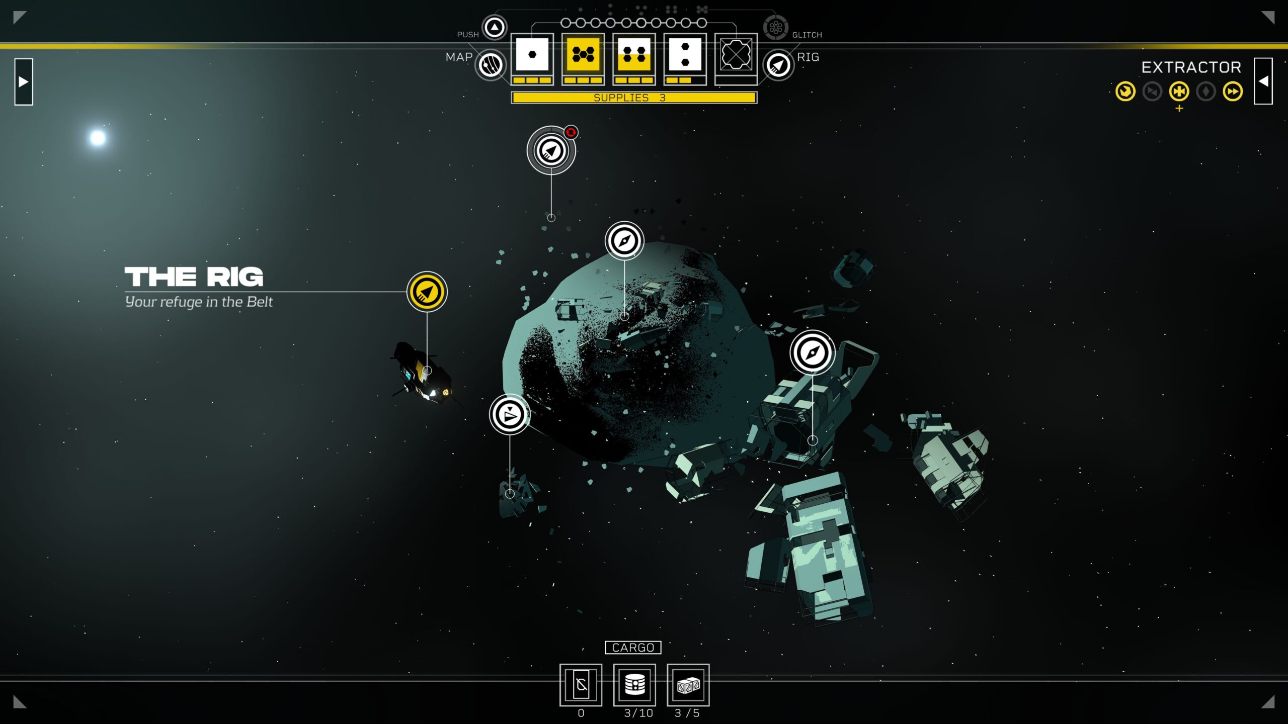 Se dégage ainsi, comme déjà évoqué, un sentiment d’urgence permanent, encore appuyé par la manière dont le titre gère son temps, avec l’autre nouveauté, le compteur de Chasse. Poursuivi dès le départ par Laine, son ennemi tout tracé, le Dormeur voit son compteur de chasse augmenter inlassablement à chaque cycle passé dans une même zone. Si ce compteur atteint son maximum, Laine rattrape sa proie et les événements prennent une tournure que personne n’a envie de connaître. Source de pression encore rajoutée au reste, cette mécanique pose tout son poids sur les décisions à prendre, notamment sur le rapport bénéfice/temps qu’une action va nécessiter. Seule solution pour faire descendre ce compteur, la bougeotte entre les différentes stations, bridée cependant par les ressources en carburant dont le besoin se ressent constamment. C’est aussi de cette manière-là que le jeu pousse à l’exploration dans la mesure du possible en termes de ressources, un autre des principaux pans de cette nouvelle histoire.
