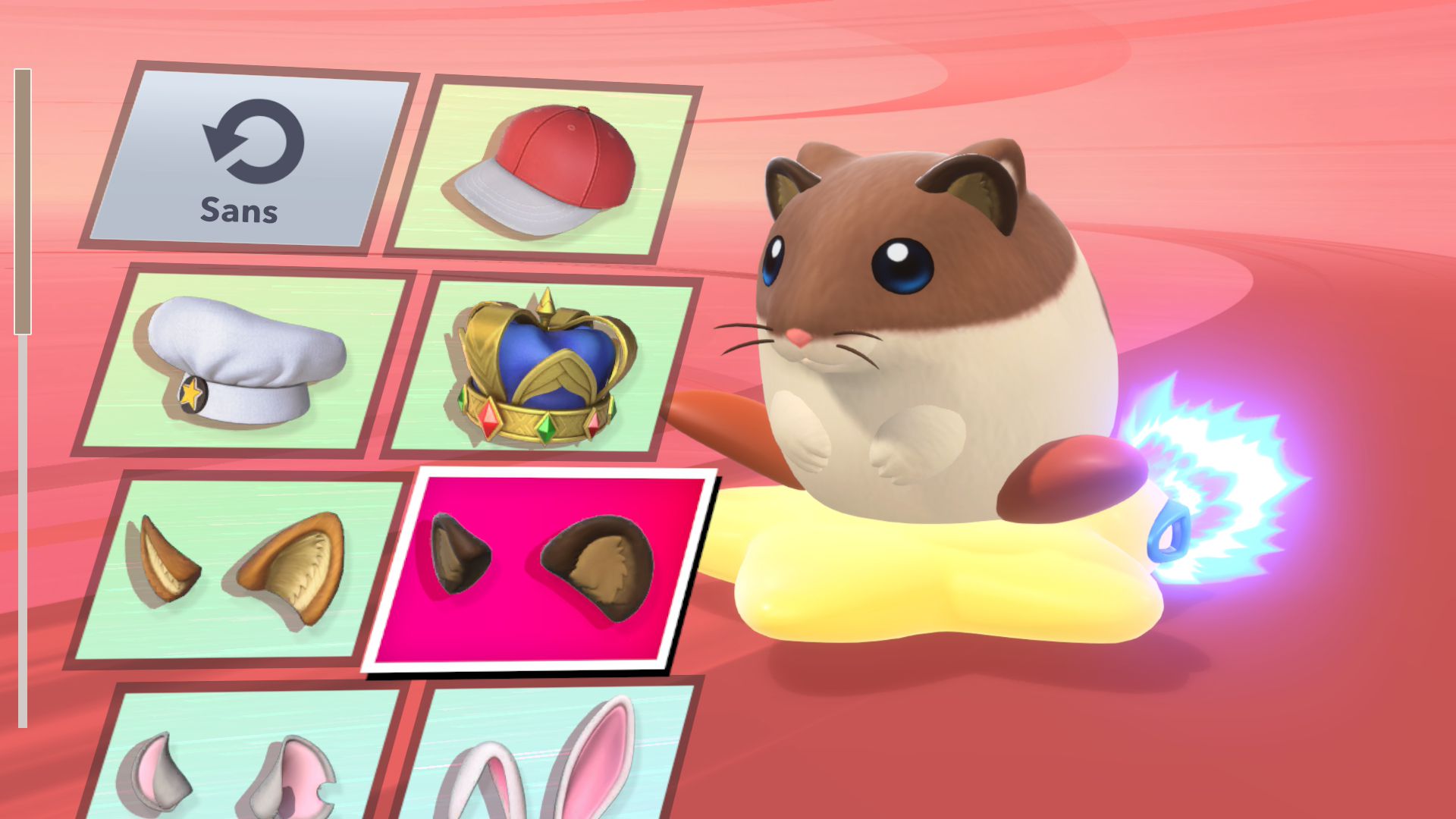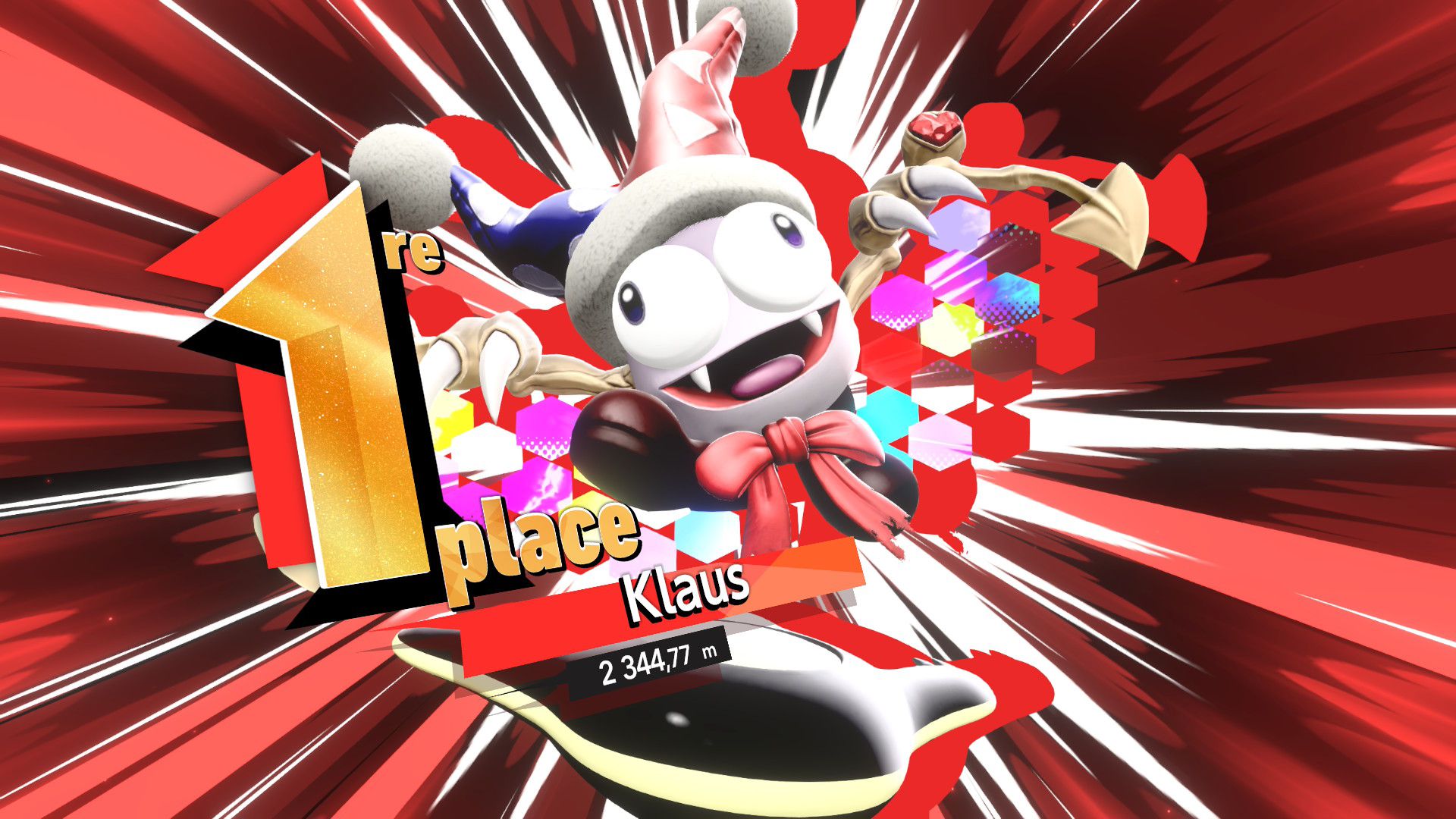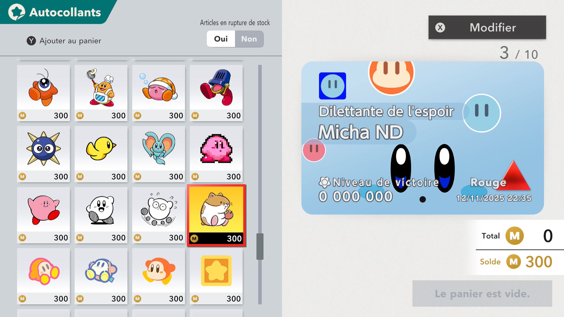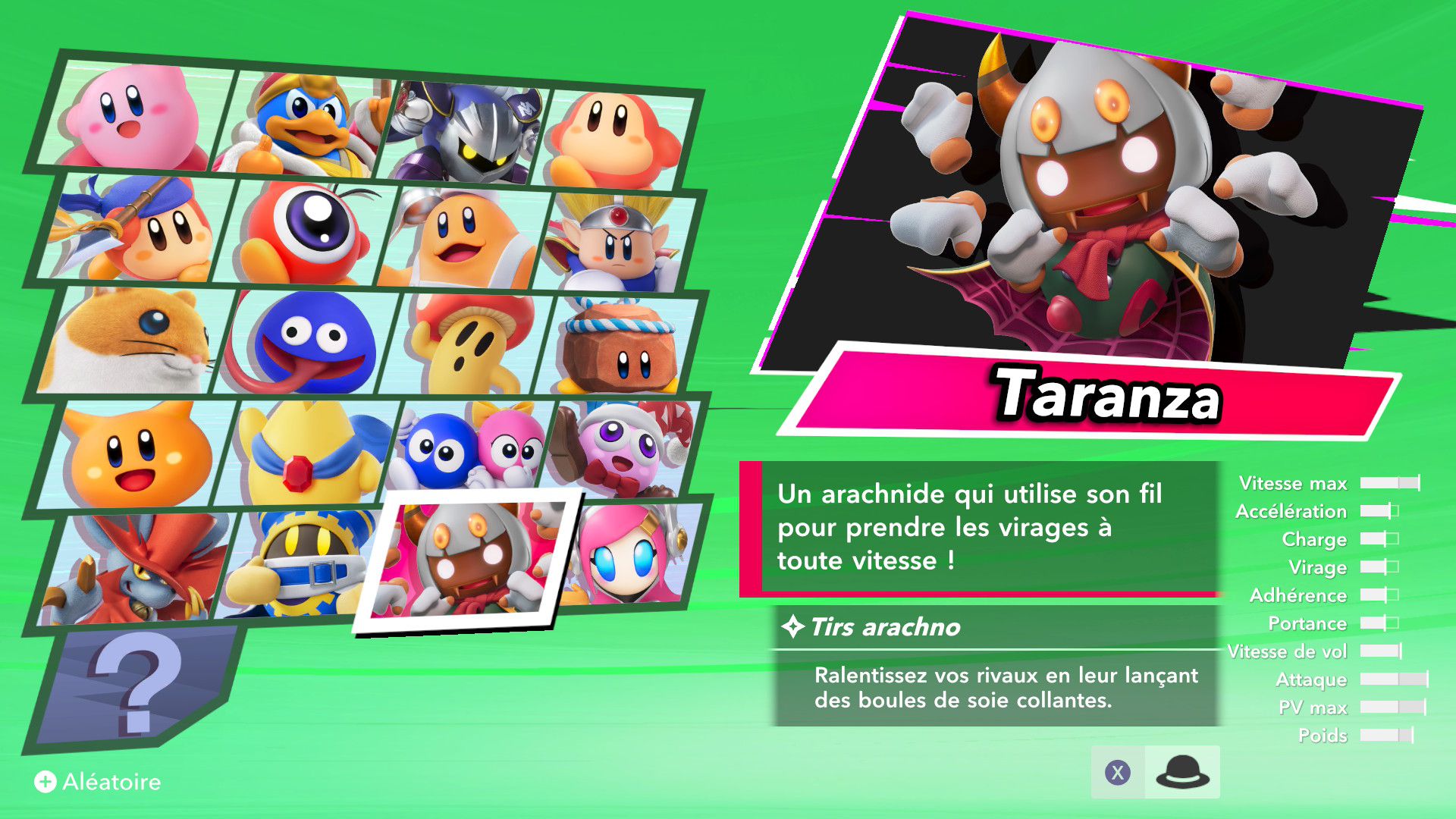 Les autres éléments de Kirby Air Riders sont assez secondaires, mais tout de même amusants. On souhaiterait d’abord parler de la fonction « Mon bolide », elle aussi présentée dans un Direct dédié au jeu. Jusqu’à 100 bolides personnalisés peuvent être créés en choisissant les couleurs, les motifs, les accessoires, les décalcos, les effets et les sons. En découvrant cette fonctionnalité, on peut se dire que les possibilités sont assez limitées. Cependant, on découvre par la suite que de nombreux éléments de personnalisation doivent être débloqués par le biais des missions, et que ceux-ci peuvent offrir encore plus de liberté de création. Étant donné que le jeu était déjà sorti au Japon et en Australie, on a pu d’ailleurs découvrir les premiers bolides partagés par d’autres joueurs et joueuses. Les résultats sont assez impressionnants : on trouve des bolides inspirés de Pokémon (Stari, notamment, ou encore Kyogre), Bob l’éponge (Patrick, évidemment) et bien d’autres. De notre côté, dans le cadre de ce test, nous avons voulu tester un peu les limites de la créativité de cette fonction en essayant de créer un bolide Monado – la fameuse épée légendaire de Xenoblade Chronicles – en choisissant l’étoile vampire. Des personnes arriveront peut-être à faire mieux, grâce à des éléments qu’elles auront réussi à débloquer grâce aux missions, mais le résultat (ci-dessous) est plutôt amusant.