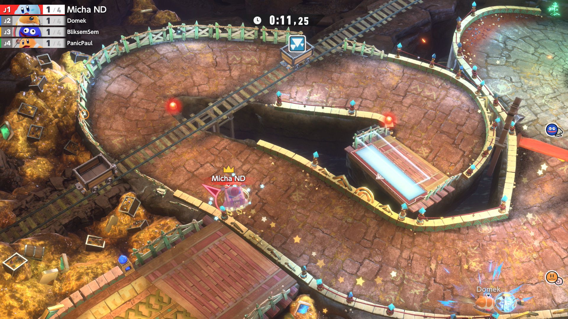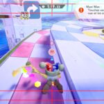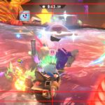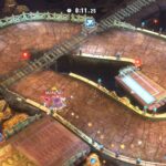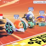 Le mode City Trial représente le plus le chaos ambiant de Kirby Air Riders, d’autant plus qu’il est jouable jusqu’à 16, y compris en ligne. Ici, l’attrait principal est l’épreuve, qui peut durer 3, 4, 5, 6 ou 7 minutes et dont différentes règles peuvent être sélectionnées (la vitesse de jeu, l’affrontement en équipe ou non, le vote du stade, la musique jouée, la présence d’événements…). On peut explorer une ville du monde du jeu, Skaïa, à la recherche d’objets qui permettront d’améliorer notre bolide. En traversant la ville, on peut aussi changer de bolide, détruire ceux des adversaires et plus encore, comme participer aux événements qui auront lieu de temps à autre. Au fur et à mesure que l’épreuve progresse, le jeu peut devenir particulièrement chaotique et difficile à maîtriser. Forcément, dans la démo, ce mode pouvait rebuter, et c’est bien évidemment à prendre en compte. Toutefois, à force de s’entraîner et d’apprendre à maîtriser chaque bolide et certains éléments de gameplay comme la pression, ce mode devient surtout amusant, voire hilarant. Selon les règles sélectionnées, à la fin de l’épreuve, on affronte le stade. Ce dernier est constitué de différents défis qui consistent à battre des ennemis, à finir une course le plus vite possible, à toucher des panneaux pour gagner des points… Certains sont plus corsés que d’autres, mais il faut savoir que le stade embarque un système de vote. En effet, les stades sont généralement sélectionnés au hasard et s’il y a 16 participants, les chances de victoire ne seront que de 1 sur 16. Par ailleurs, certains stades seront recommandés selon les spécificités de notre bolide, et les participants feront leur choix parmi les quatre stades proposés. Cependant, personne ne saura qui a choisi quoi avant le coup d’envoi. Le jeu prend donc ici une dimension assez stratégique plutôt réussie.