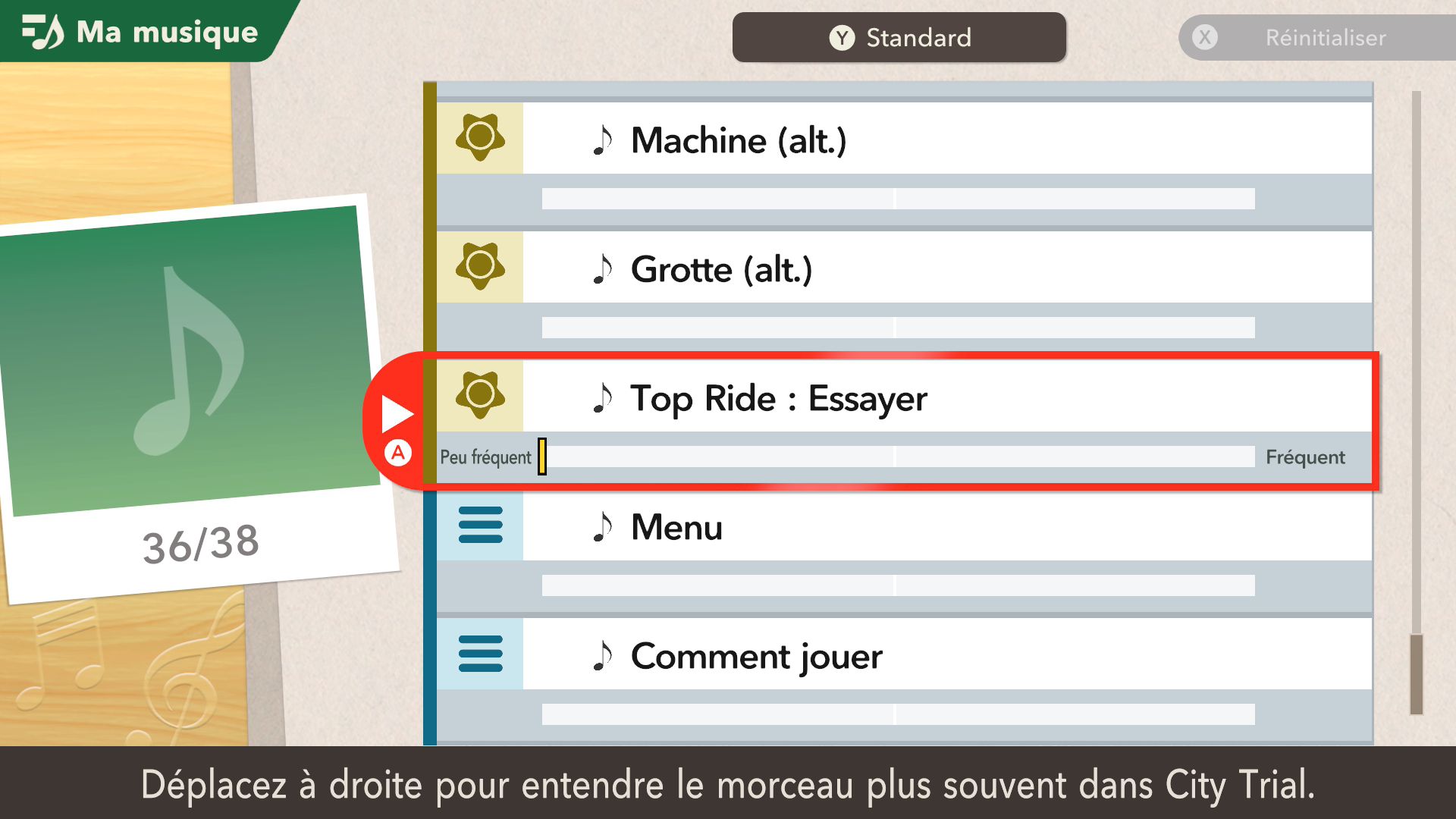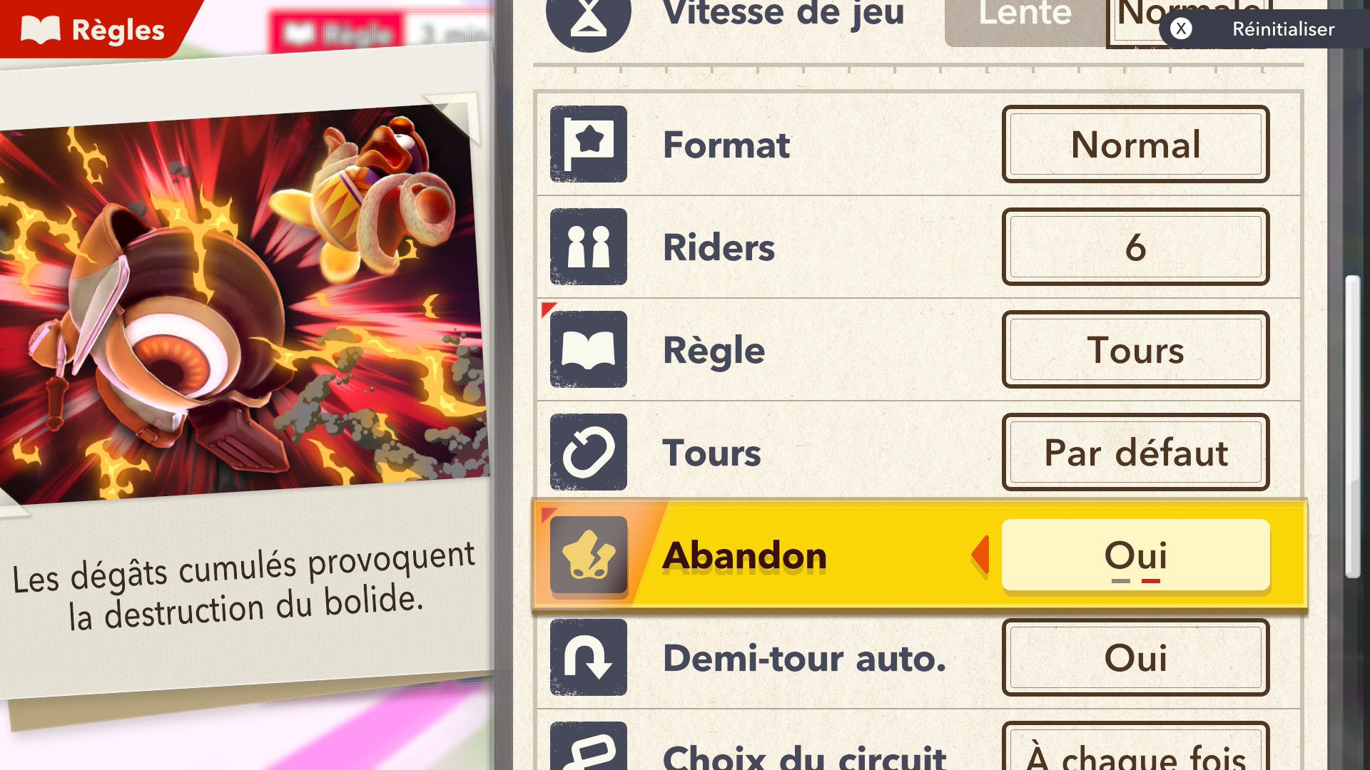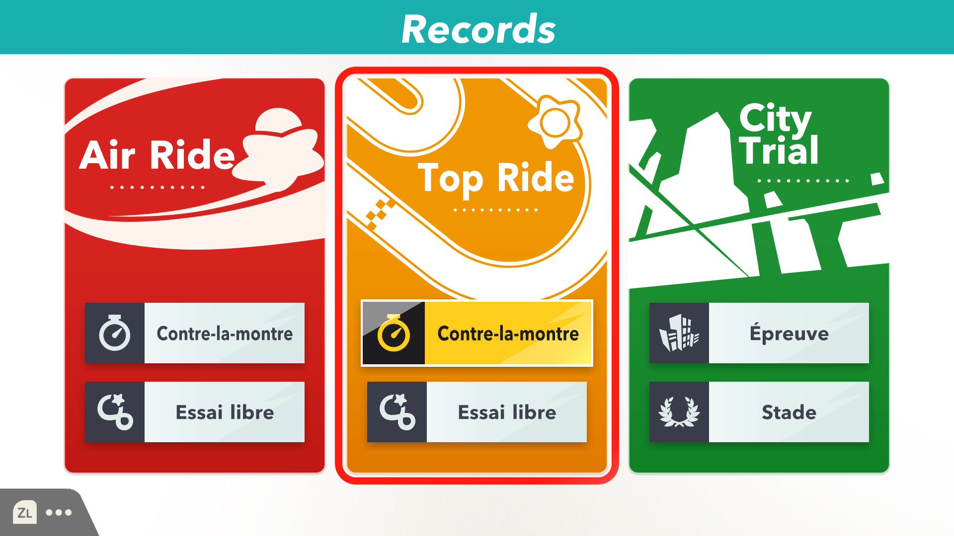 De notre côté, nous avons ensuite découvert dans l’ordre les modes Air Ride, Top Ride et City Trial. Dans Air Ride, on trouve plusieurs circuits sur lesquels on peut participer simplement à des courses. En solo, il est possible de sélectionner des règles, comme la vitesse de jeu (lente ou normale), le format (possibilité de changer de bolide à chaque tour ou non), le nombre de riders et de tours, ou encore le demi-tour automatique en cas de pilotage à contresens ainsi que l’assistance (la vitesse qui peut augmenter en cas de retard et la jauge d’attaque spéciale qui peut se remplir seule en cas de fort retard) et la présence d’ennemis. On apprécie déjà toutes ces petites options qui permettent de profiter du jeu très facilement, d’autant plus qu’elles sont idéales pour les plus jeunes. En débutant dans Air Ride, le choix des circuits est plutôt restreint. Cependant, il faut savoir qu’il est possible d’en débloquer d’autres en accomplissant des missions. Ces dernières s’étendent au déblocage de bolides, de rides et bien d’autres éléments du jeu. On se rend compte assez vite que l’accomplissement des missions promet des heures et des heures de jeu.