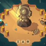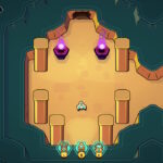 L’aventure de Minishoot’ Adventures prend place dans un univers peuplé de vaisseaux conscients, les Shiplings, frappés par une invasion brutale d’une force ancestrale, l’Usurpateur, aussi connu sous le nom du « Désélu » (The Unchosen One), qui a surgi du monde souterrain pour corrompre la terre et détruire le village de notre vaisseau héros. Dans ce chaos, ses semblables ont été emprisonnés dans des cristaux noirs et éparpillés aux quatre coins du monde. Il va évidemment falloir les libérer, reconstruire son foyer et restaurer l’équilibre face à la corruption grandissante, dans une mission aux élans prophétiques, en partant explorer des terres sauvages et des donjons oubliés. Nous n’en aurons pas plus en termes de narration, tant en termes d’explications que de dialogues, si ce n’est quelques stèles et ruines, avec une partie laissée à l’interprétation et une place nette laissée à l’expérience purement « jeu vidéo ».