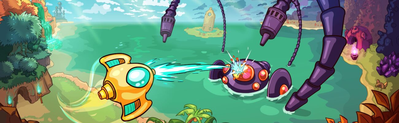 Dans cette logique, l’héritage du Metroidvania s’impose naturellement, avec son lot de backtracking inévitable et ses capacités débloquant de nouveaux accès, entre la possibilité de glisser sur l’eau, celle de franchir des gouffres et d’atteindre des zones élevées grâce au saut et au boost, ou encore de nouvelles possibilités de tir chargé plus puissant. Et force est de constater que ces retours réguliers se font toujours avec un certain plaisir grâce à la qualité du level design, mais aussi par le plaisir absolu manette en main. Le vaisseau répond instantanément, glisse avec précision, accélère sans inertie excessive, pivote avec une fluidité presque organique. Ce ressenti se prolonge dans les combats, qui deviennent de véritables chorégraphies, notamment contre les boss. Les projectiles ennemis dessinent des motifs en saturant l’espace et en astreignant à une lecture constante, sans jamais tomber dans l’illisible. Et si le joueur est constamment en mouvement pour esquiver ou ajuster son tir-esquive, le tout sent la maitrise à plein nez, avec une sensation de flow assez inédite.